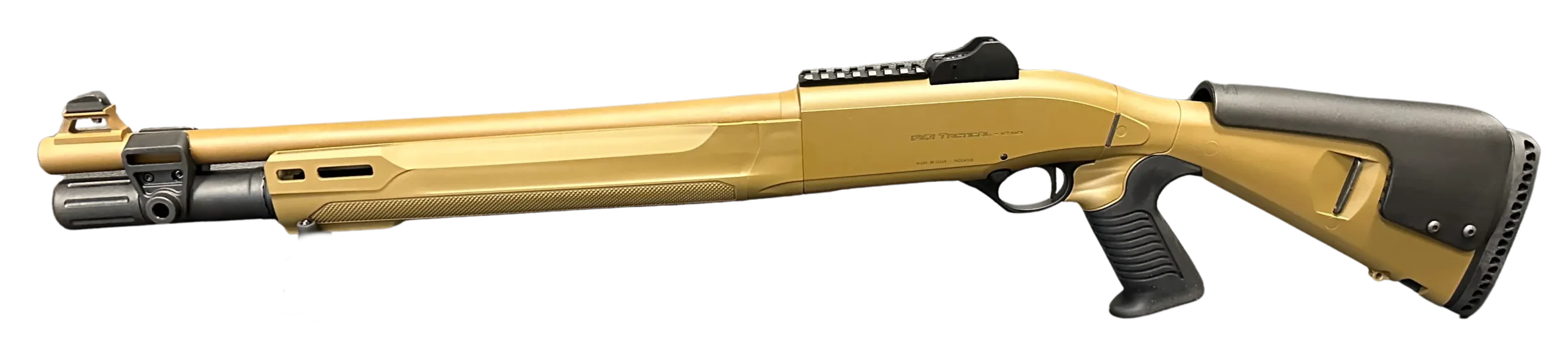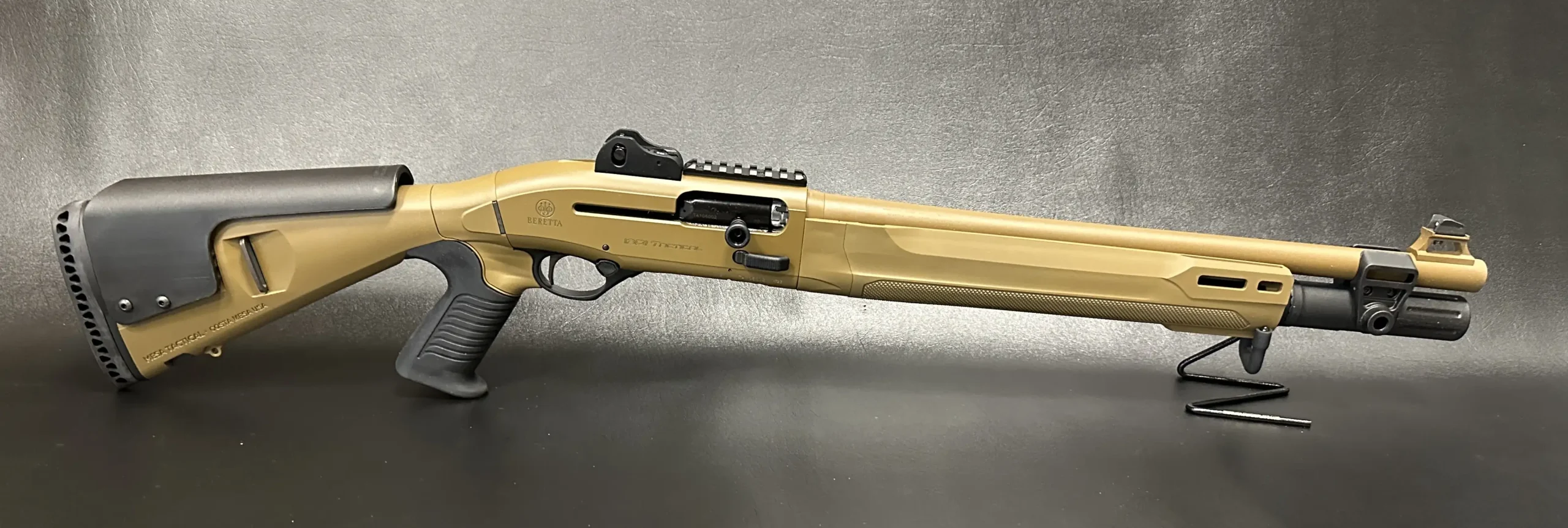The Beretta 1301 Tactical FDE Mod.2 PG is a 12-gauge semi-automatic shotgun built around Beretta’s BLINK gas operating system and configured with factory Flat Dark Earth furniture and a pistol grip stock. Designed for fast handling and practical control, this Mod.2 variant combines a modern tactical layout with the refined engineering that defines the 1301 platform.