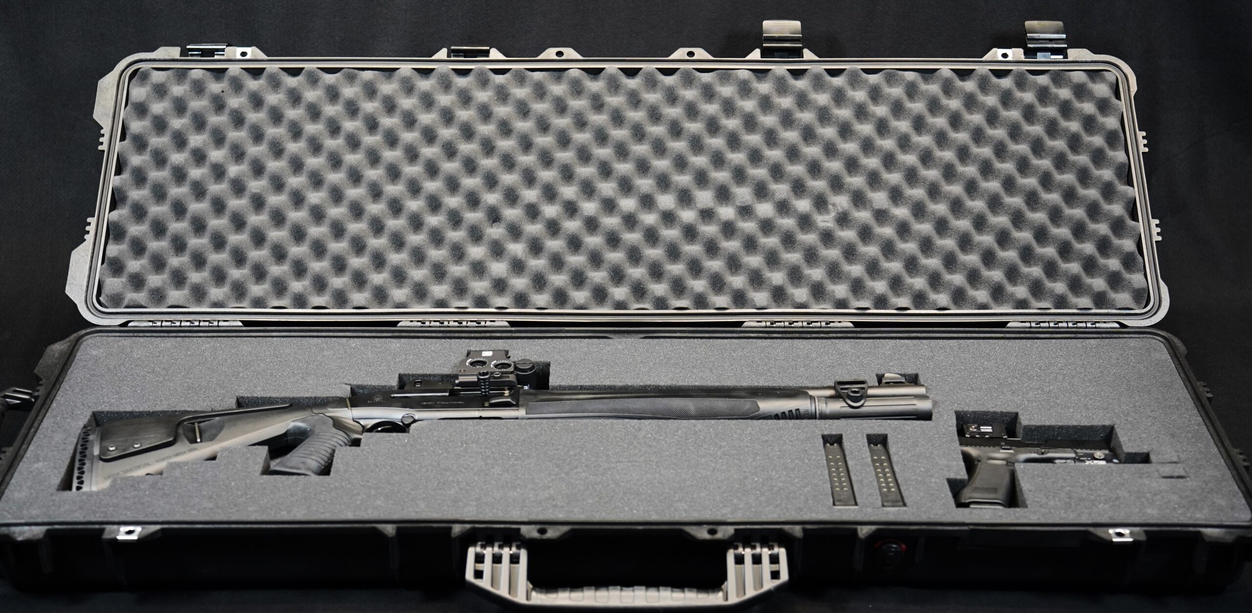 A complete tactical system built around the Beretta 1301T Tactical 12-gauge shotgun and Glock G45 9mm pistol. Includes an EOTECH EXPS2-2, Aimpoint Acro, SureFire M640 Turbo, SureFire X300 Turbo, and a Pelican 1750 Hard Case.