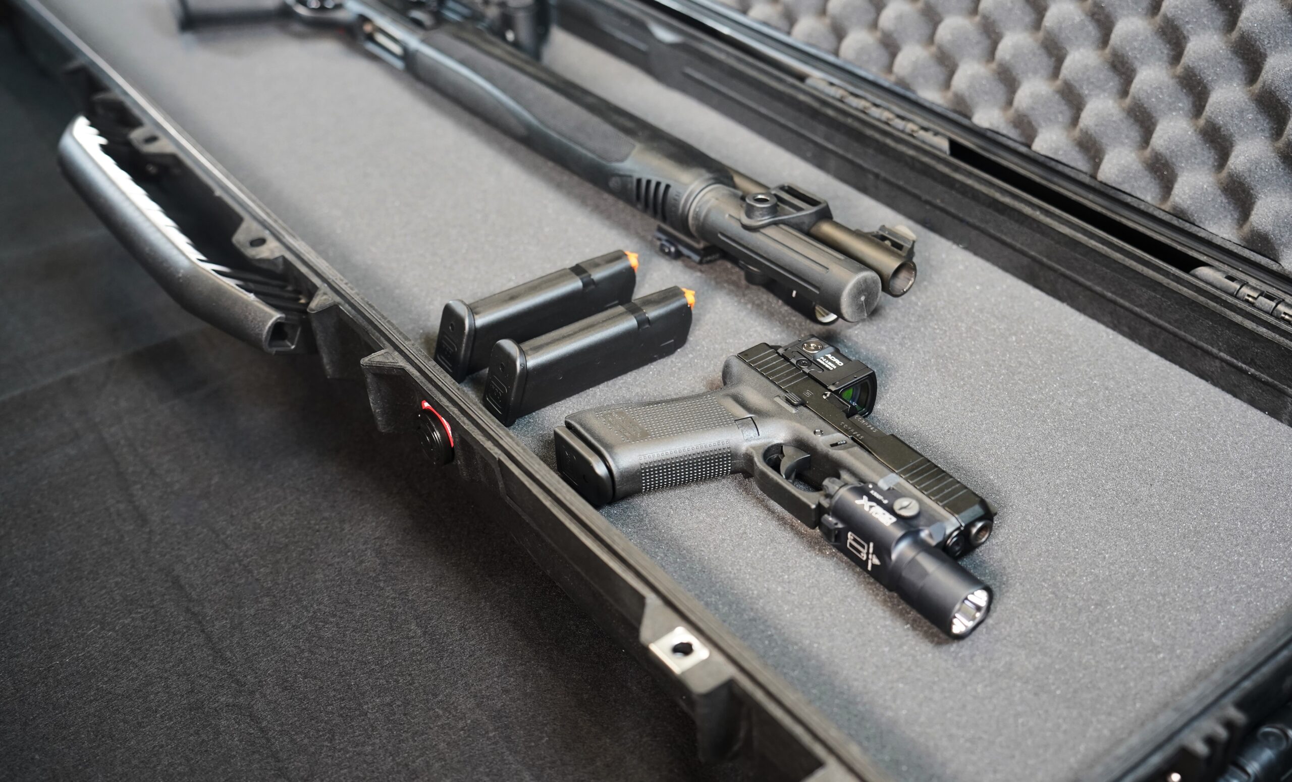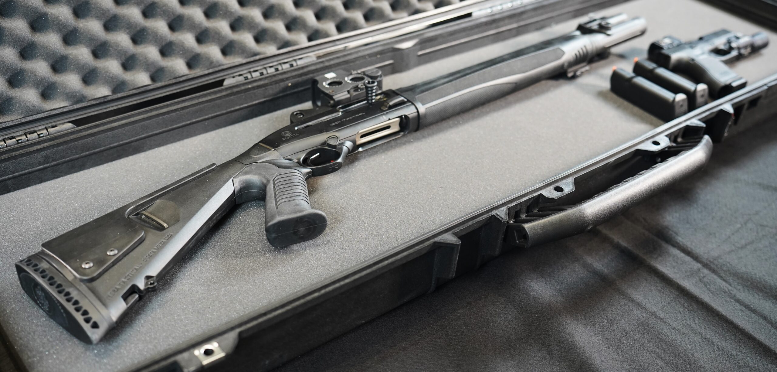 This tactical system brings together a Beretta 1301T Tactical shotgun and a Glock G45 pistol, along with selected optics, weapon lights, and a hard case for storage and transport.