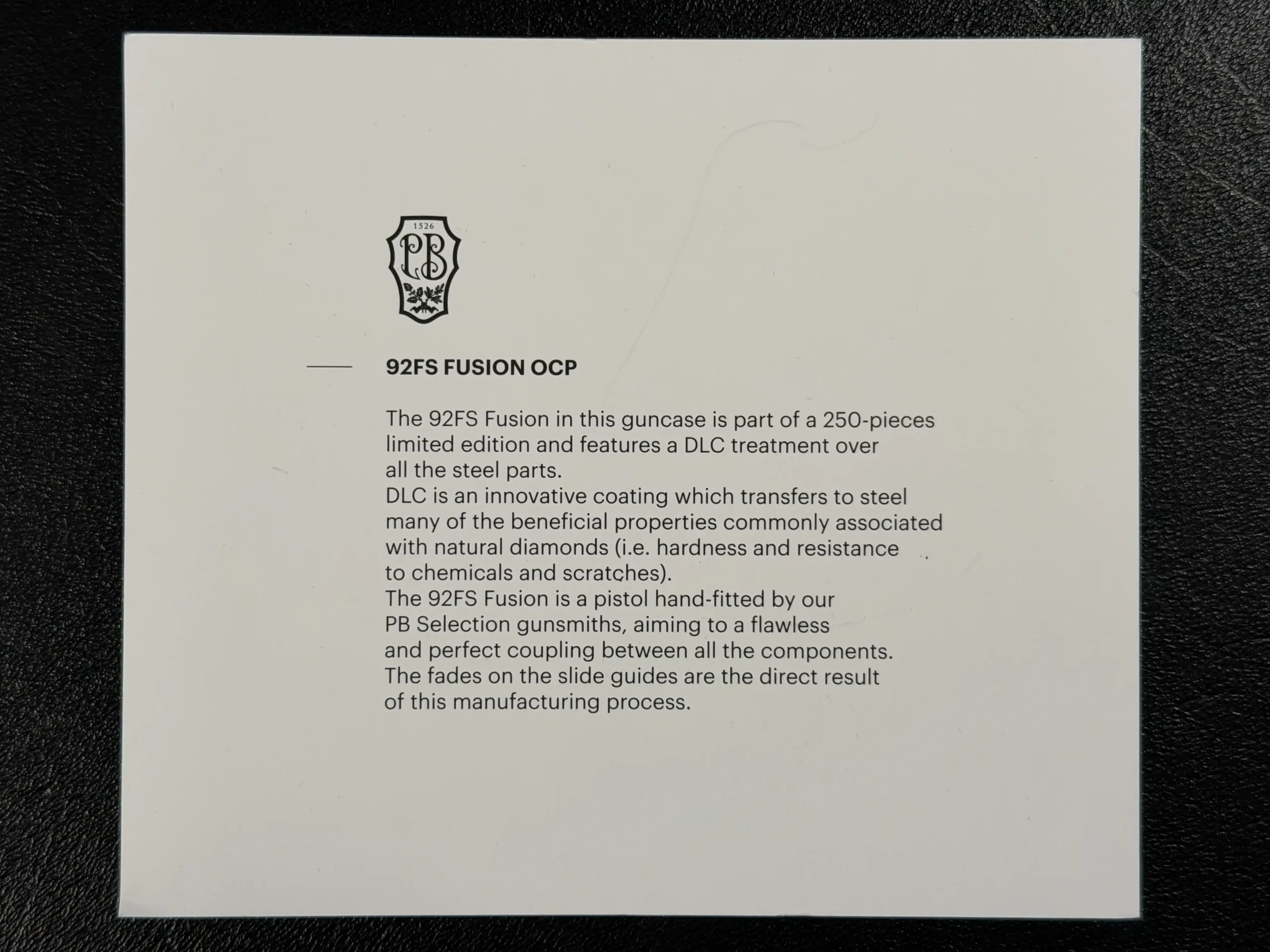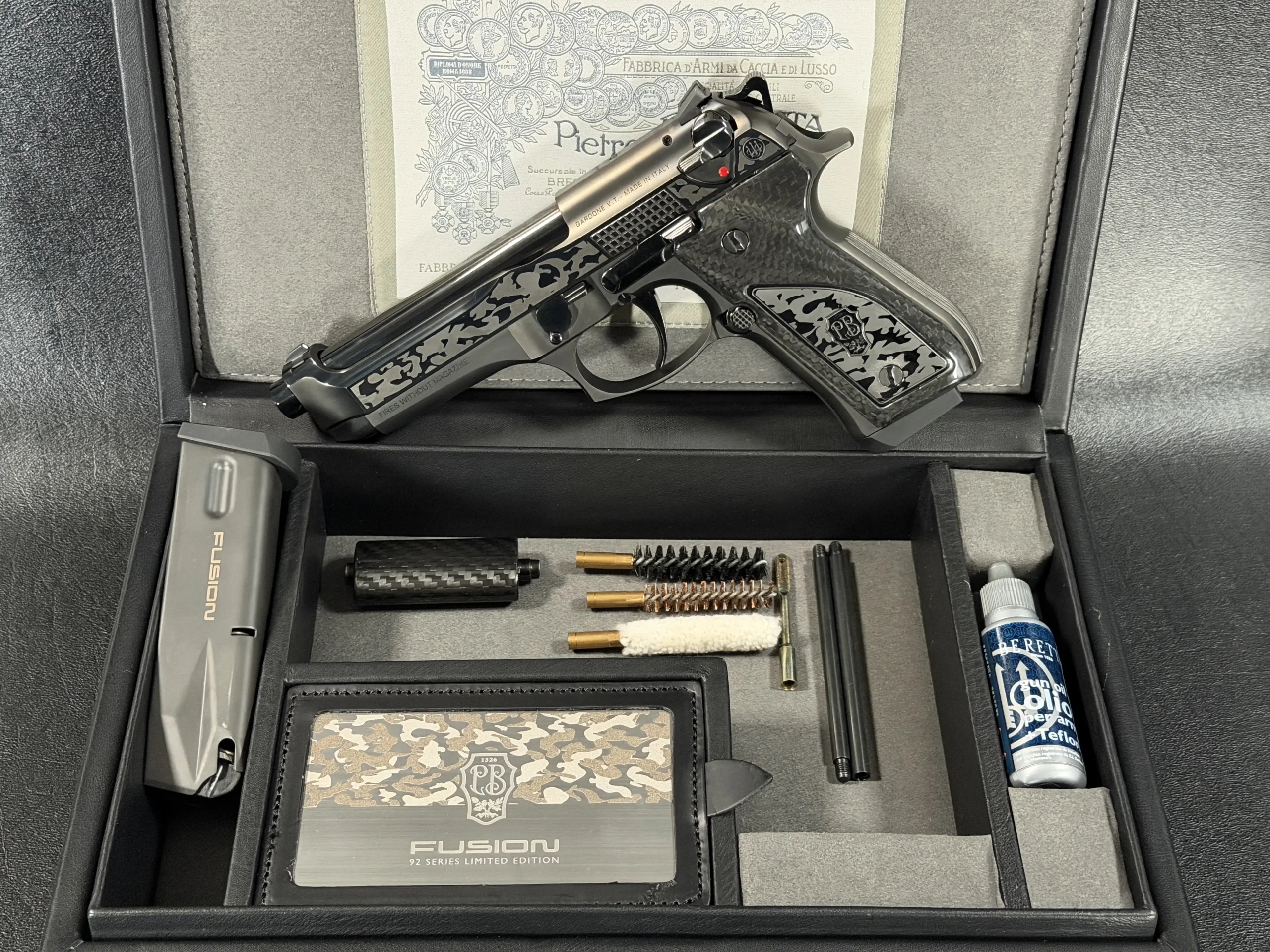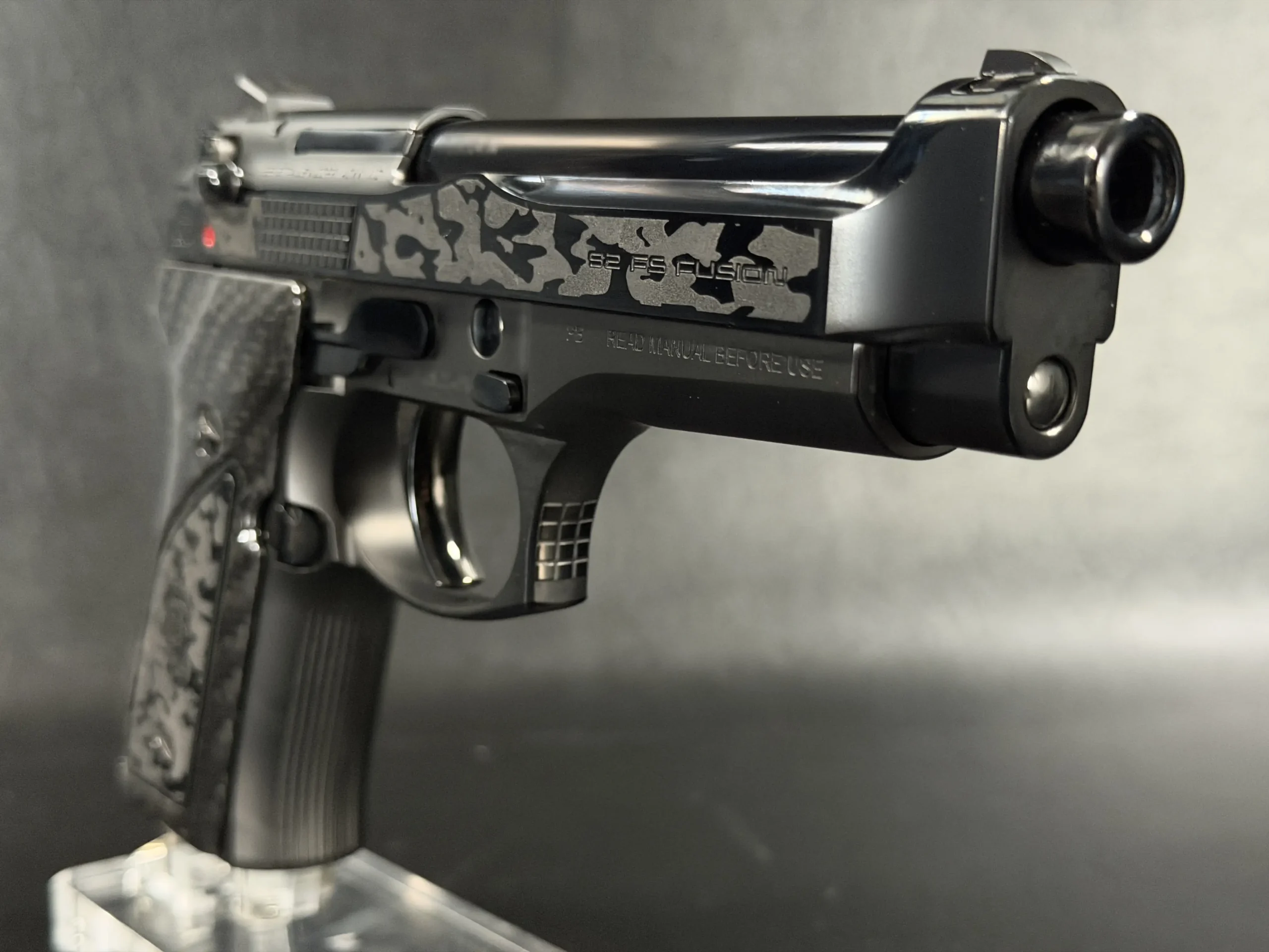 The Beretta 92FS Fusion OCP is a PB Selection variant of the 92FS, chambered in 9mm and built as part of a 250-piece run. It pairs the familiar profile of Beretta’s long-established service pistol with updated materials, detailed finishing, and a presentation package that sets it apart from standard production models.