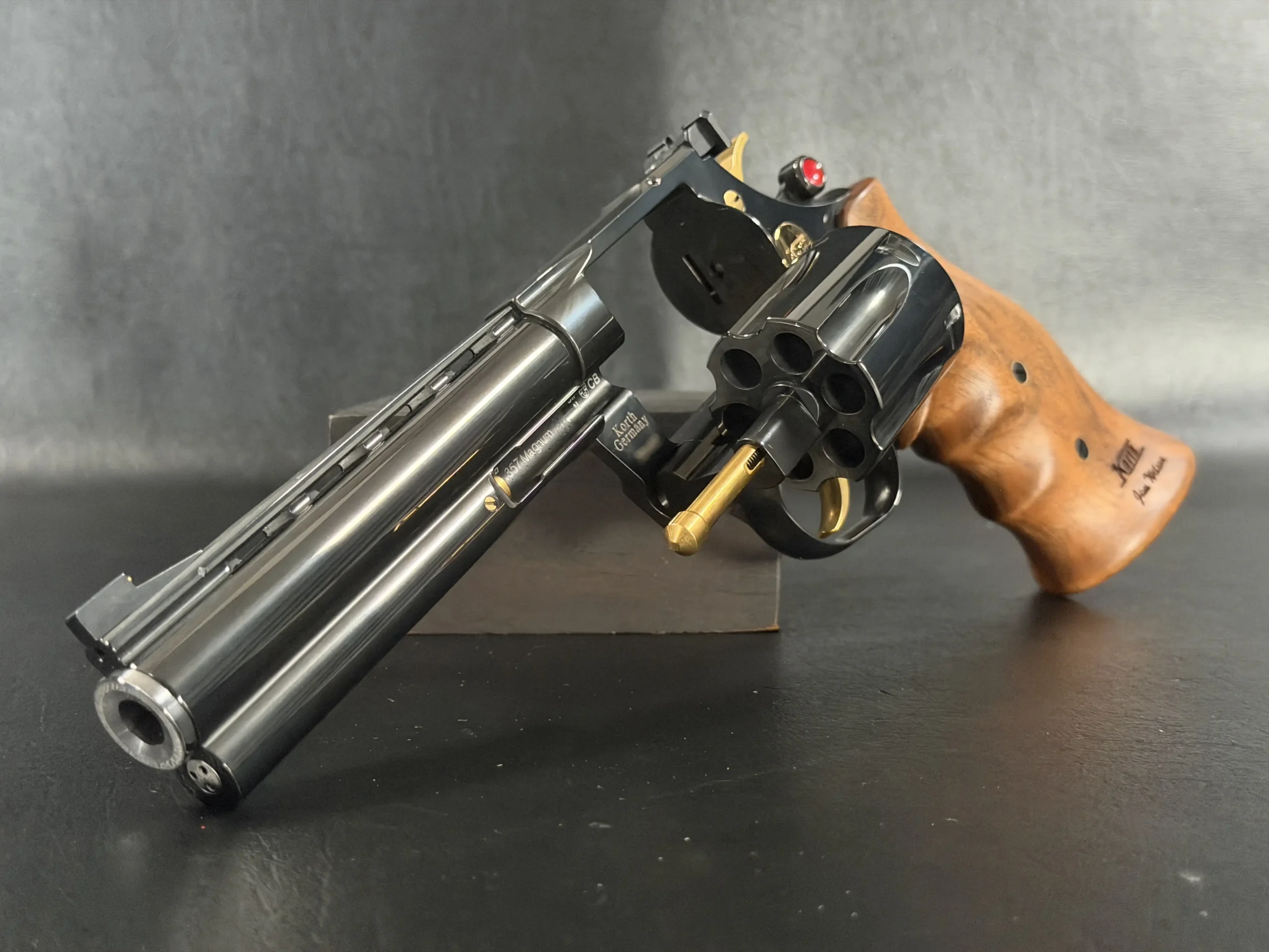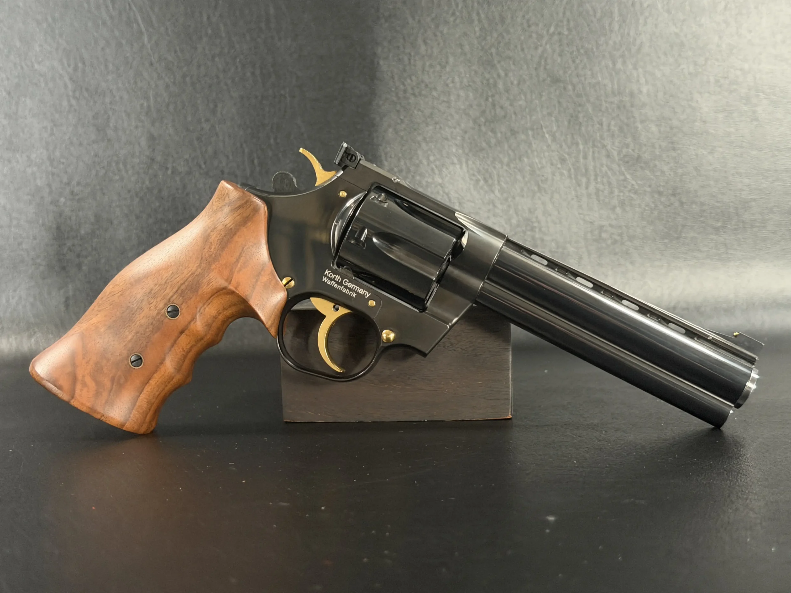 The Black Korth Classic 6 Inch brings together the distinctive presence of a full-length Korth Classic with the refined detailing the model is known for. Chambered in .357 Magnum, this revolver features a 6-inch barrel, giving it the long, balanced profile favored by many enthusiasts of classic European revolvers.
