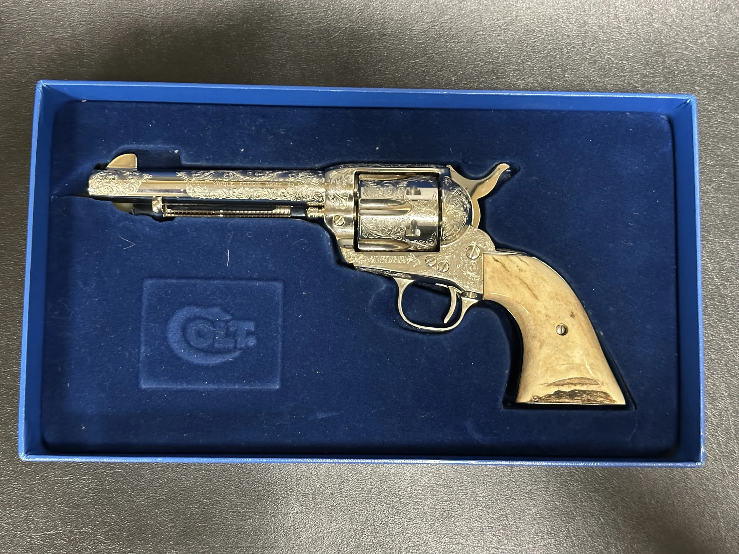 This example includes its original Colt box and Colt certification letter. A distinctive factory-engraved Single Action Army with classic Colt styling and strong visual presence.