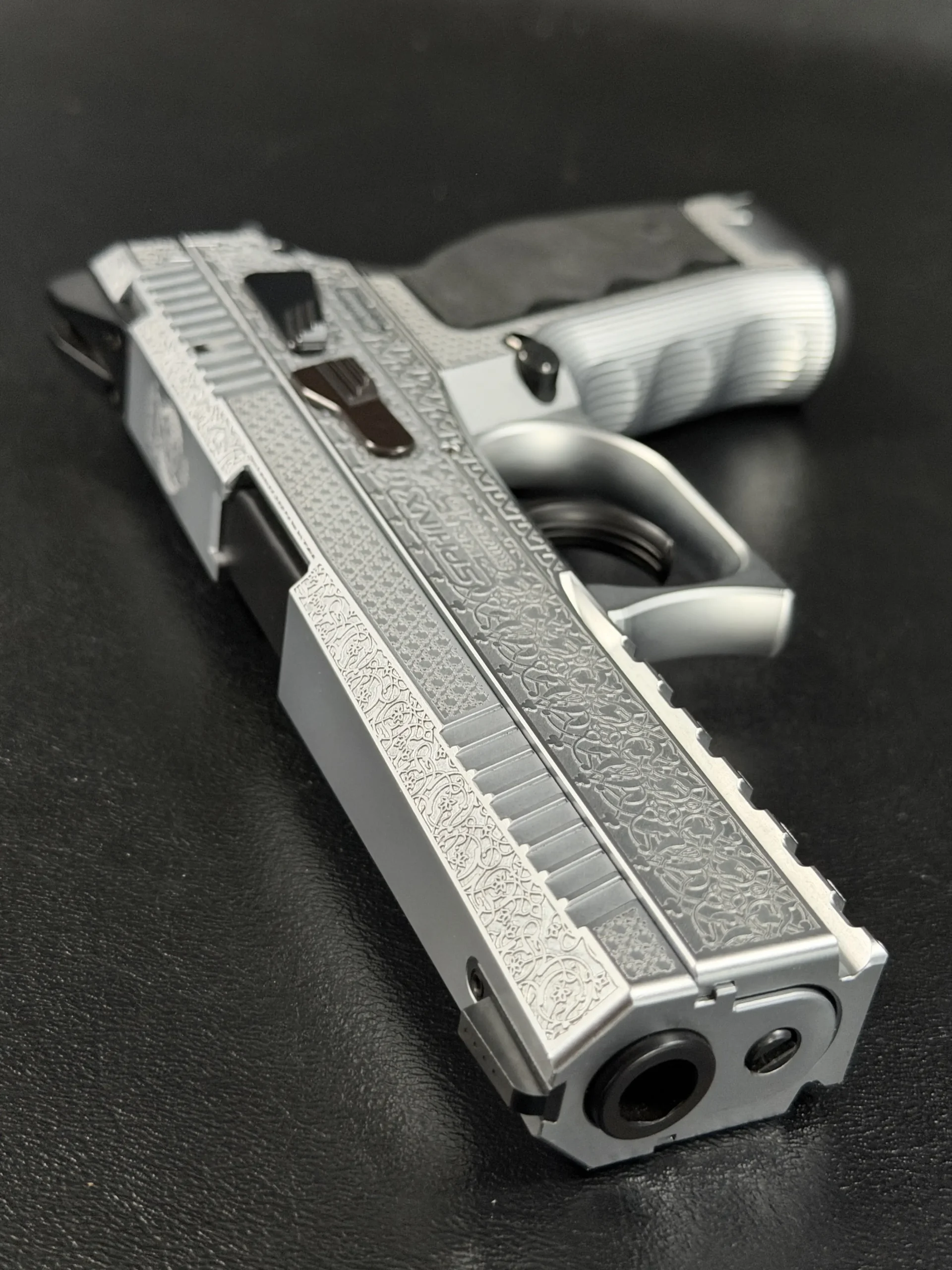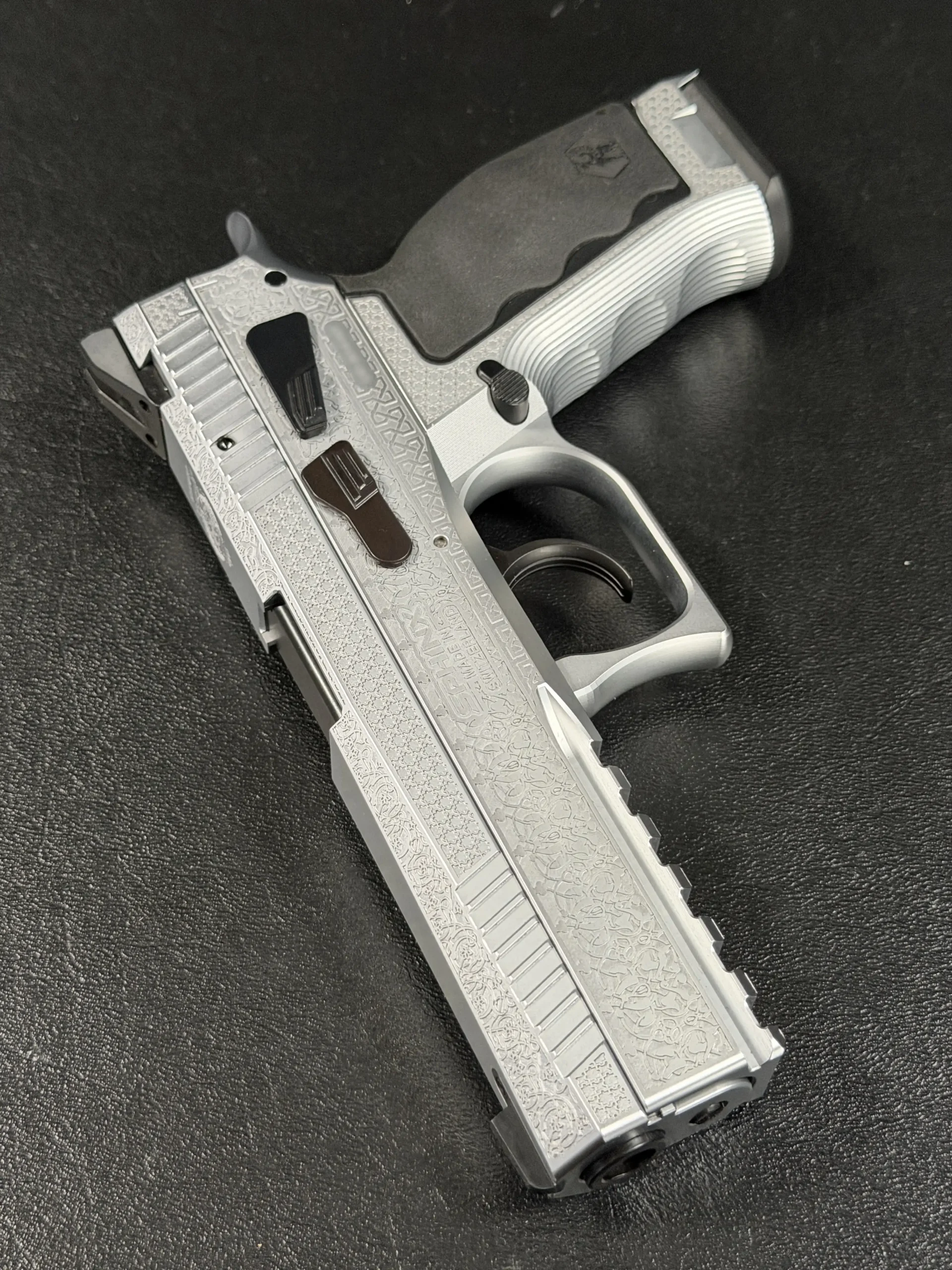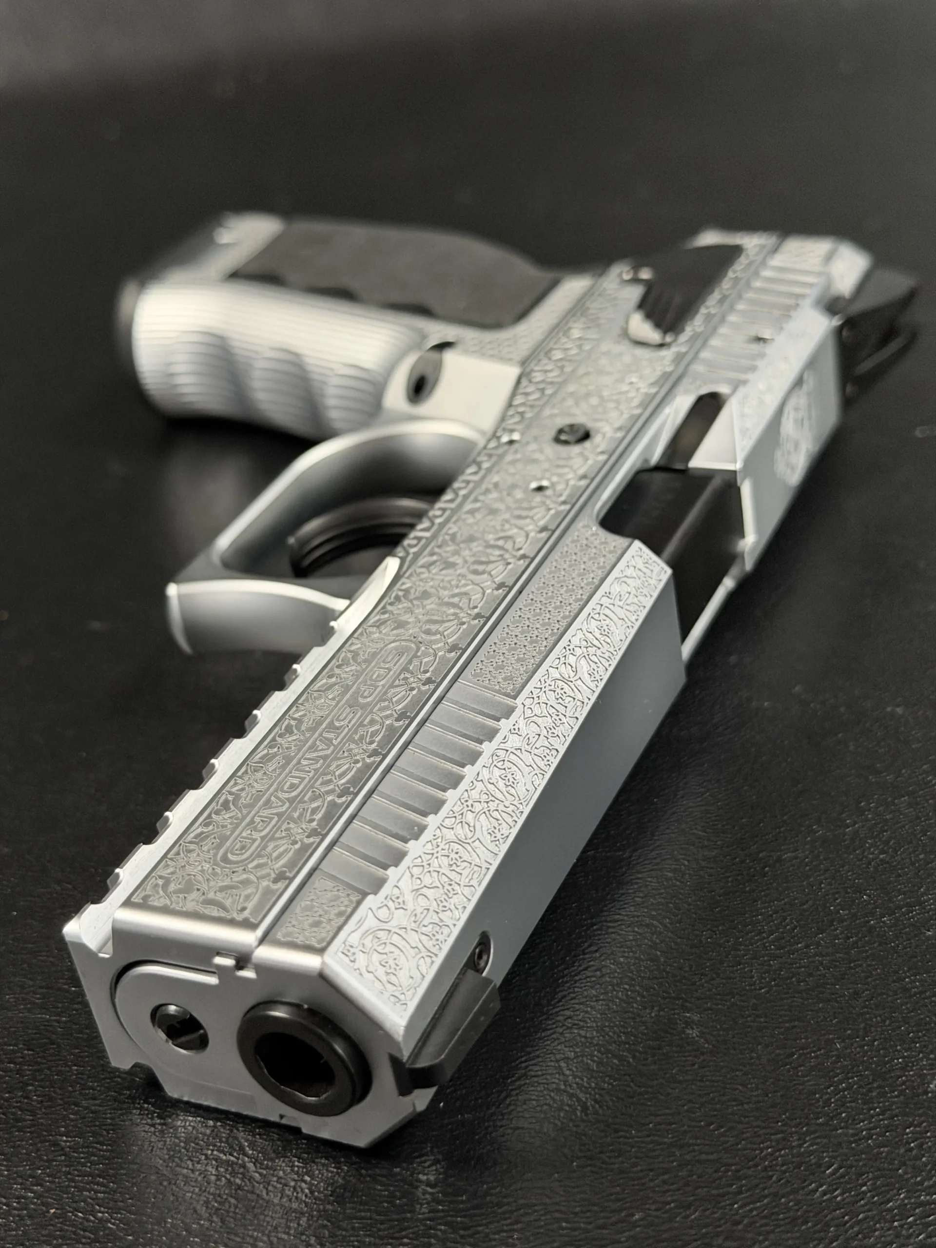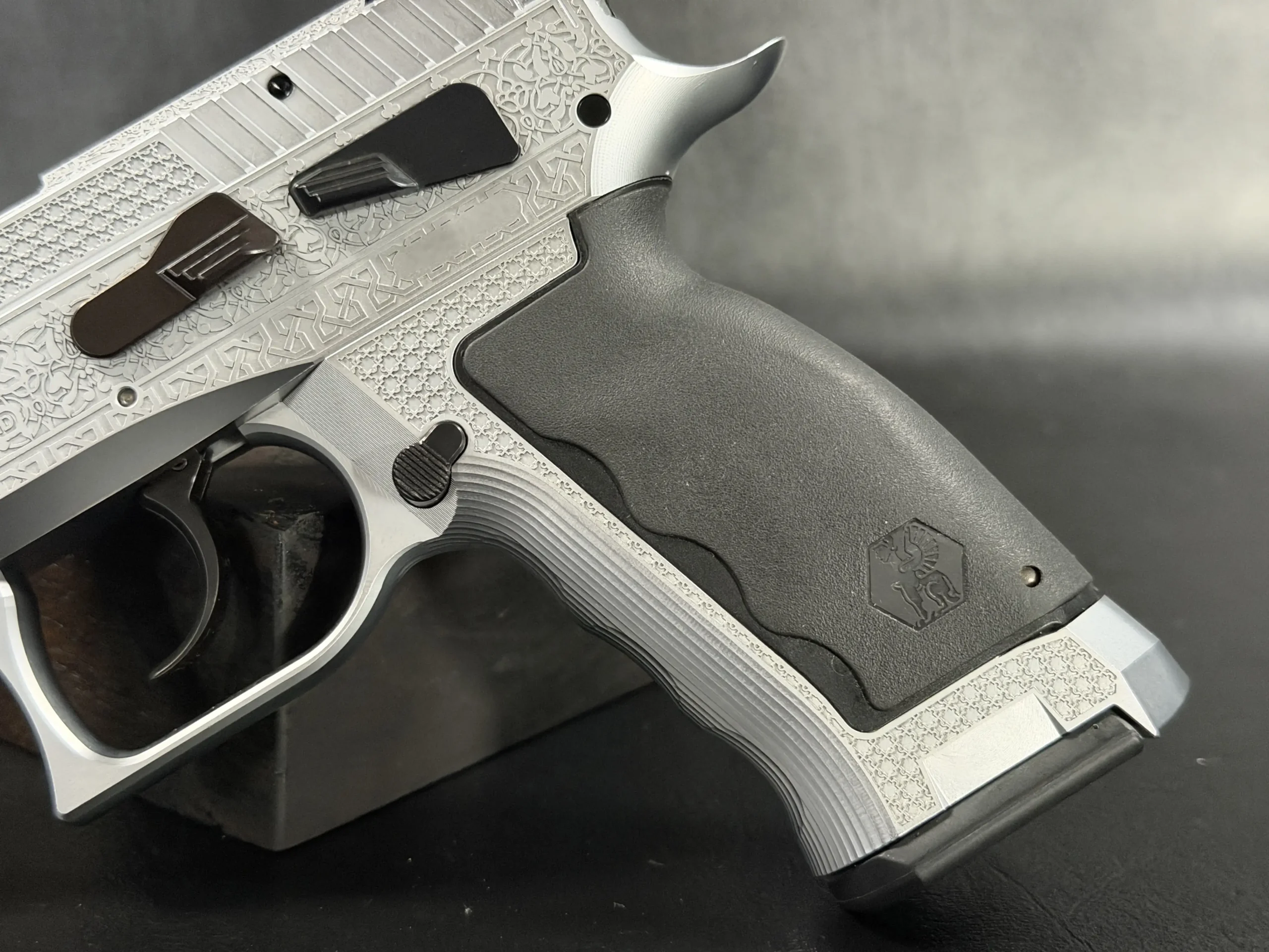 The Engraved Sphinx SDP Standard Inox is a stainless steel pre-series presentation example built on the SDP platform and chambered in 9mm Parabellum. Developed for the Jordanian Intelligence Service and intended for presentation to King Abdullah II of Jordan, this pistol reflects the refined mechanical design and visual restraint associated with Sphinx.