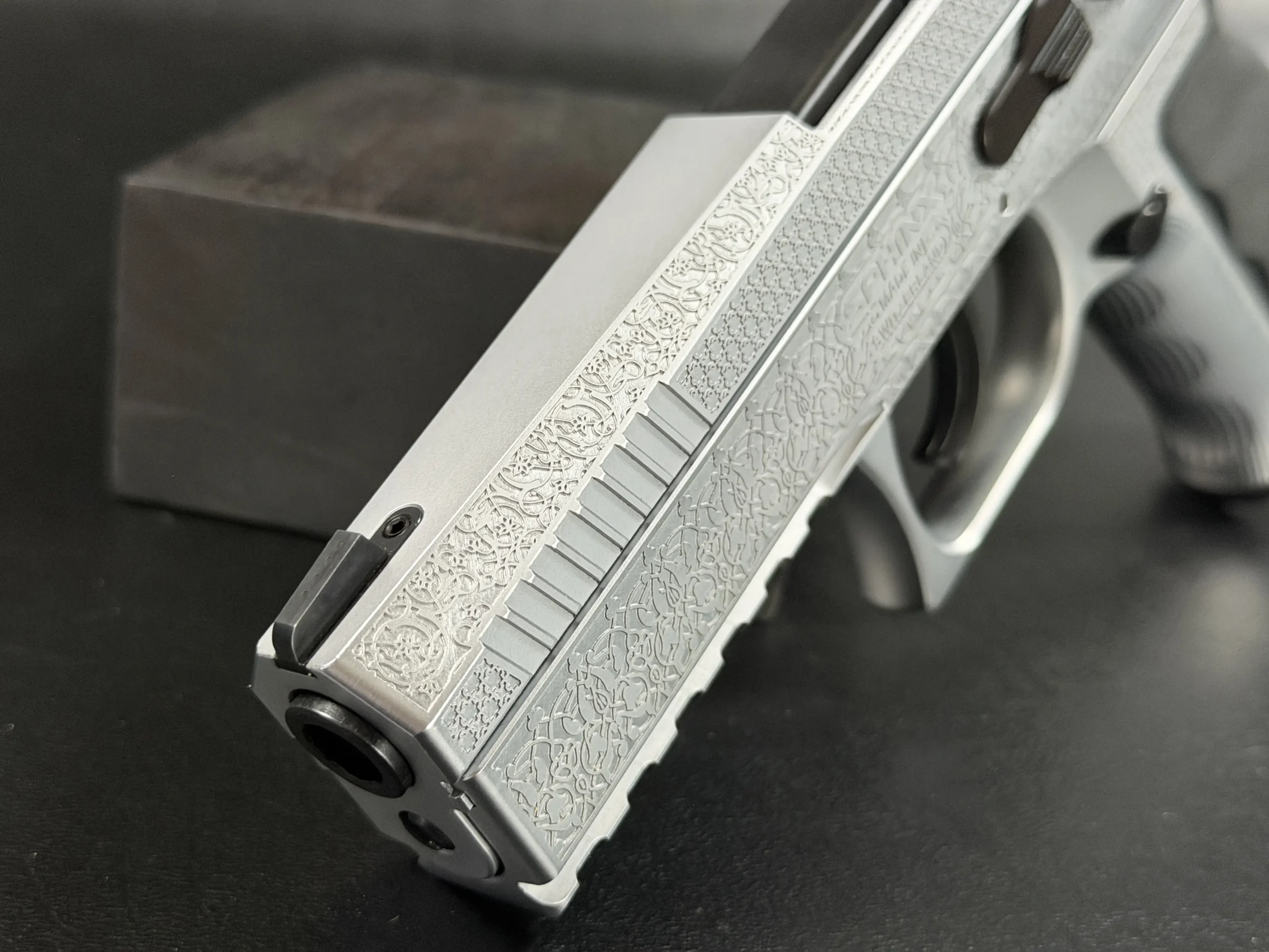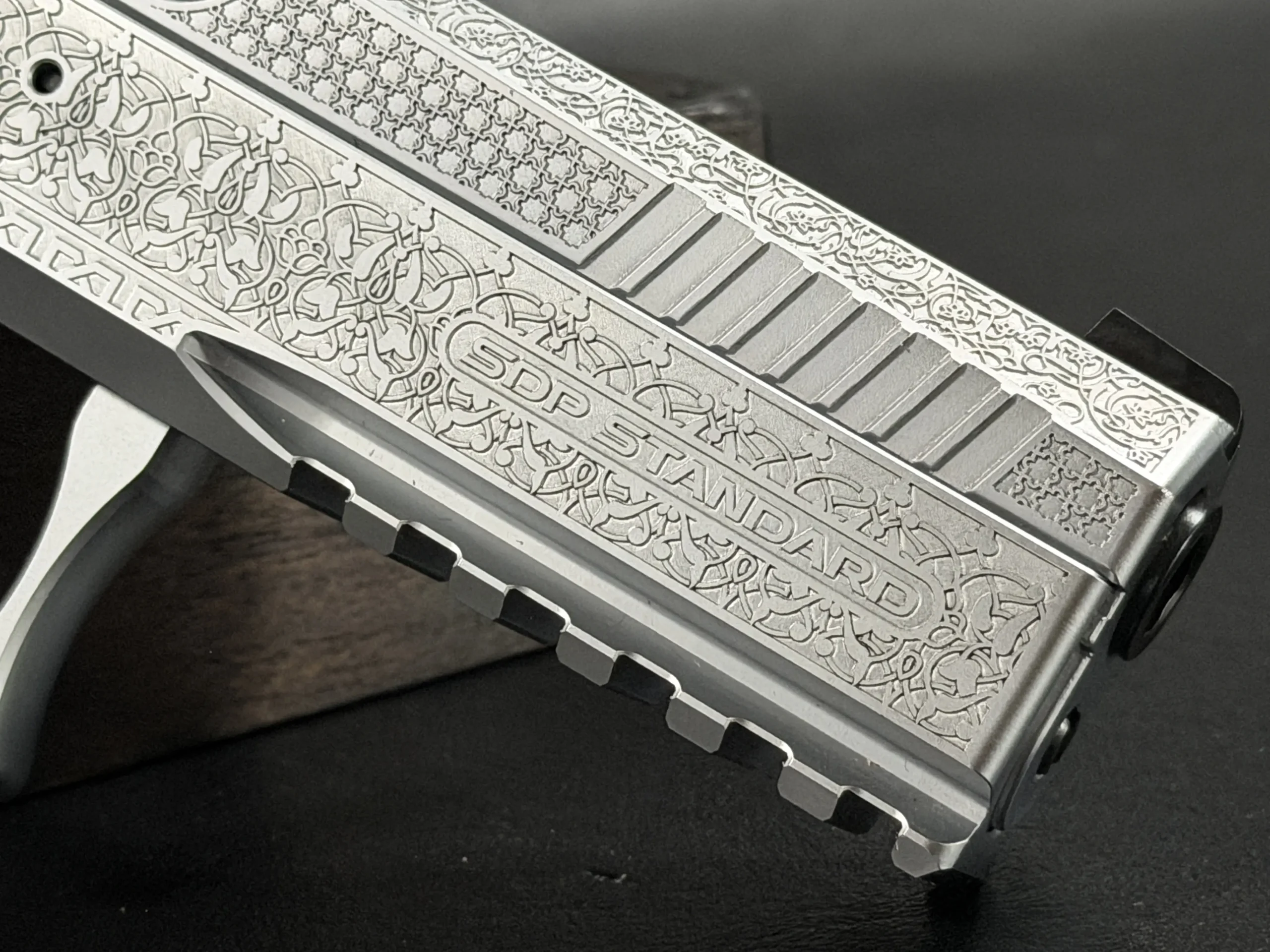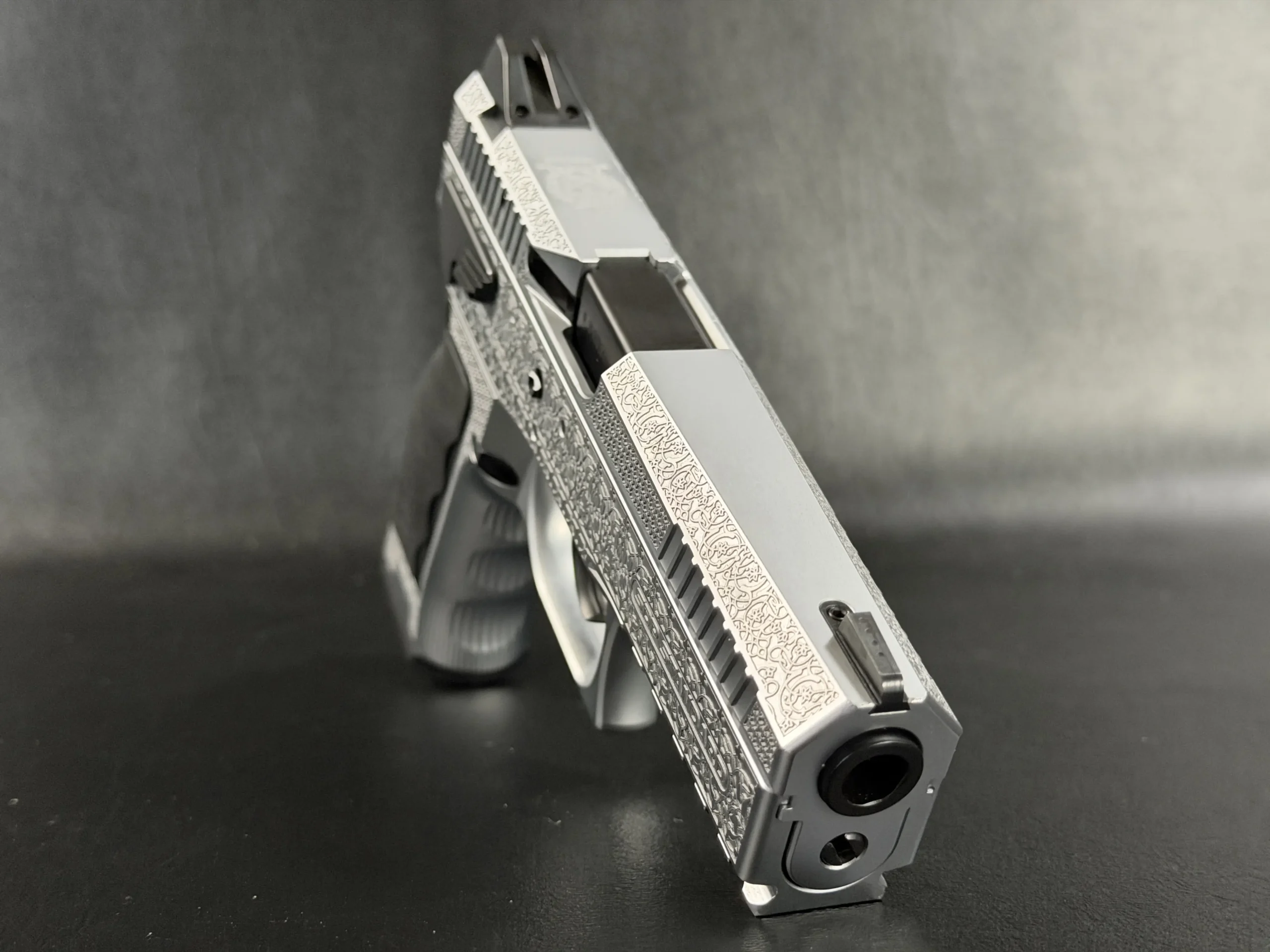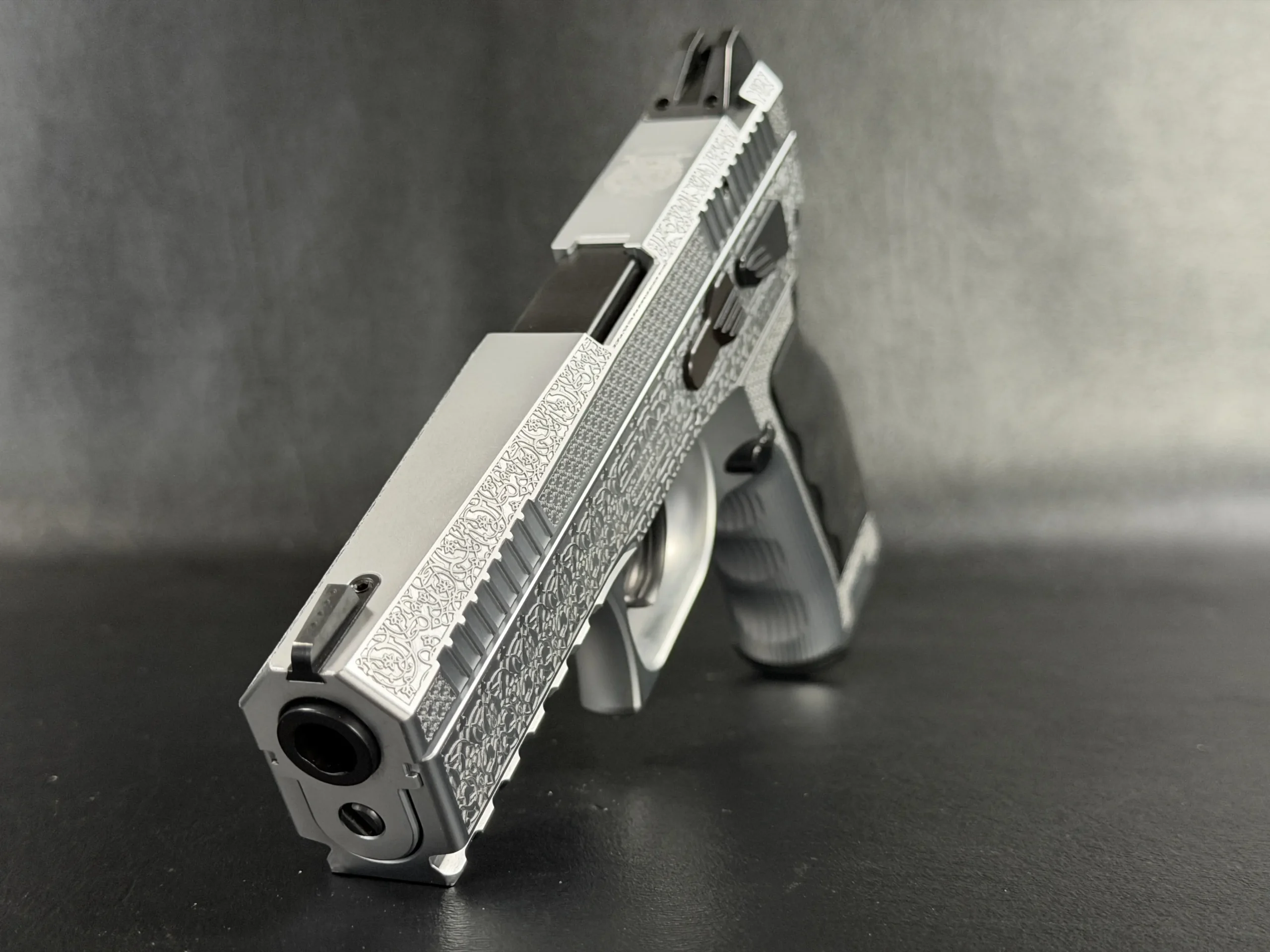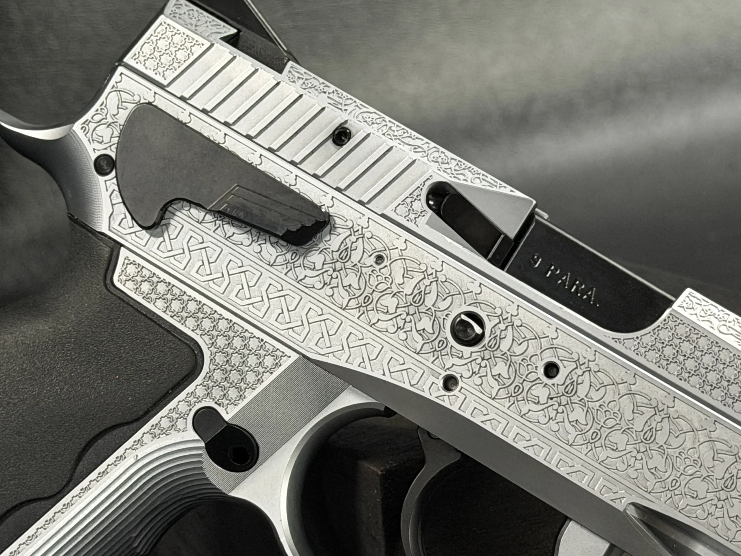 The Engraved Sphinx SDP Standard Inox is a stainless steel pre-series presentation example built on the SDP platform and chambered in 9mm Parabellum. Developed for the Jordanian Intelligence Service and intended for presentation to King Abdullah II of Jordan, this pistol reflects the refined mechanical design and visual restraint associated with Sphinx.