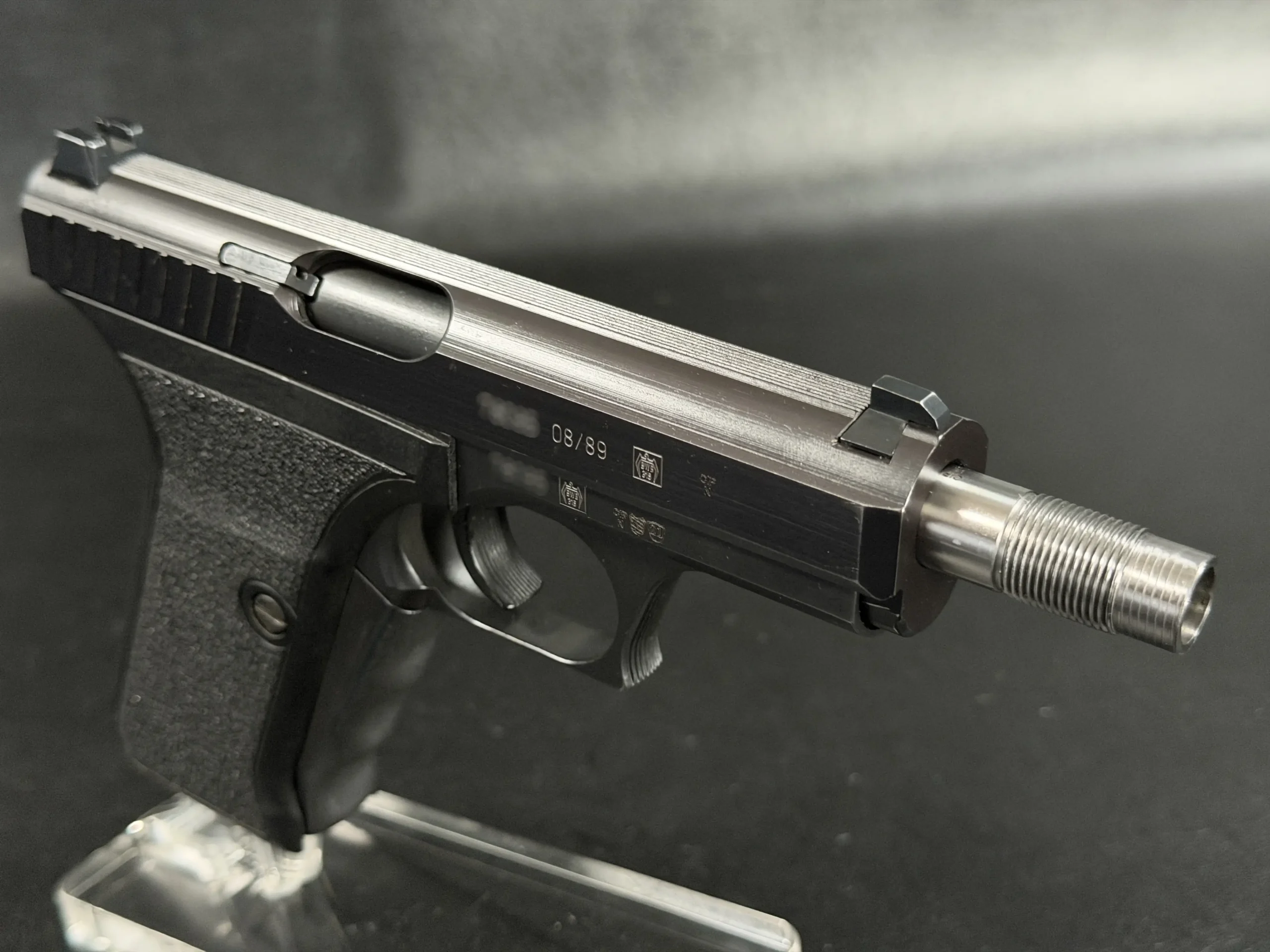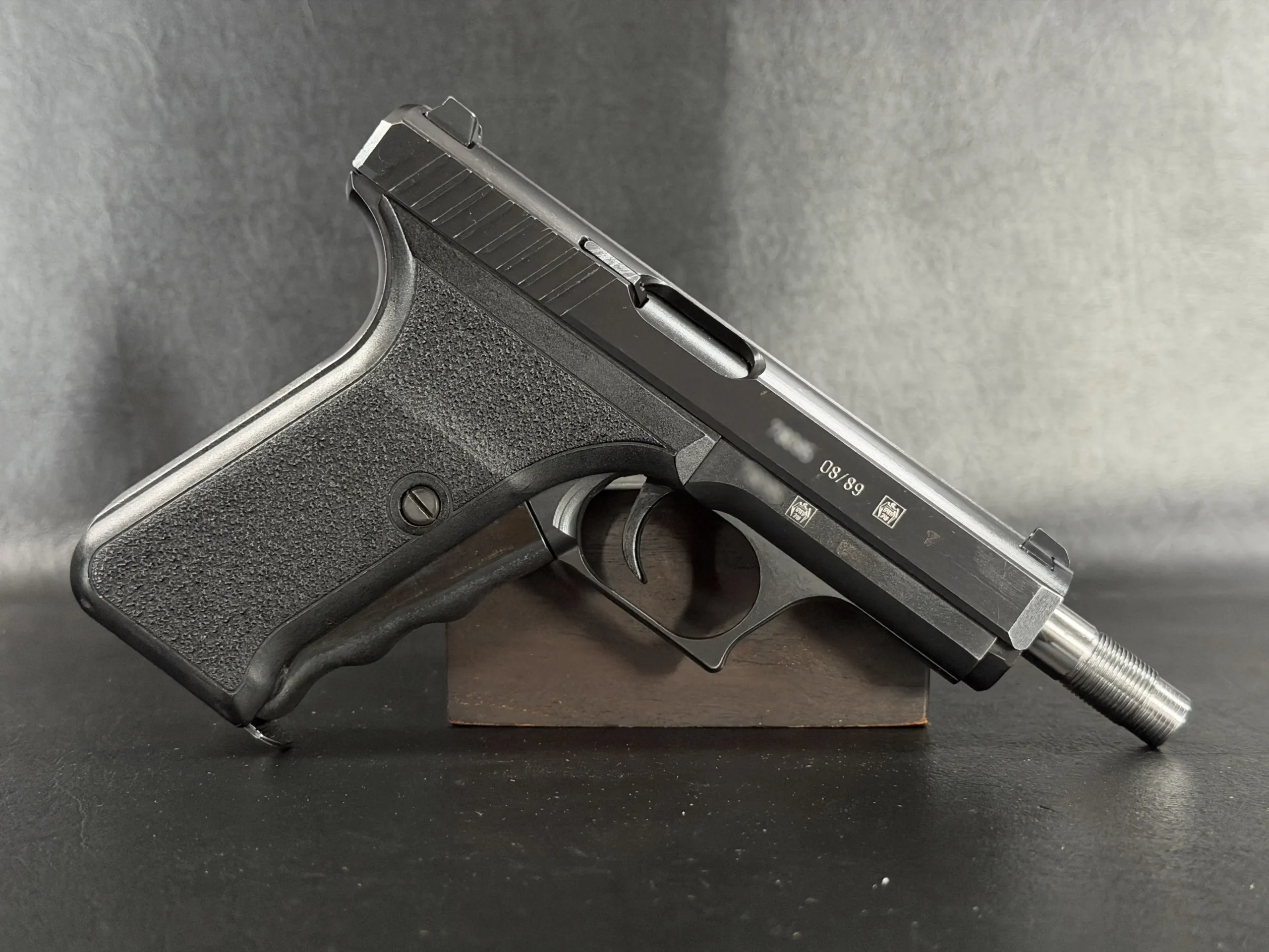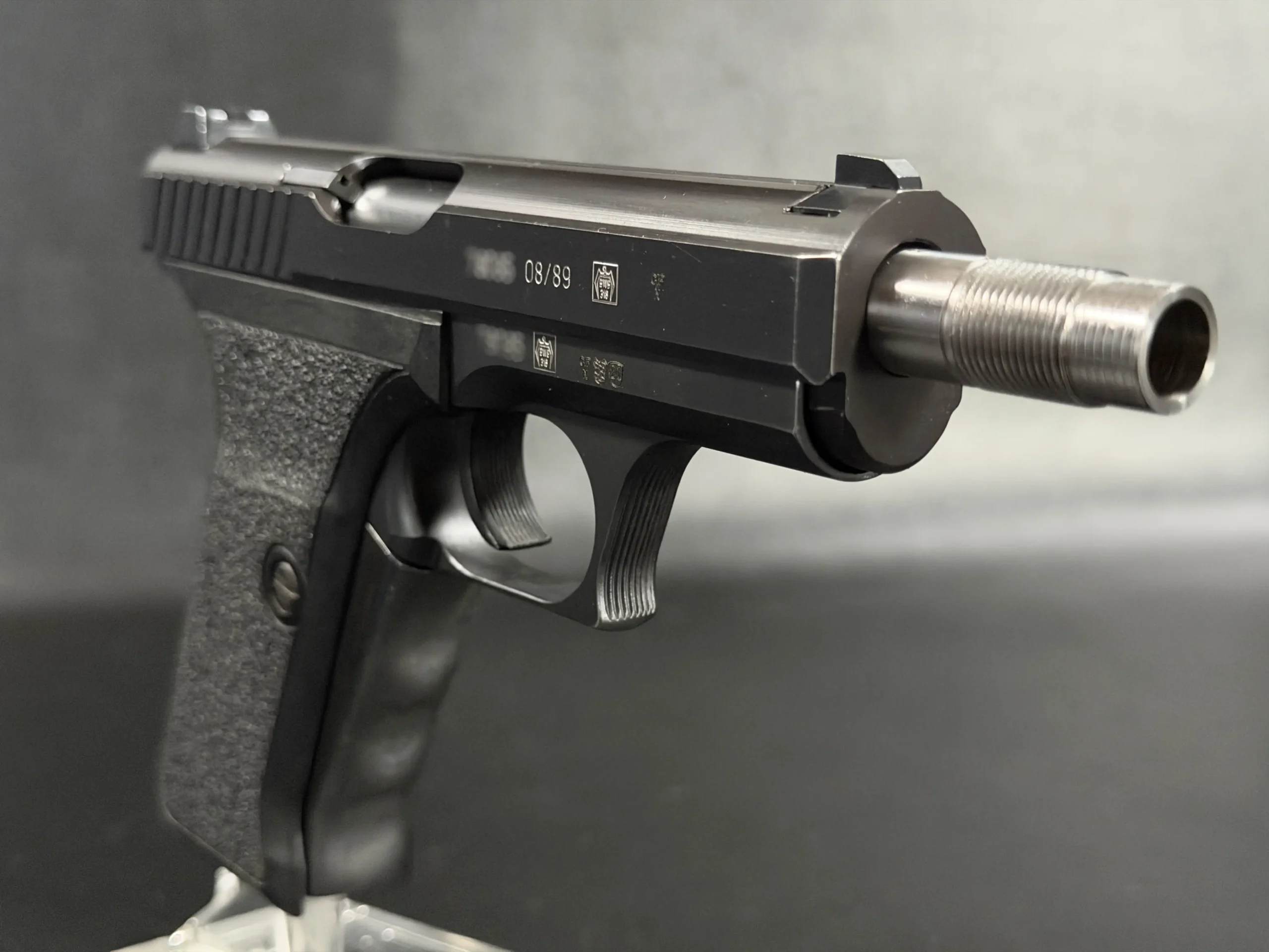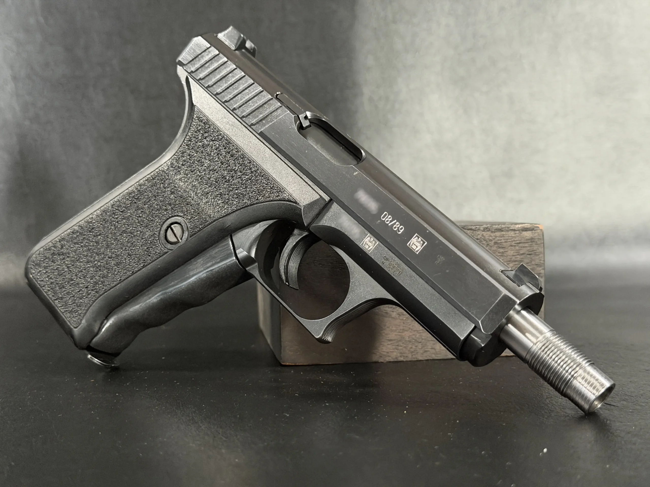 The Heckler & Koch P7SD is a distinctive variant of the iconic P7 pistol platform, built around HK’s gas-delayed blowback system and the squeeze-cocker design that made the series instantly recognizable. With its fixed barrel, low bore axis, and streamlined manual of arms, the P7 remains one of the most technically interesting handgun designs of its era.