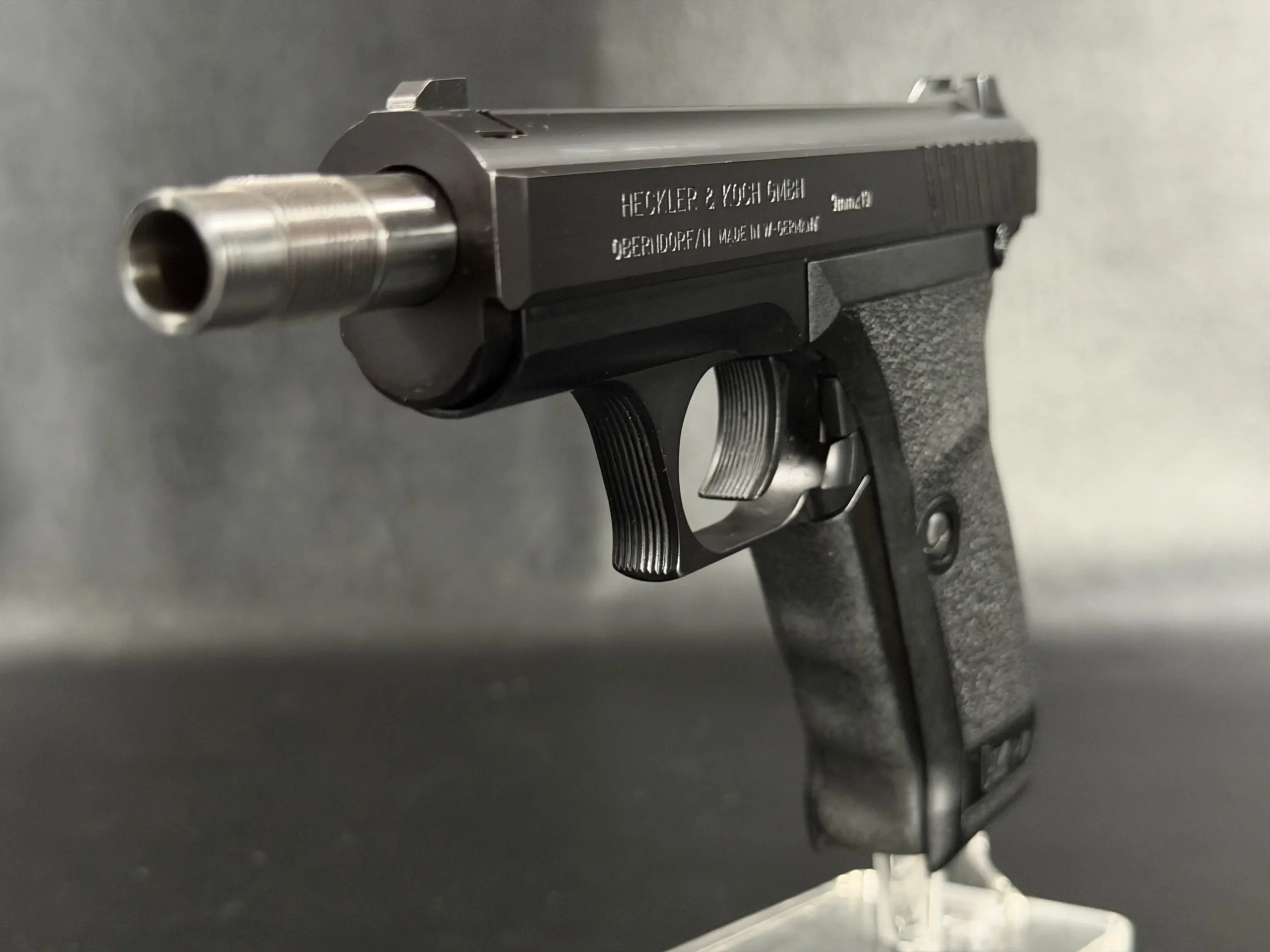 With its threaded barrel configuration, distinctive operating system, and included accessories, this Heckler & Koch P7SD is a compelling example of a highly recognizable HK design.