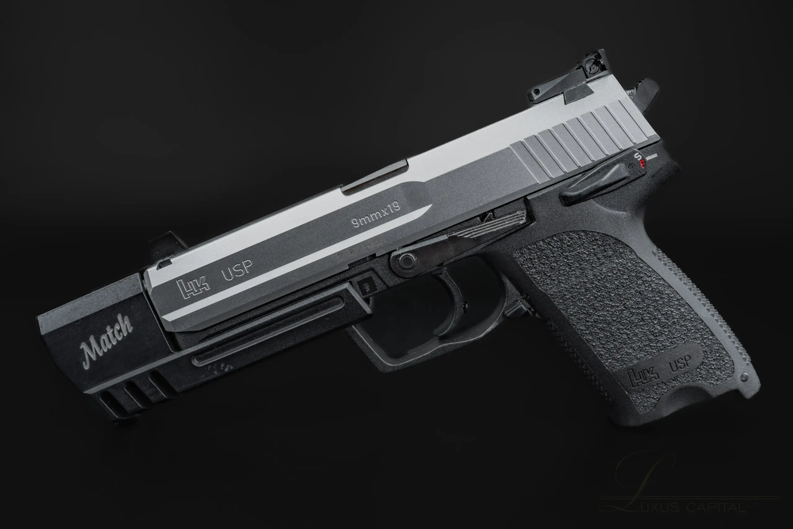 The Heckler & Koch USP Match is a competition-oriented variant of the USP platform, chambered in 9mm and distinguished by its extended match weight and compensator assembly. Its unmistakable profile is paired with purpose-built features designed to enhance control and balance.