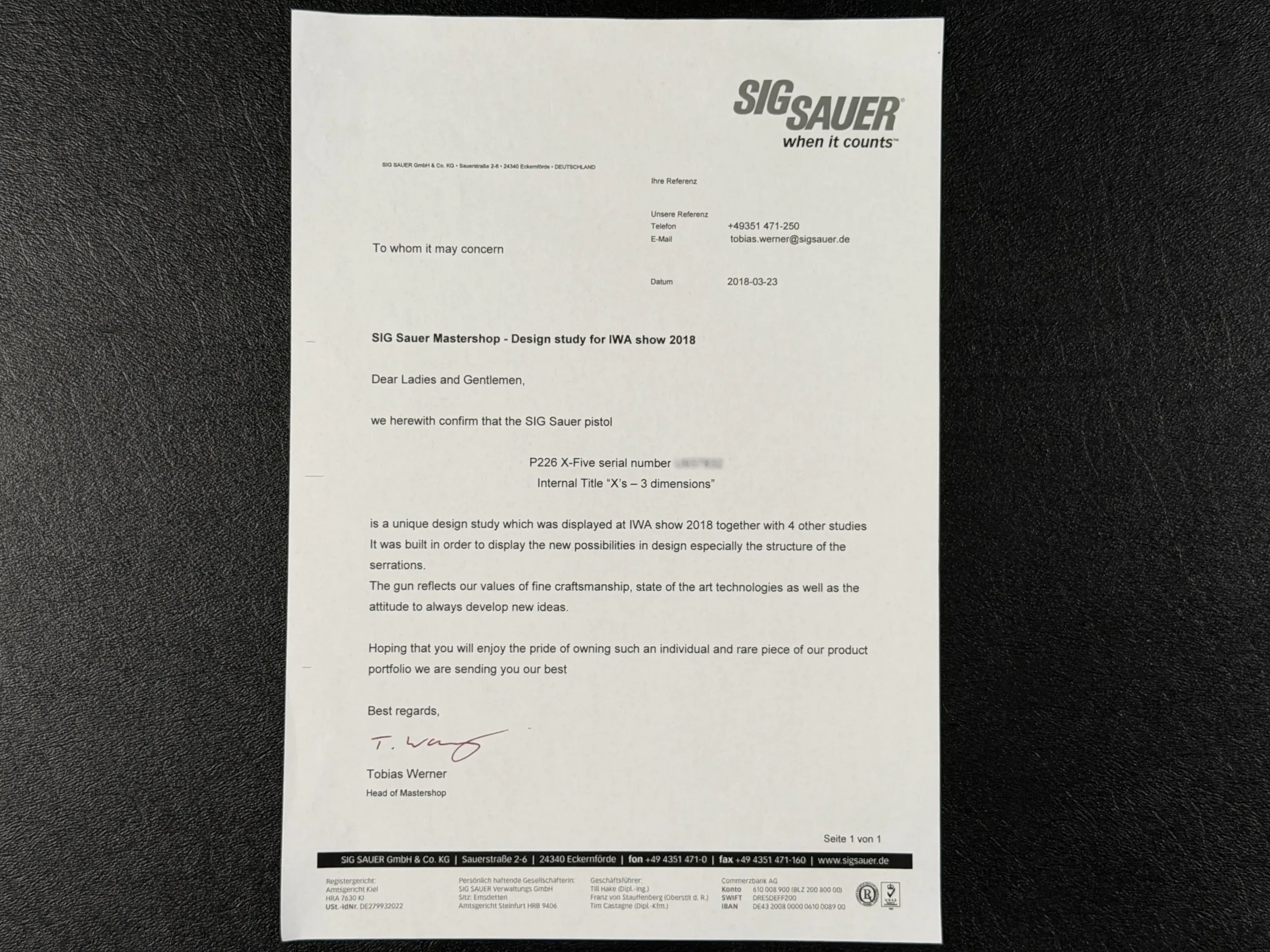 Created as a SIG Sauer Mastershop design study for the 2018 IWA Show, this Prototype P226 X-Five “3 Dimensions” centers on a striking multi-directional slide serration pattern. Chambered in 9mm with a matte-finished slide and frame, walnut grips, and original Mastershop documentation, it presents a distinctive expression of the X-Five platform.