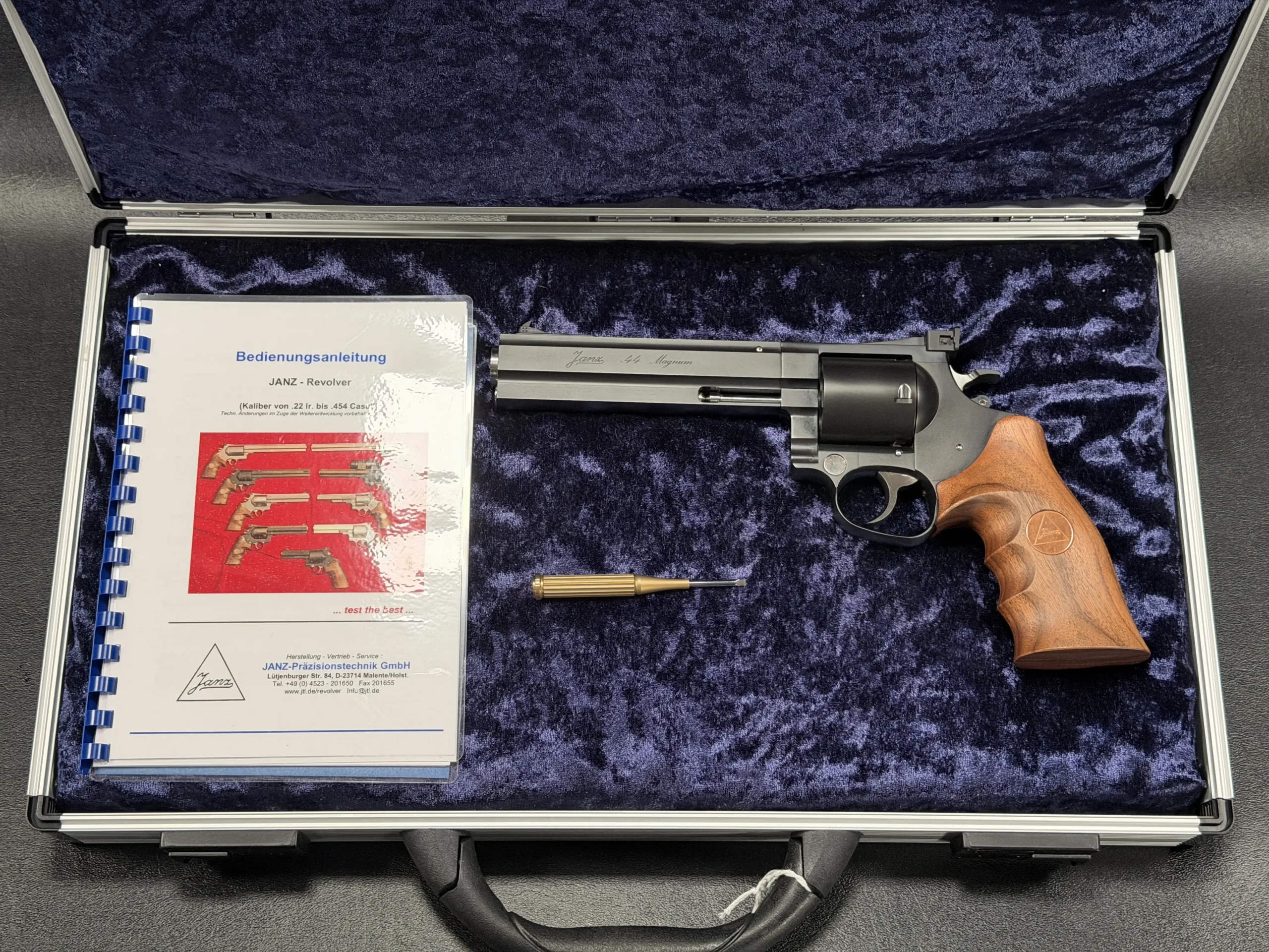 Included with the revolver are its factory case, original manual, and tools, making this a well-presented example of the platform for enthusiasts of finely made modern revolvers.
