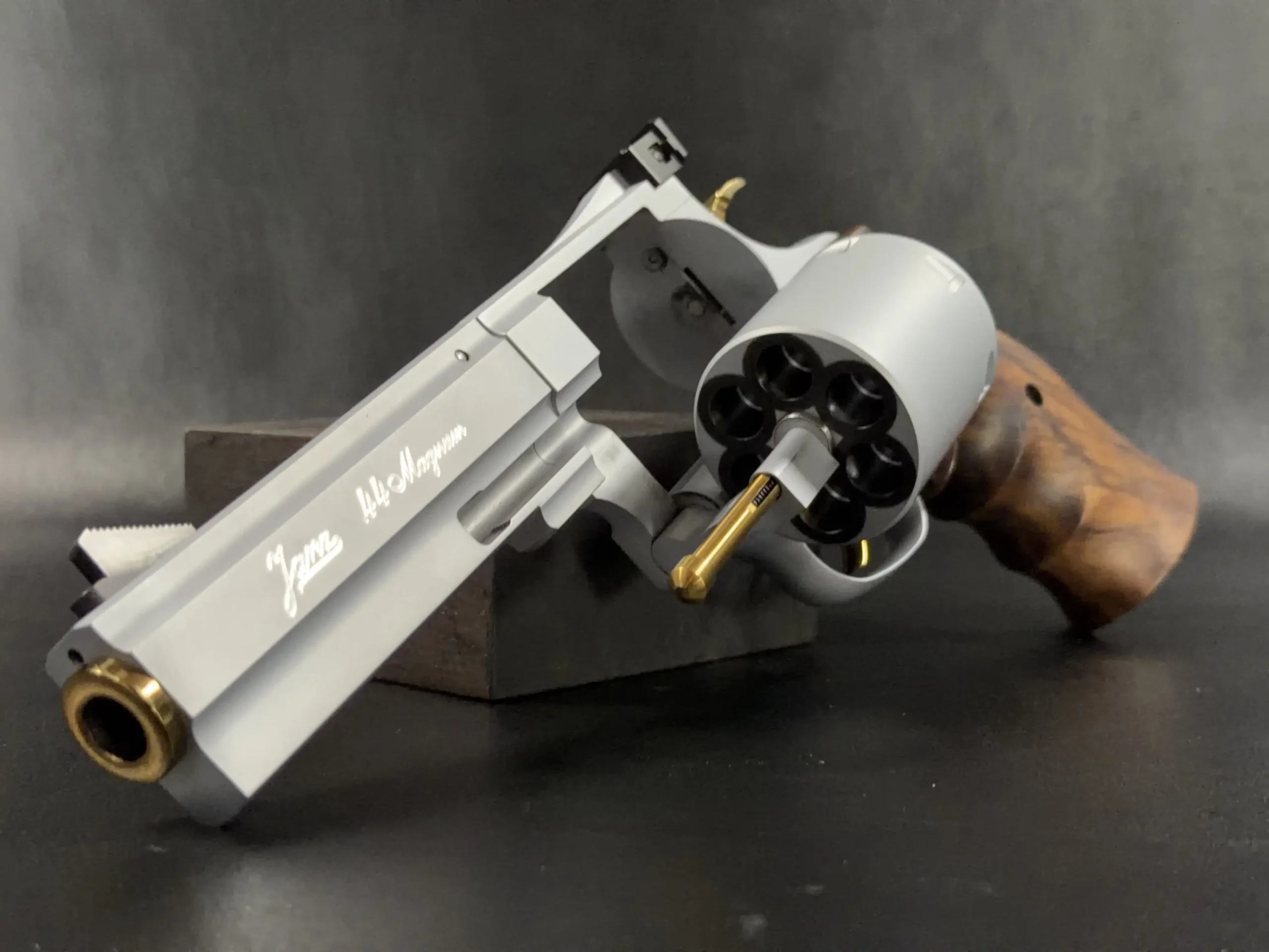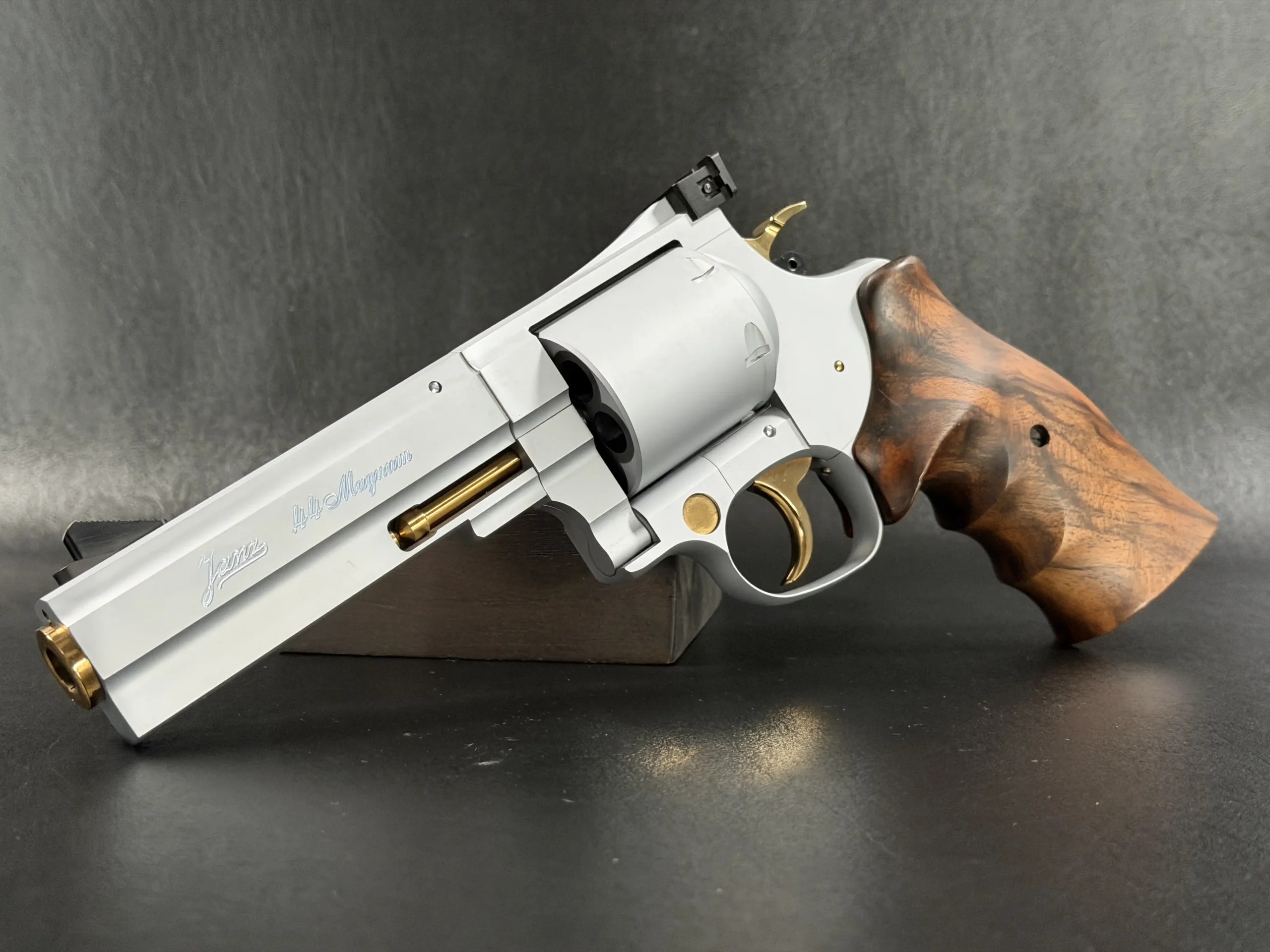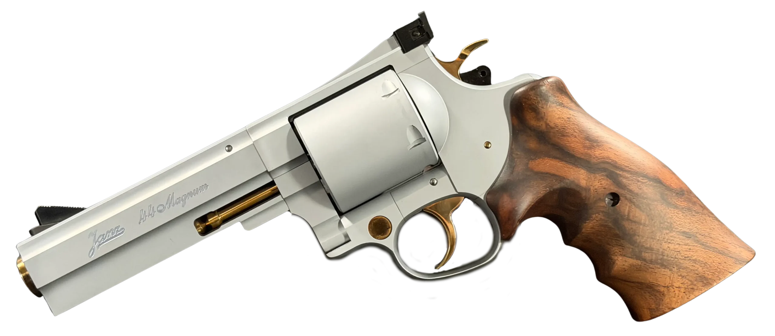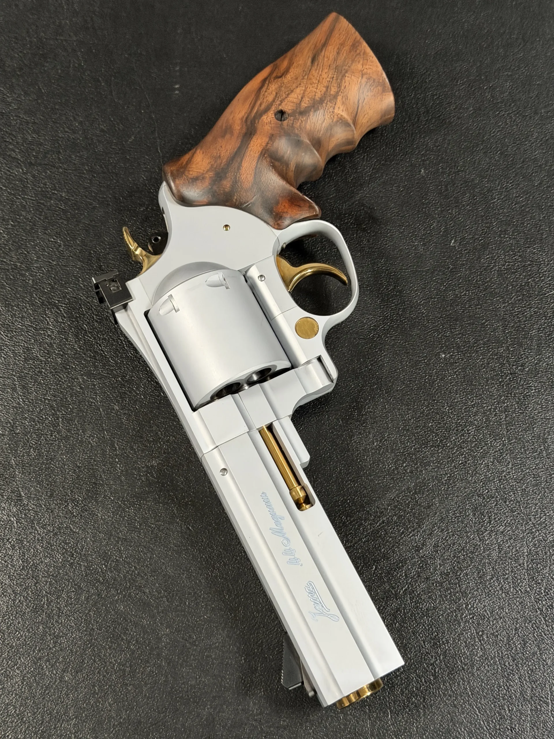 Deeply figured wood grips bring warmth and contrast to the stainless finish, while gold-toned accents add a refined visual touch throughout the revolver and its conversion components. Complete and thoughtfully presented, this EMS JTL set brings together precision manufacturing, modular design, and a distinctive premium finish.
