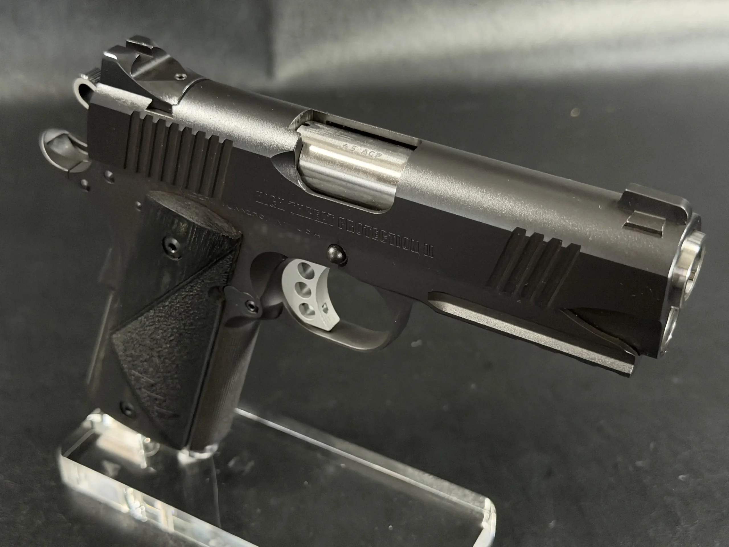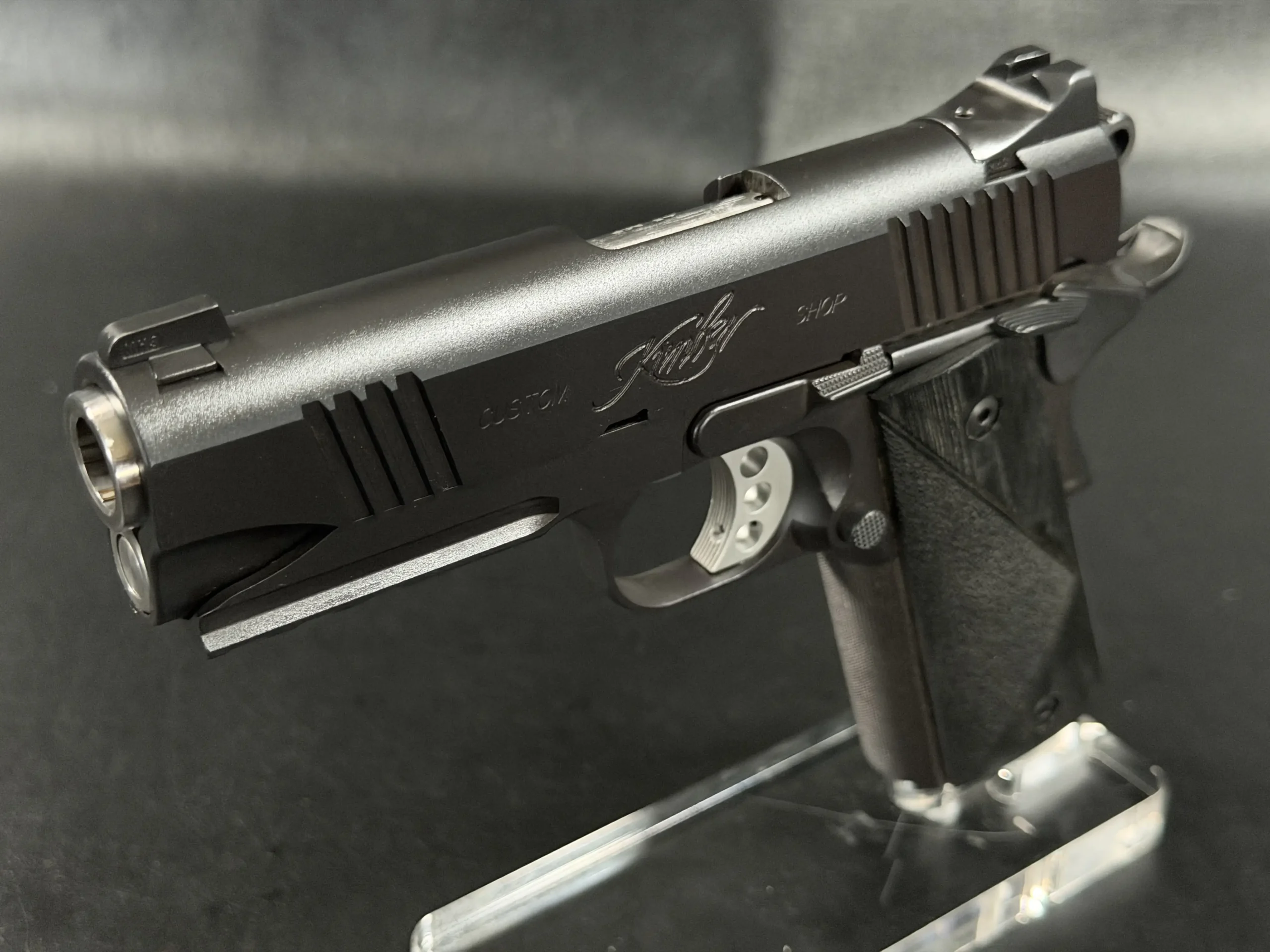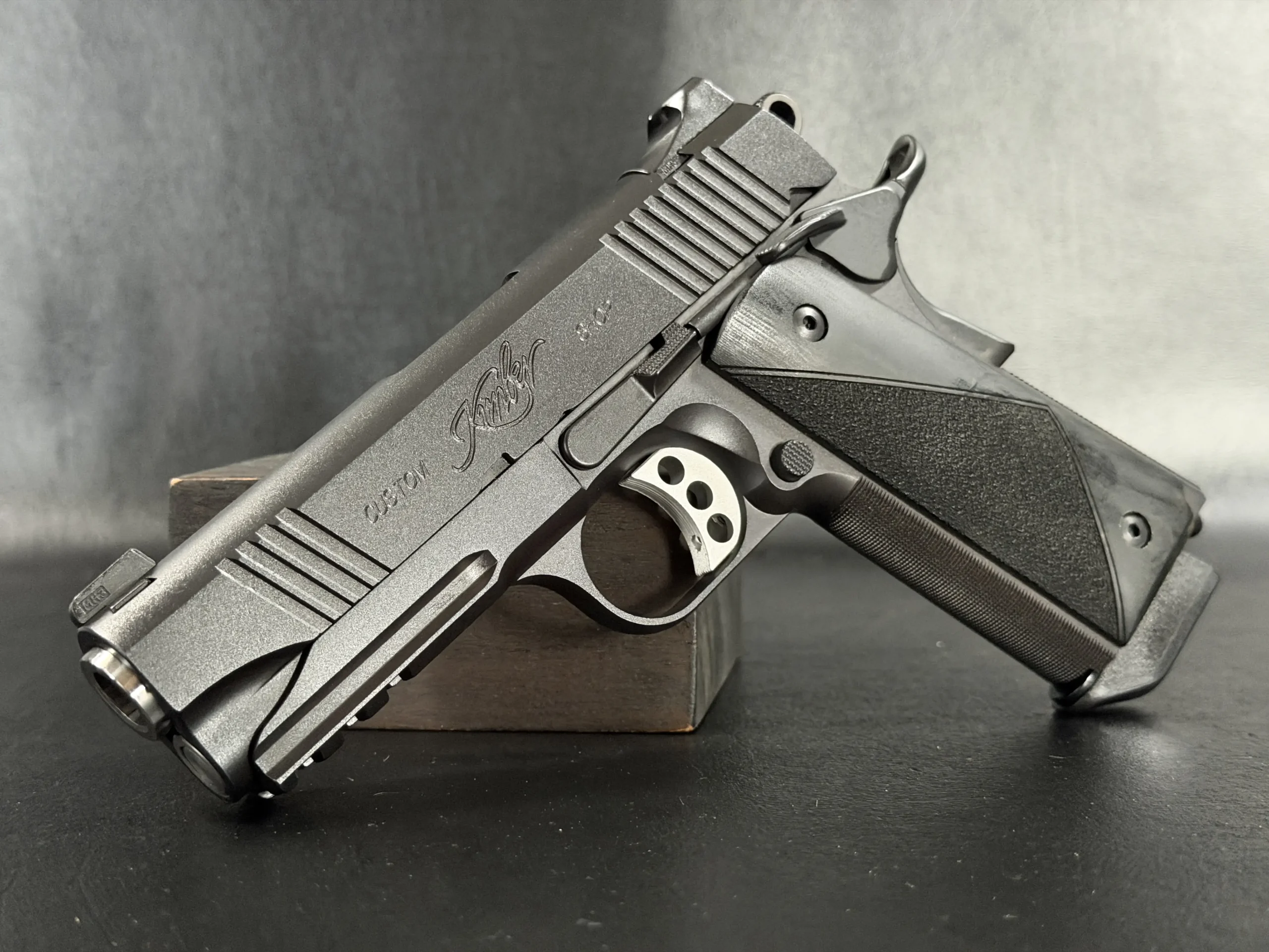 Notable details include a skeletonized aluminum trigger, extended beavertail grip safety, commander-style hammer, textured grip panels, an undercut trigger guard, and a beveled magazine well. Together, these features give the High Threat Protection a clean, purposeful character that remains unmistakably Kimber and unmistakably 1911.