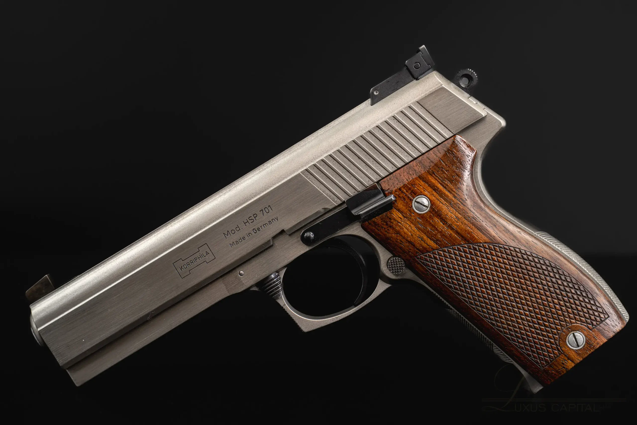 Presented as a complete ensemble, the included components are described as correctly matched to the pistol. Overall, this HSP 701 combines the model’s engineering-focused character with a particularly striking full-dust-cover configuration.
