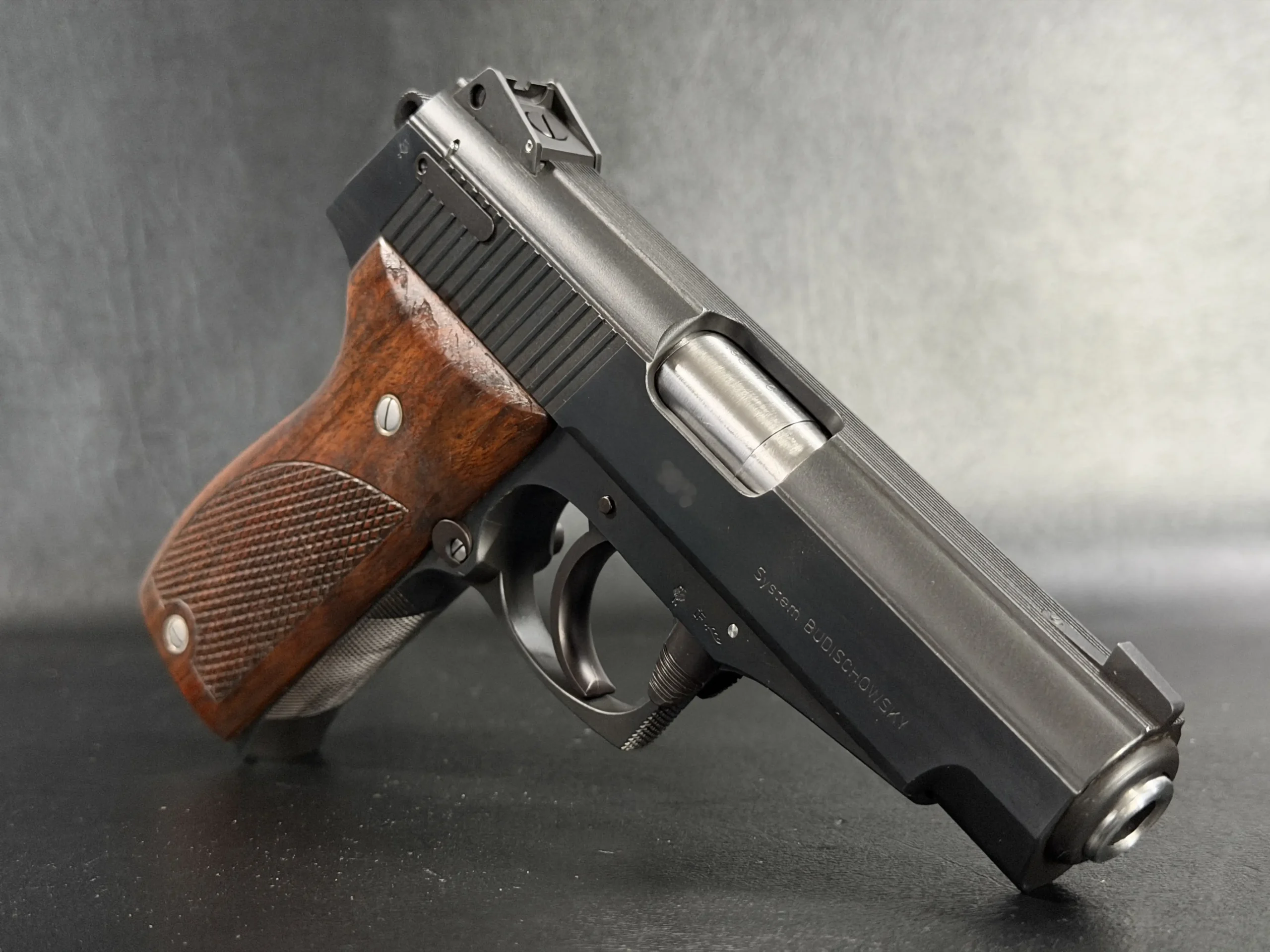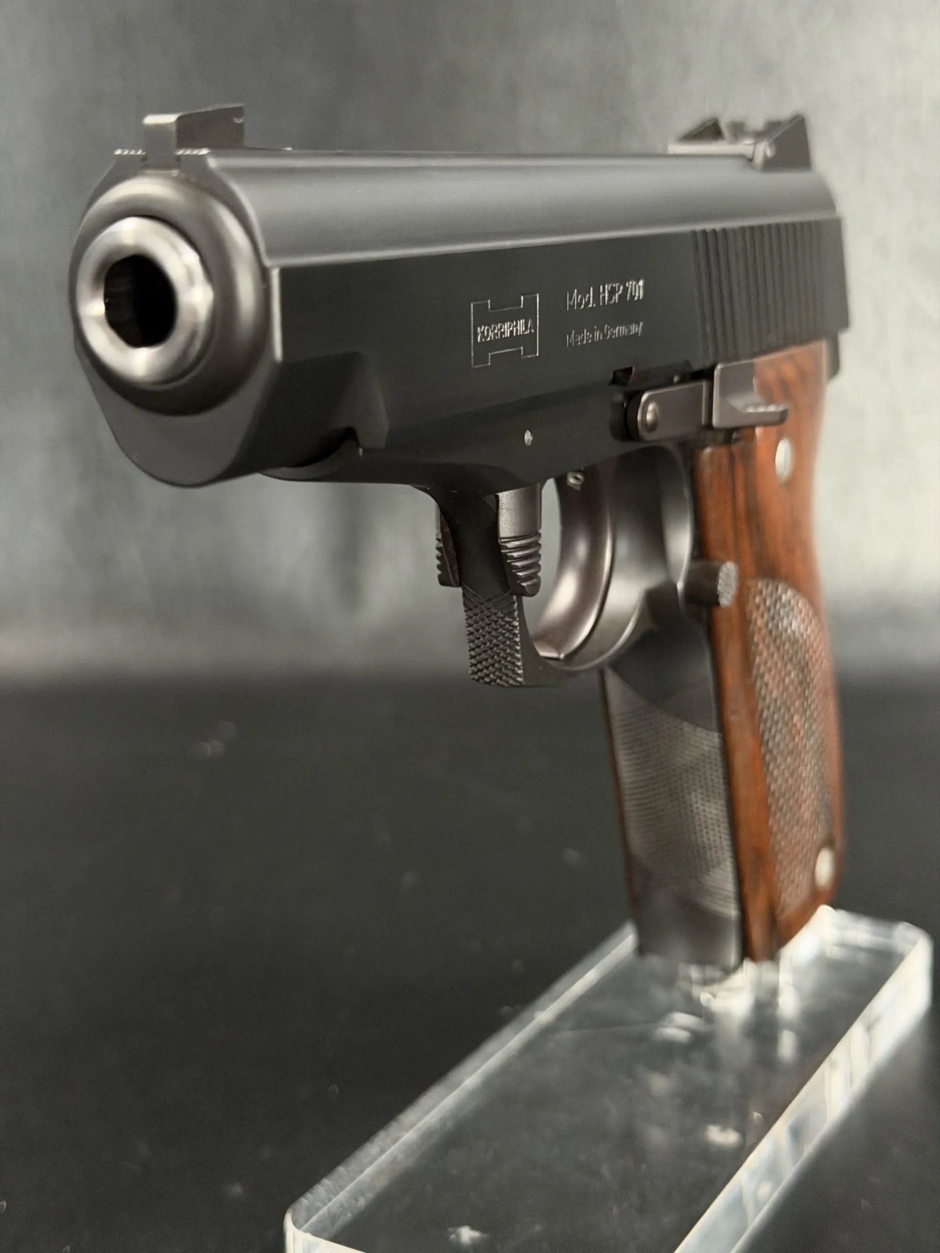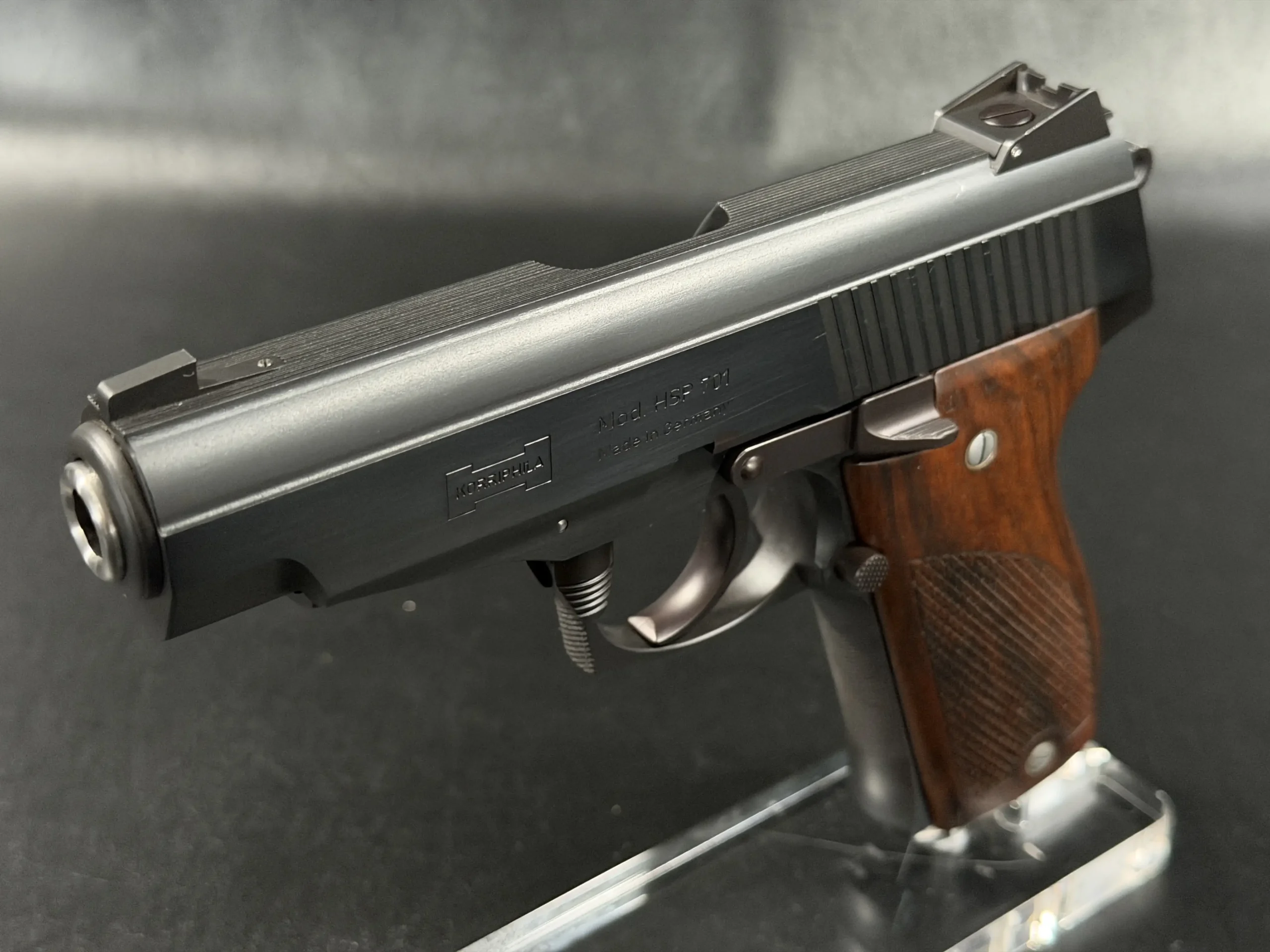 This Korriphila HSP 701 is configured in .38 Wadcutter, an uncommon chambering for the model. The pistol reflects the precise fit and machining associated with the HSP 701 platform, with satin-finished steel components and a cohesive visual balance across the slide, frame, barrel, and controls.