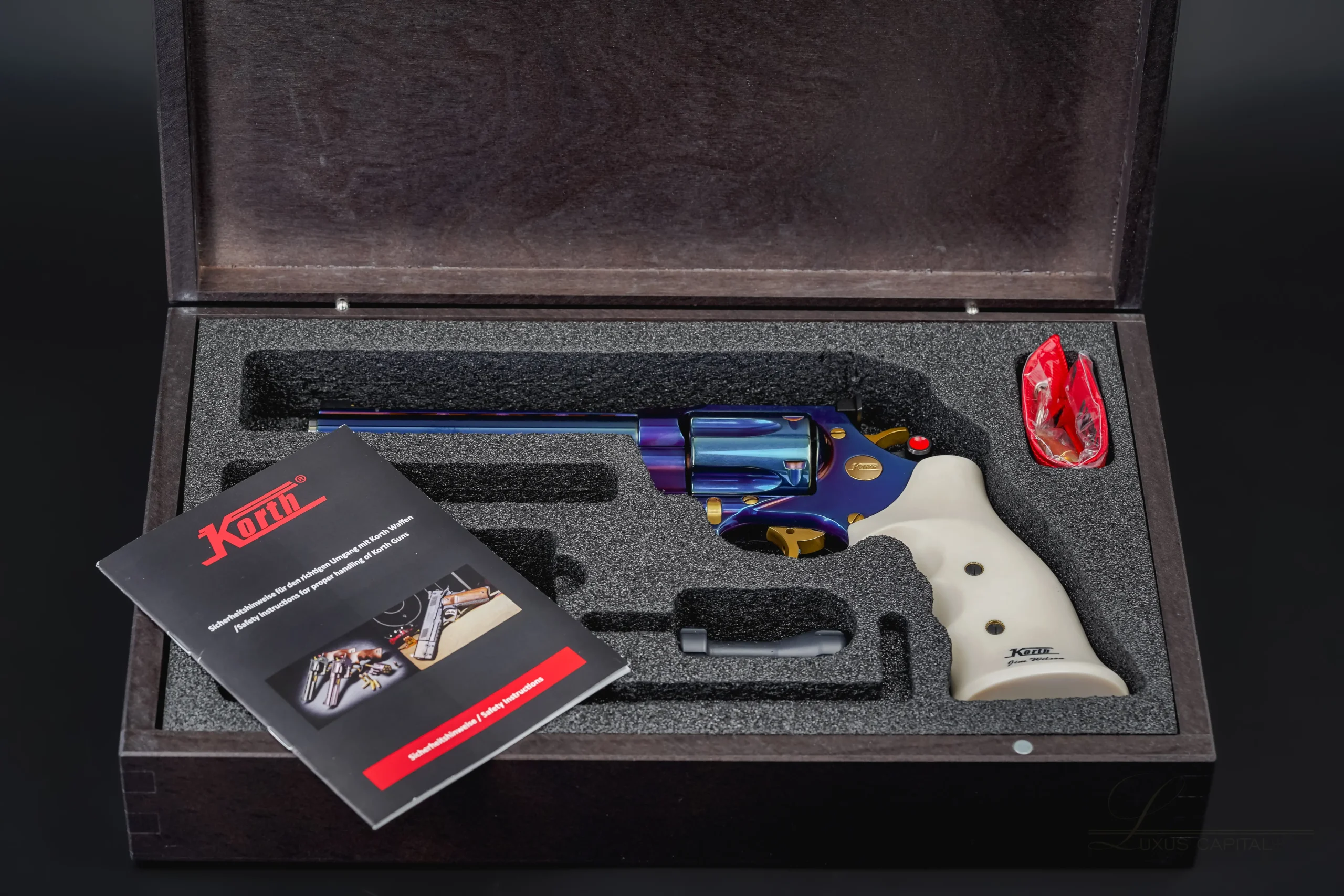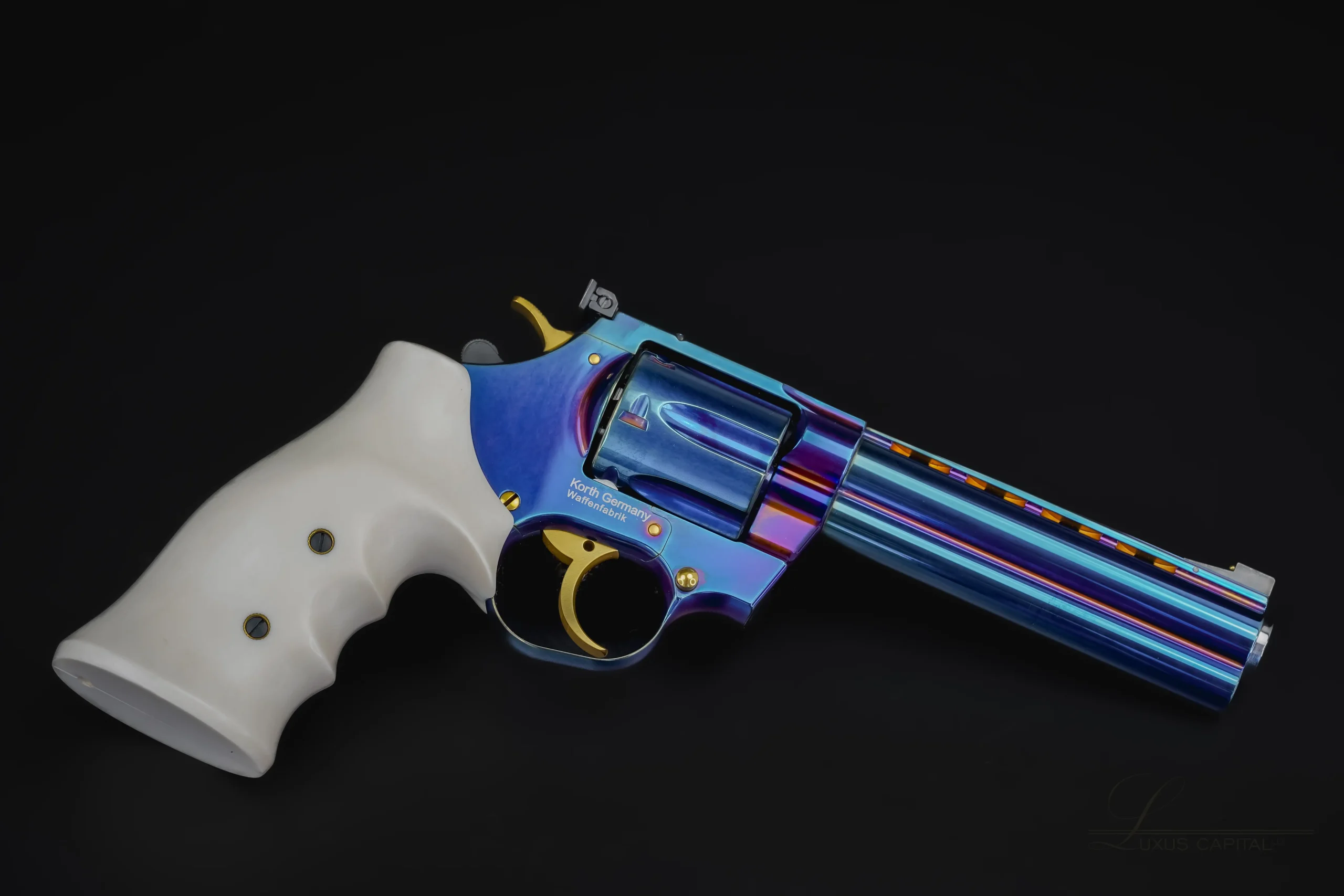 The Korth Classic 6″ Blue Plasma is a .357 Magnum revolver built on Korth’s Classic platform, combining precise German craftsmanship with a highly distinctive presentation. Its hand-fitted construction and finely executed mechanical details reflect the exacting standards associated with the maker.