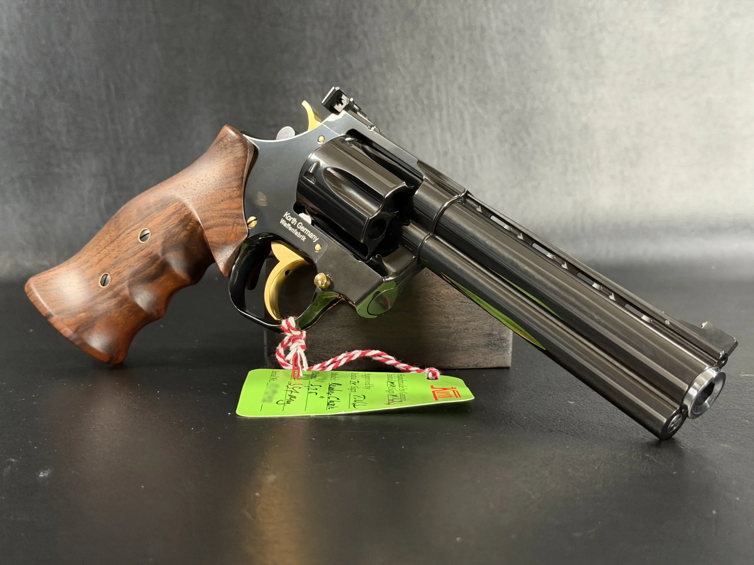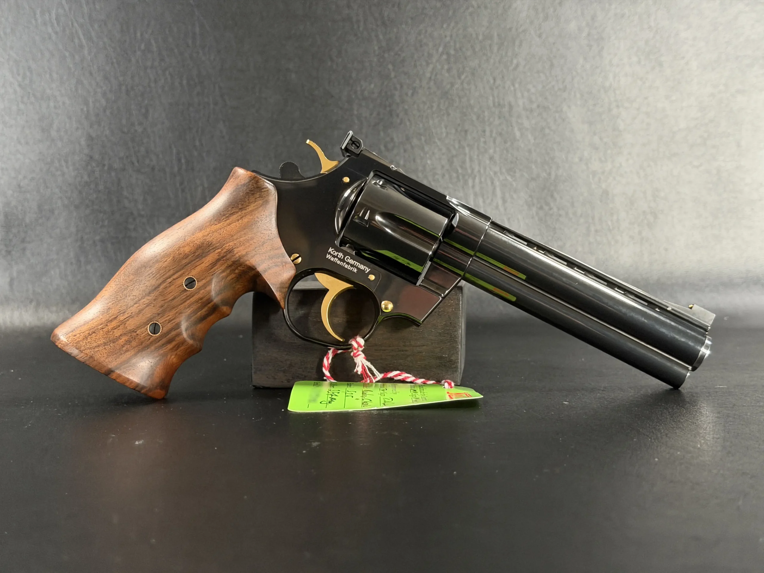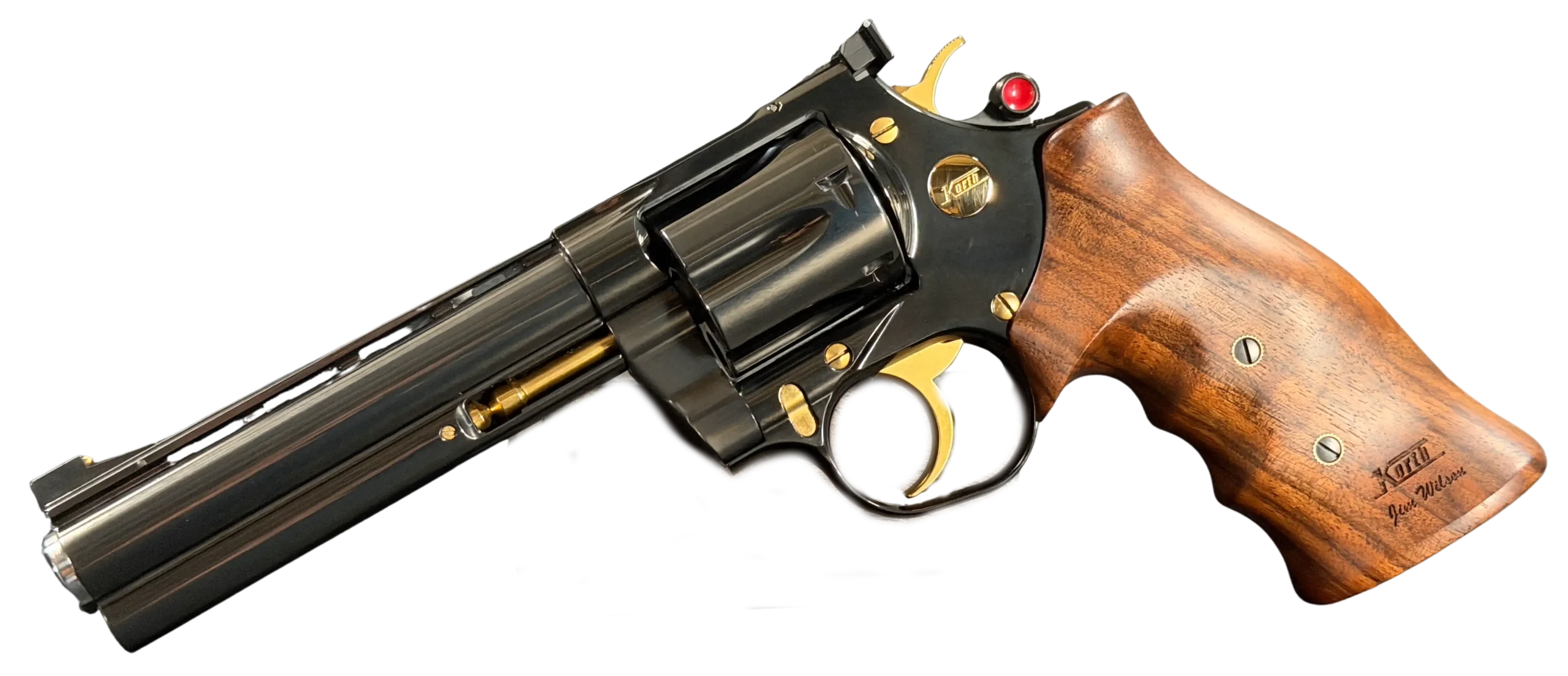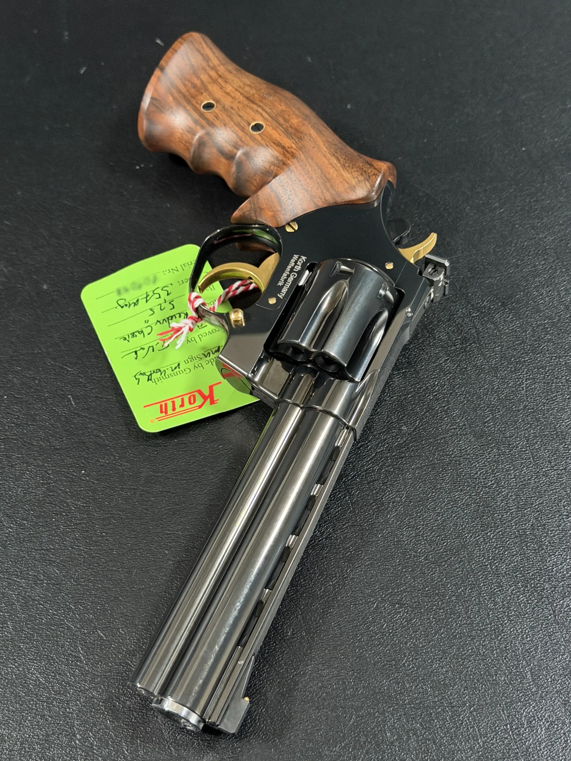 The Korth Classic 6 Inch Black is a finely executed revolver that reflects the brand’s distinctive approach to design and craftsmanship. Chambered in .357 Magnum, it features a 6-inch barrel, a deep black finish, contoured walnut grips, and subtle gold-tone accents.