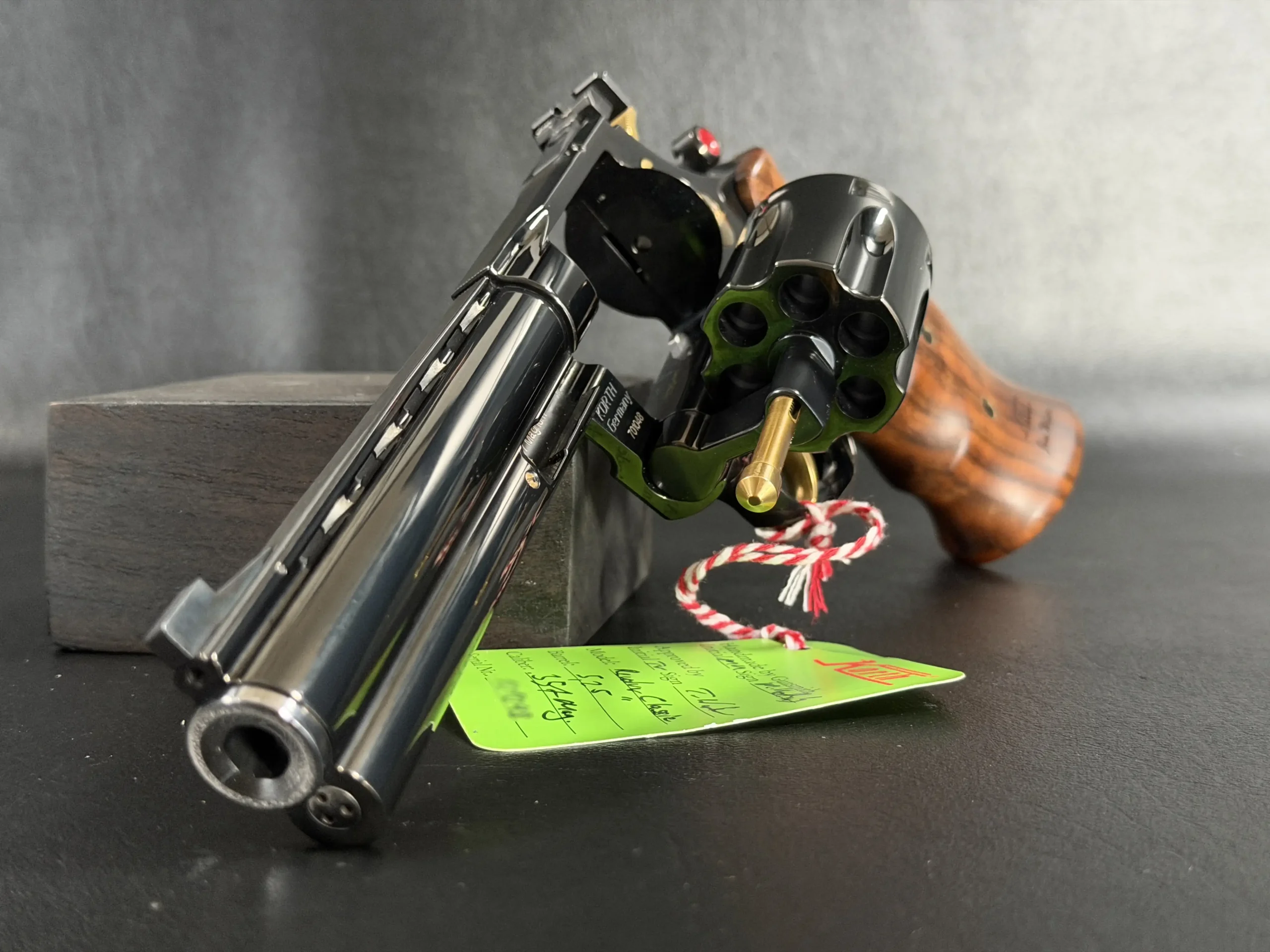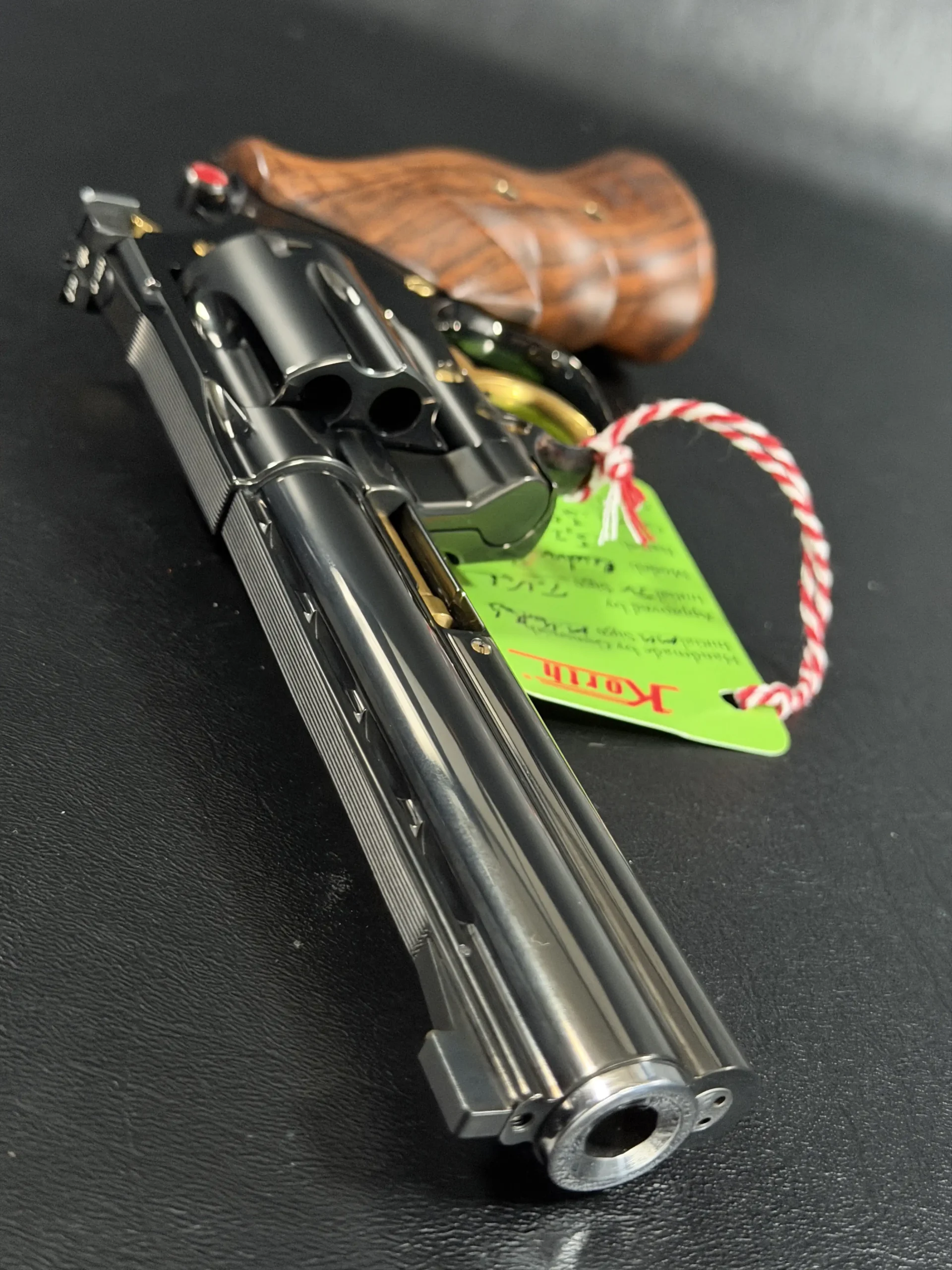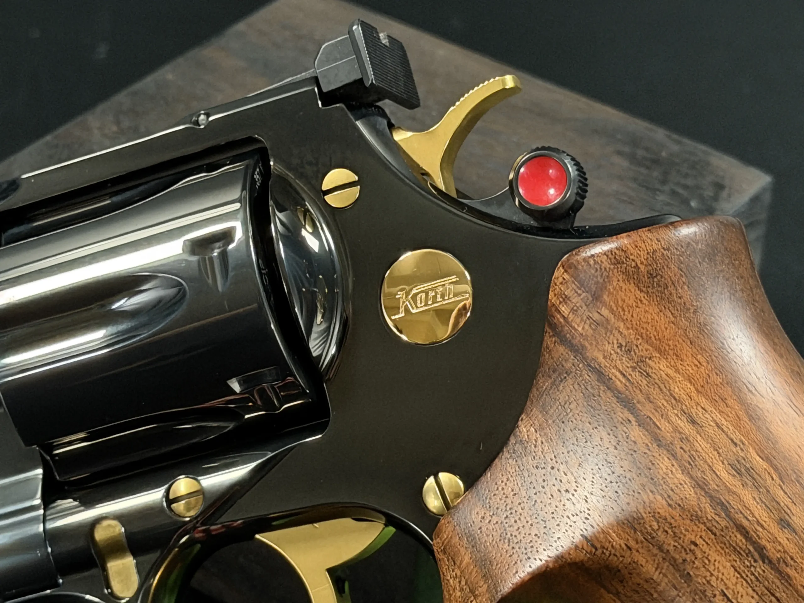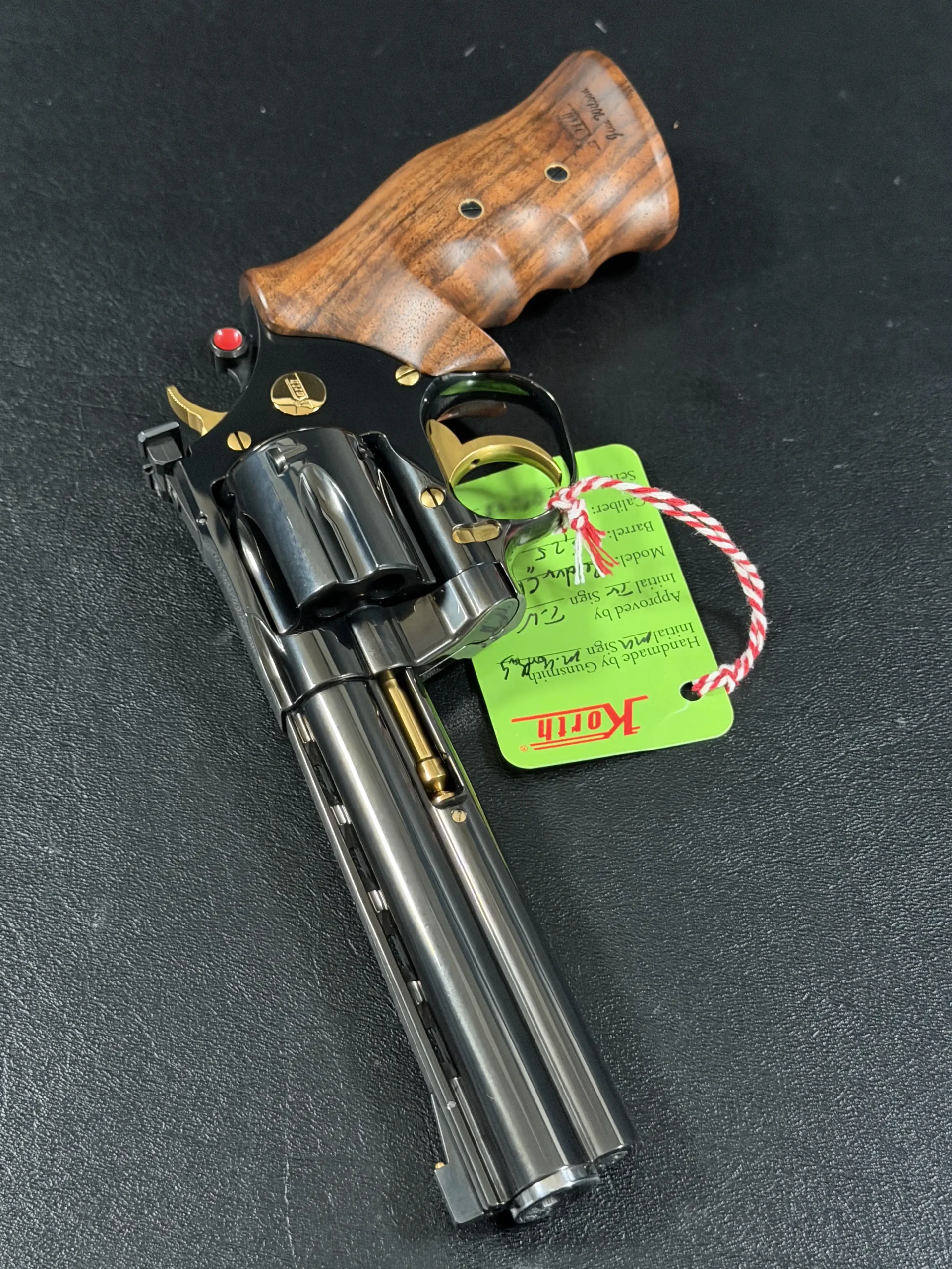 The Korth Classic 6 Inch Black is a finely executed revolver that reflects the brand’s distinctive approach to design and craftsmanship. Chambered in .357 Magnum, it features a 6-inch barrel, a deep black finish, contoured walnut grips, and subtle gold-tone accents.