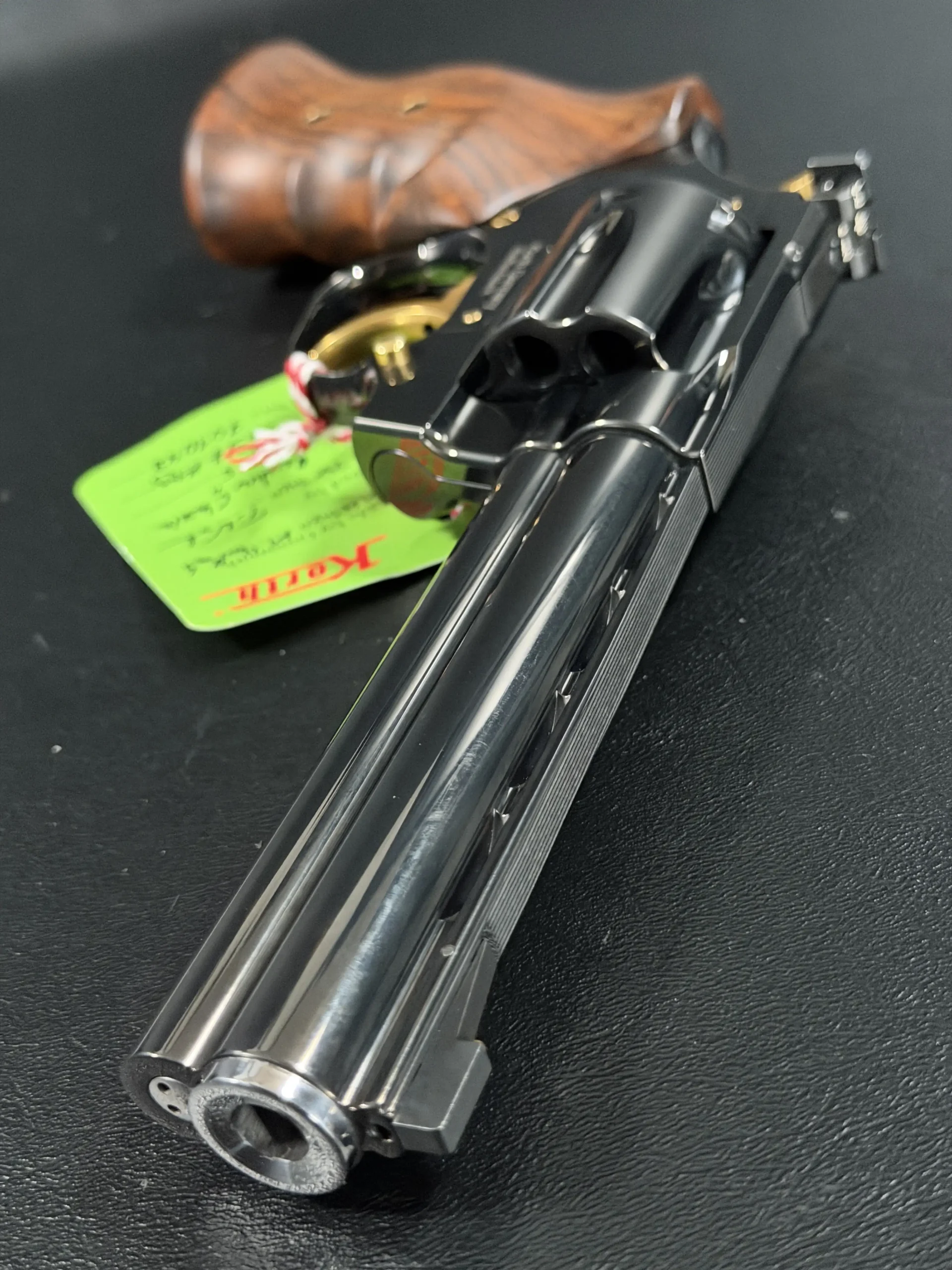 The longer barrel adds visual balance and an extended sight radius, while the overall fit and detailing give the revolver a refined, purposeful presence. From the cylinder and frame to the barrel assembly and internal components, the design emphasizes precision and clean mechanical lines.