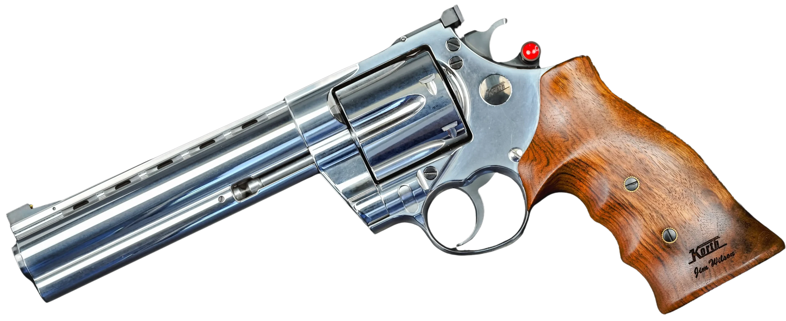The Korth Classic High Gloss Stainless is a striking revolver built on the renowned Korth Classic platform and chambered in .357 Magnum. Its high-gloss stainless finish gives the revolver a bright, mirror-like appearance that highlights the sculpted lines of the barrel shroud, cylinder, and frame.