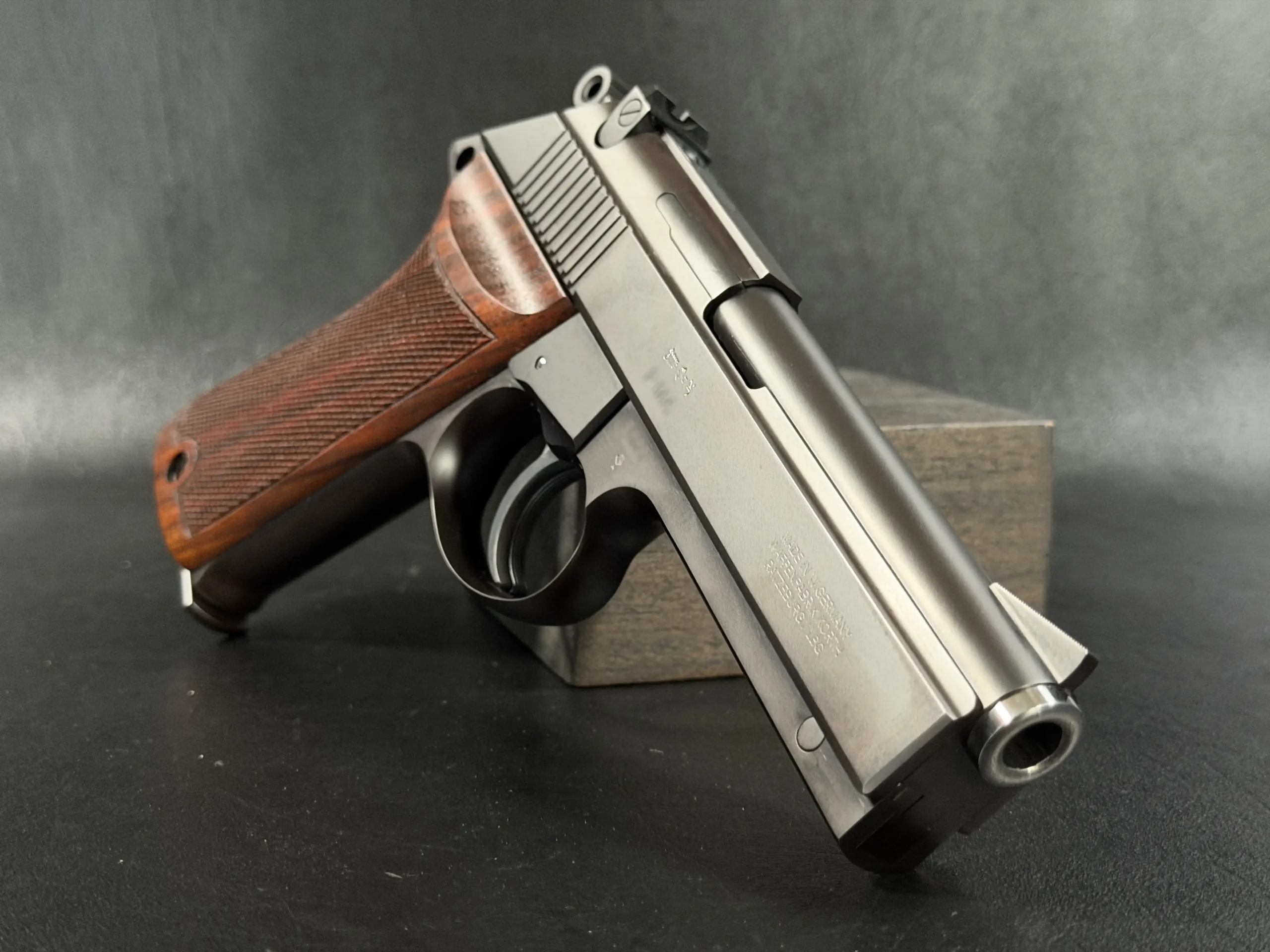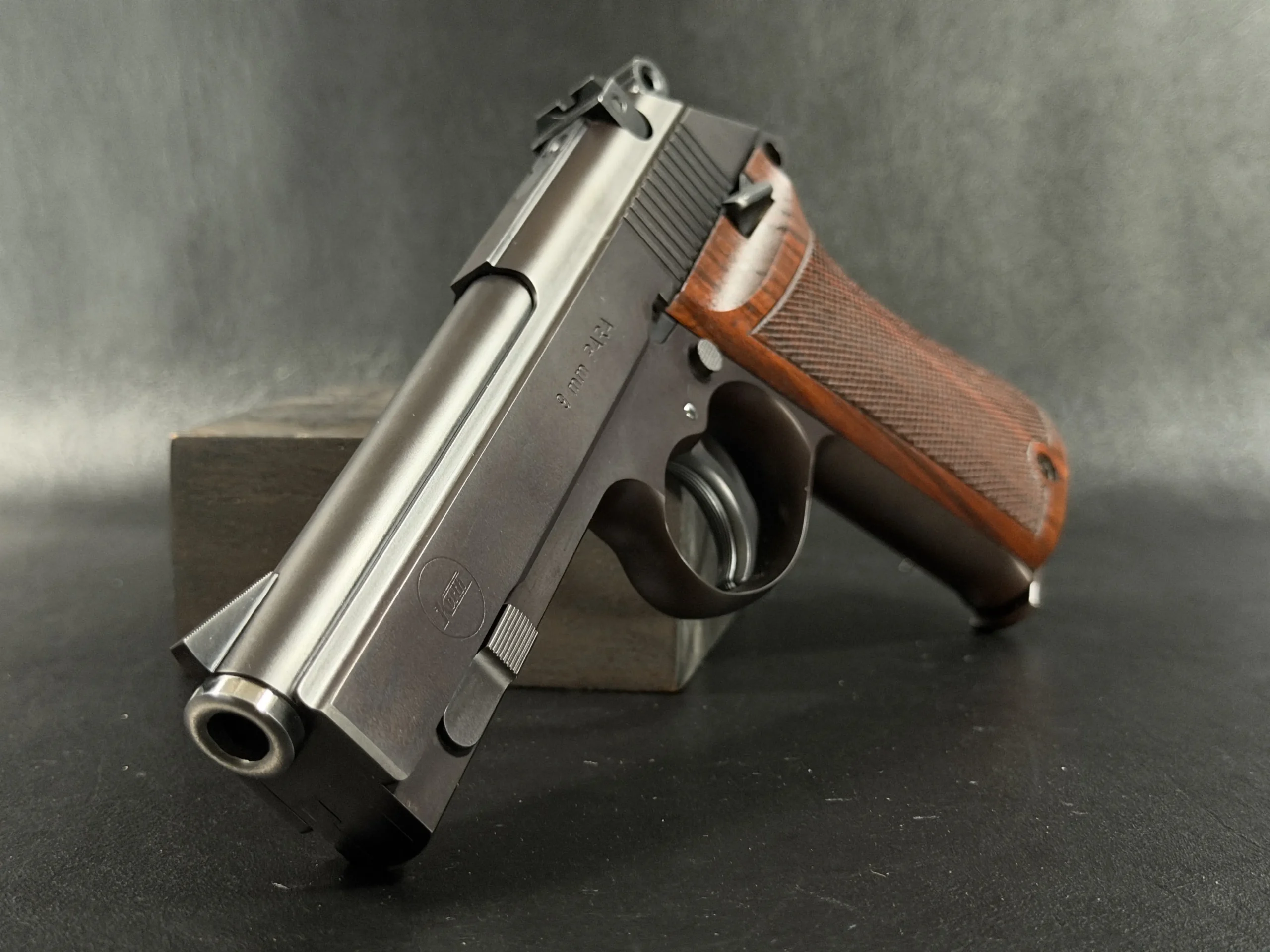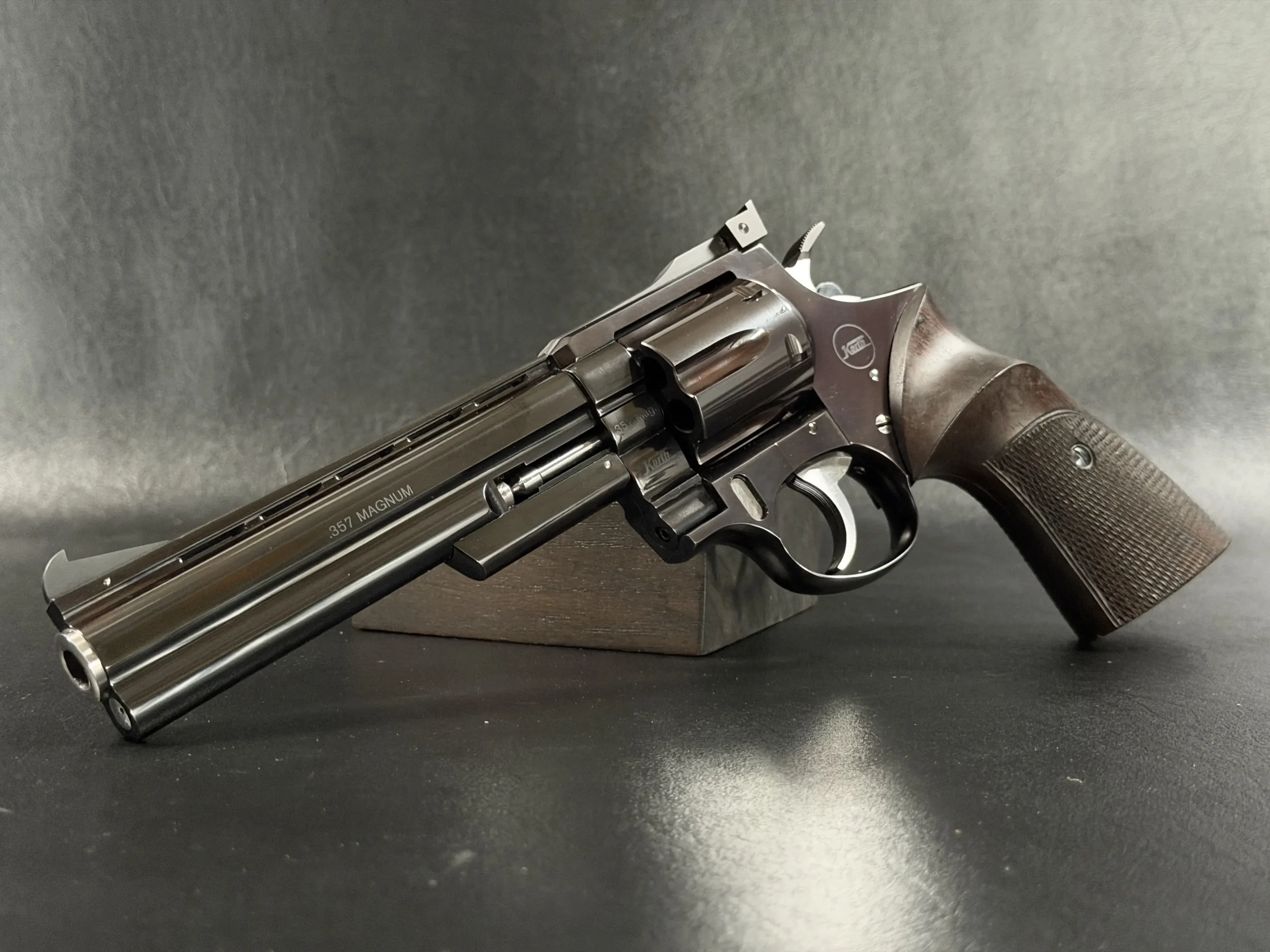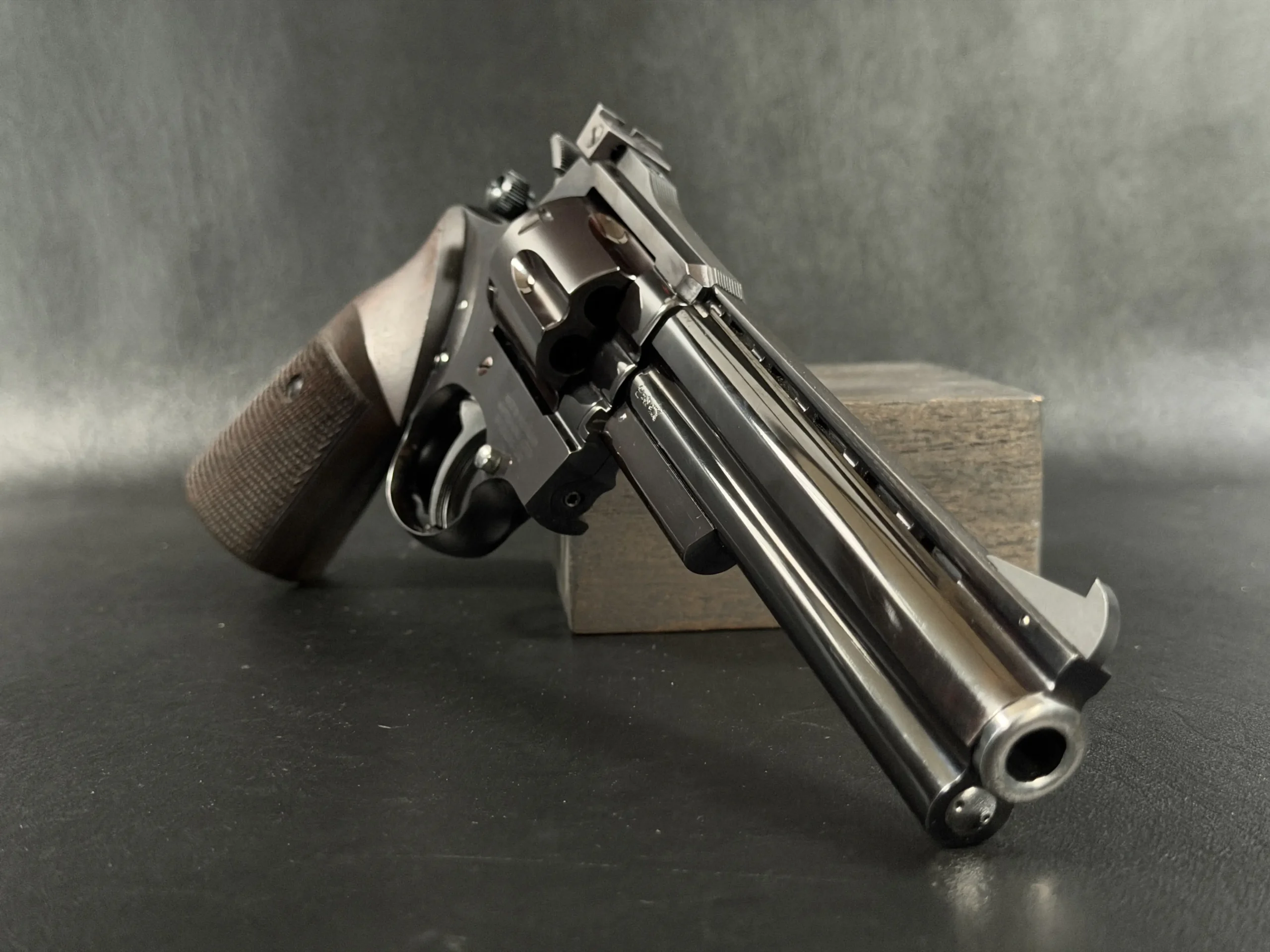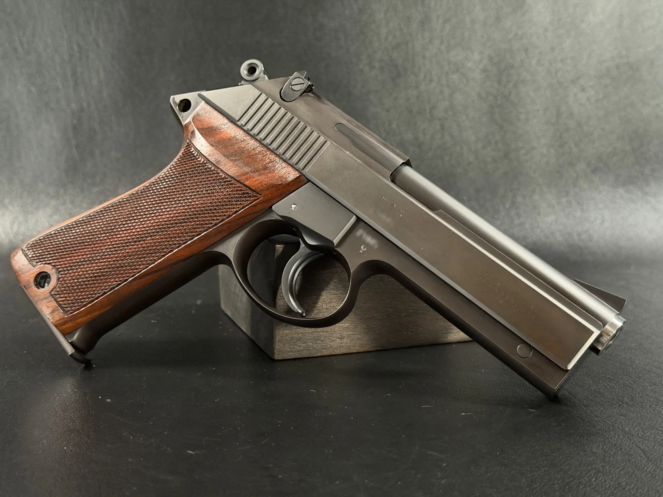 A factory-matched Korth set featuring a 9mm semi-automatic pistol and a .357 Magnum revolver. With coordinated walnut grips, contrasting blued finishes, and the original period Korth boxes, this pair offers a striking presentation for the collector.
