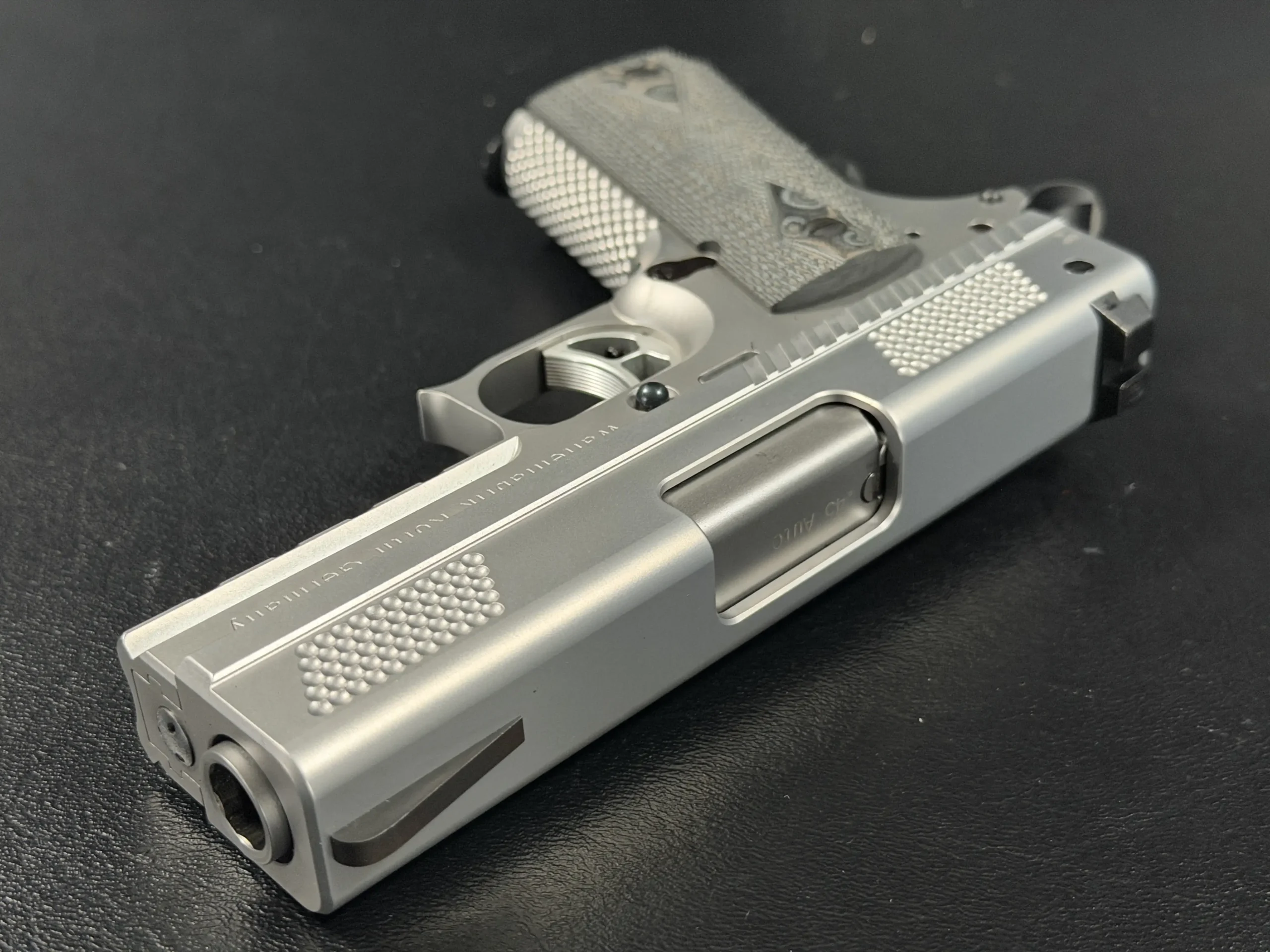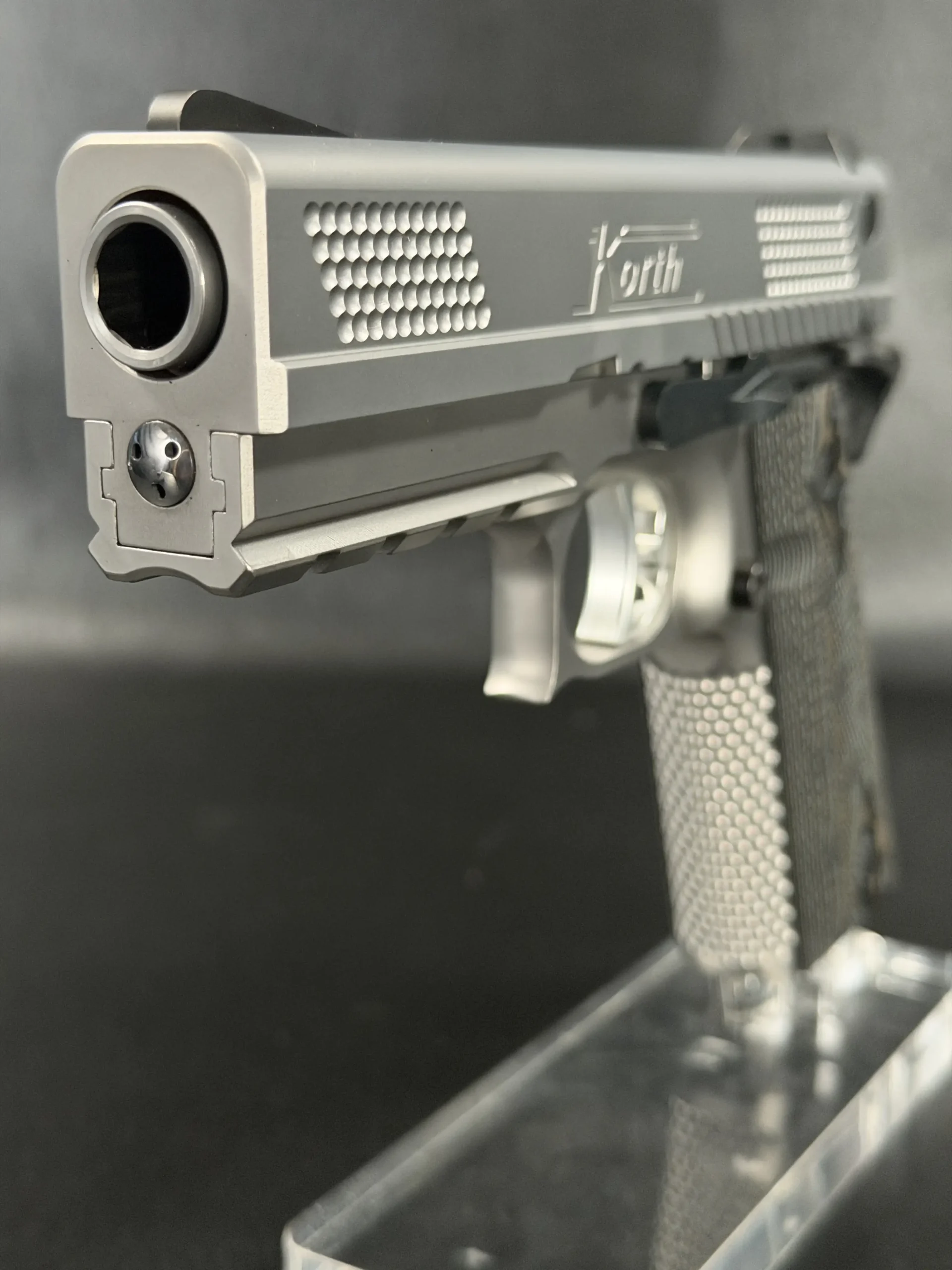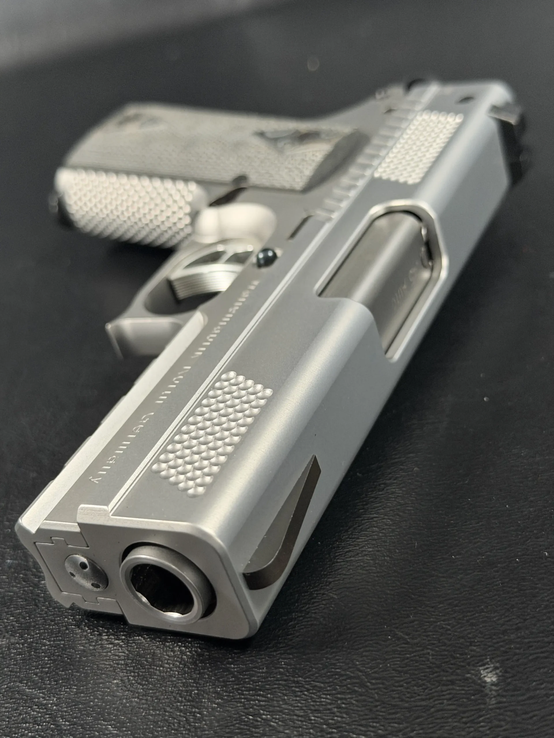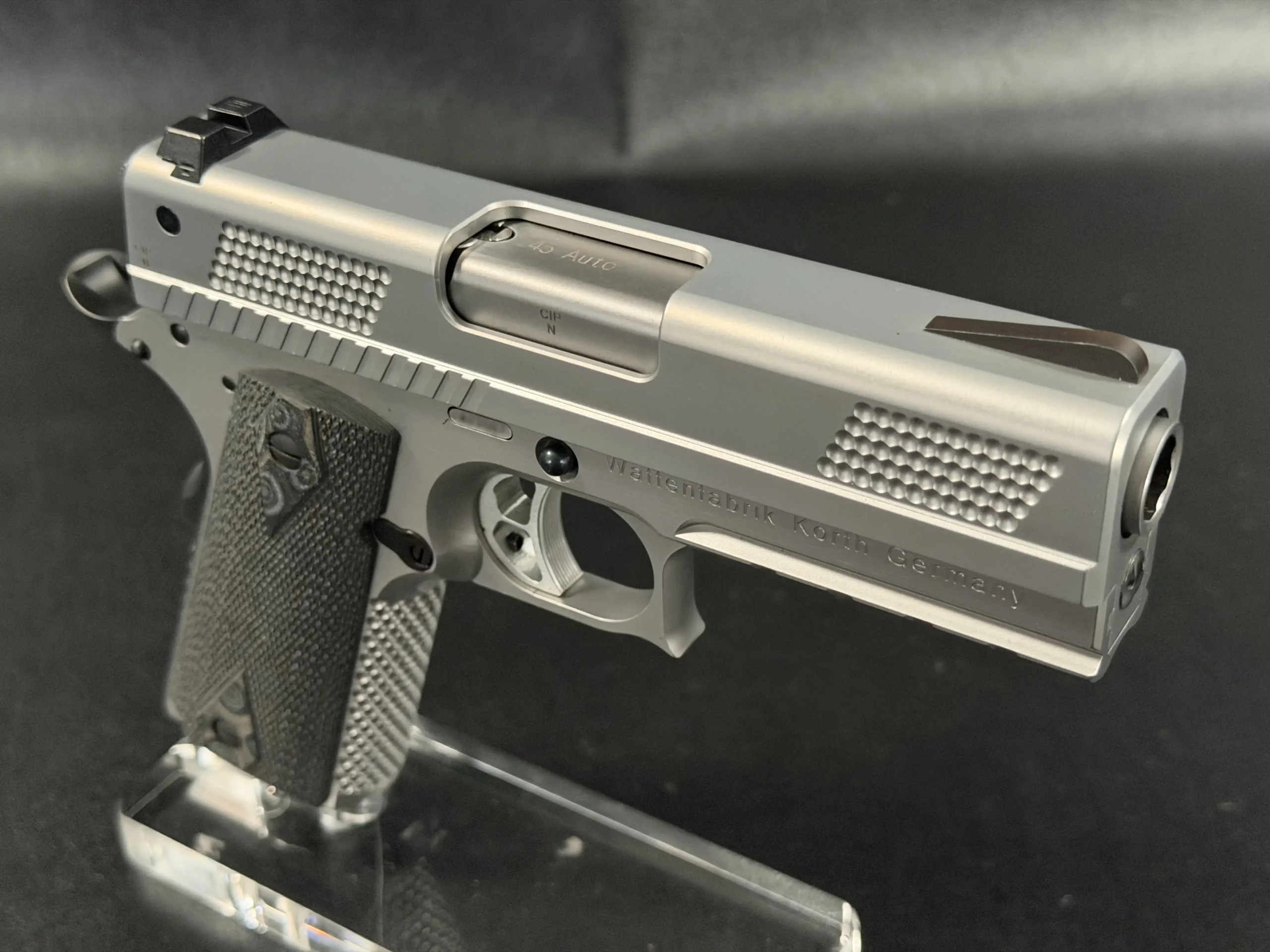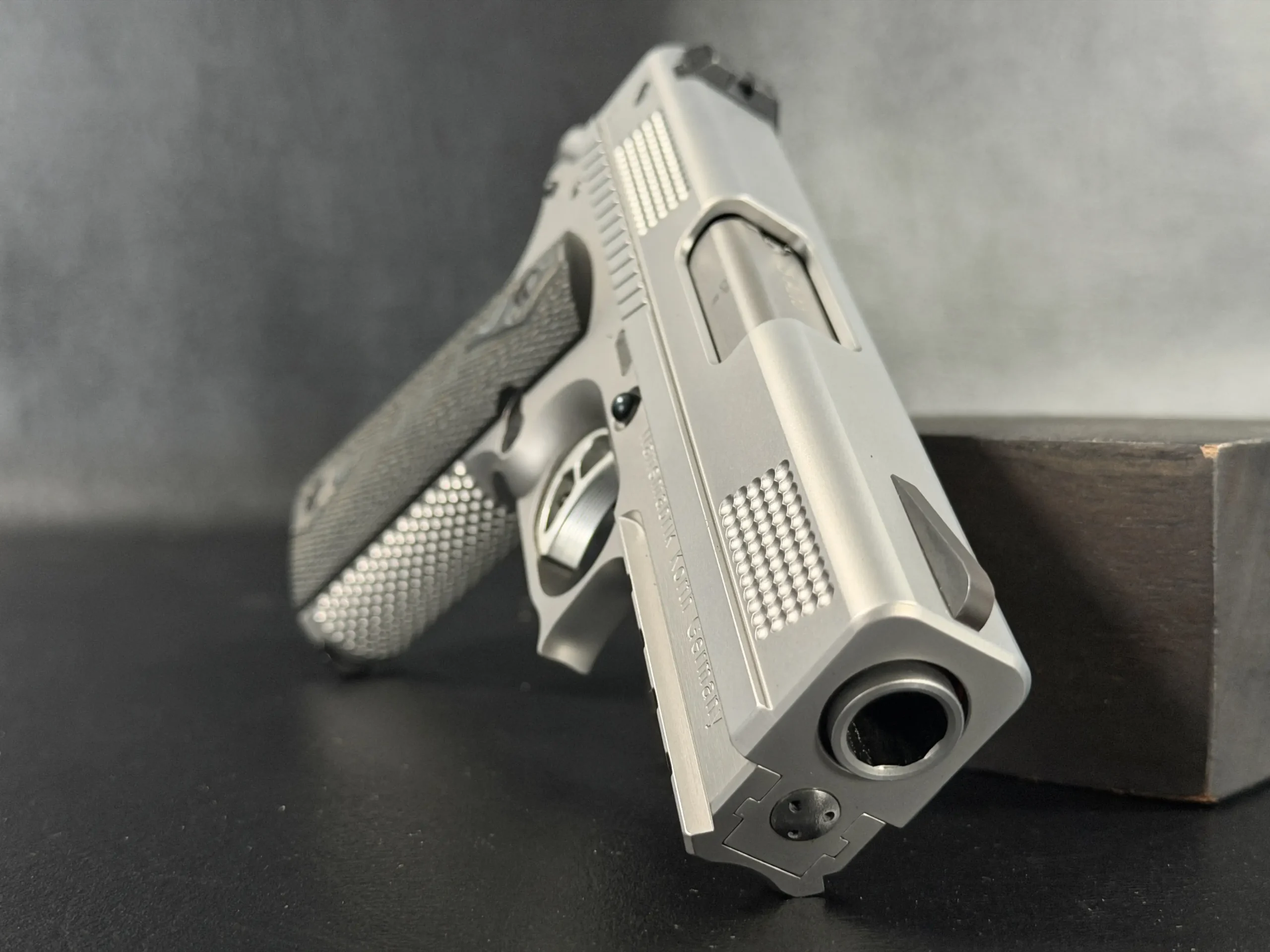 The Korth PRS-4 is a 4-inch 1911-pattern pistol chambered in .45 ACP, bringing together refined machining, thoughtful ergonomics, and a distinctly modern presentation. Its satin stainless finish gives the pistol a soft, understated sheen that complements the crisp lines and precision-focused design.