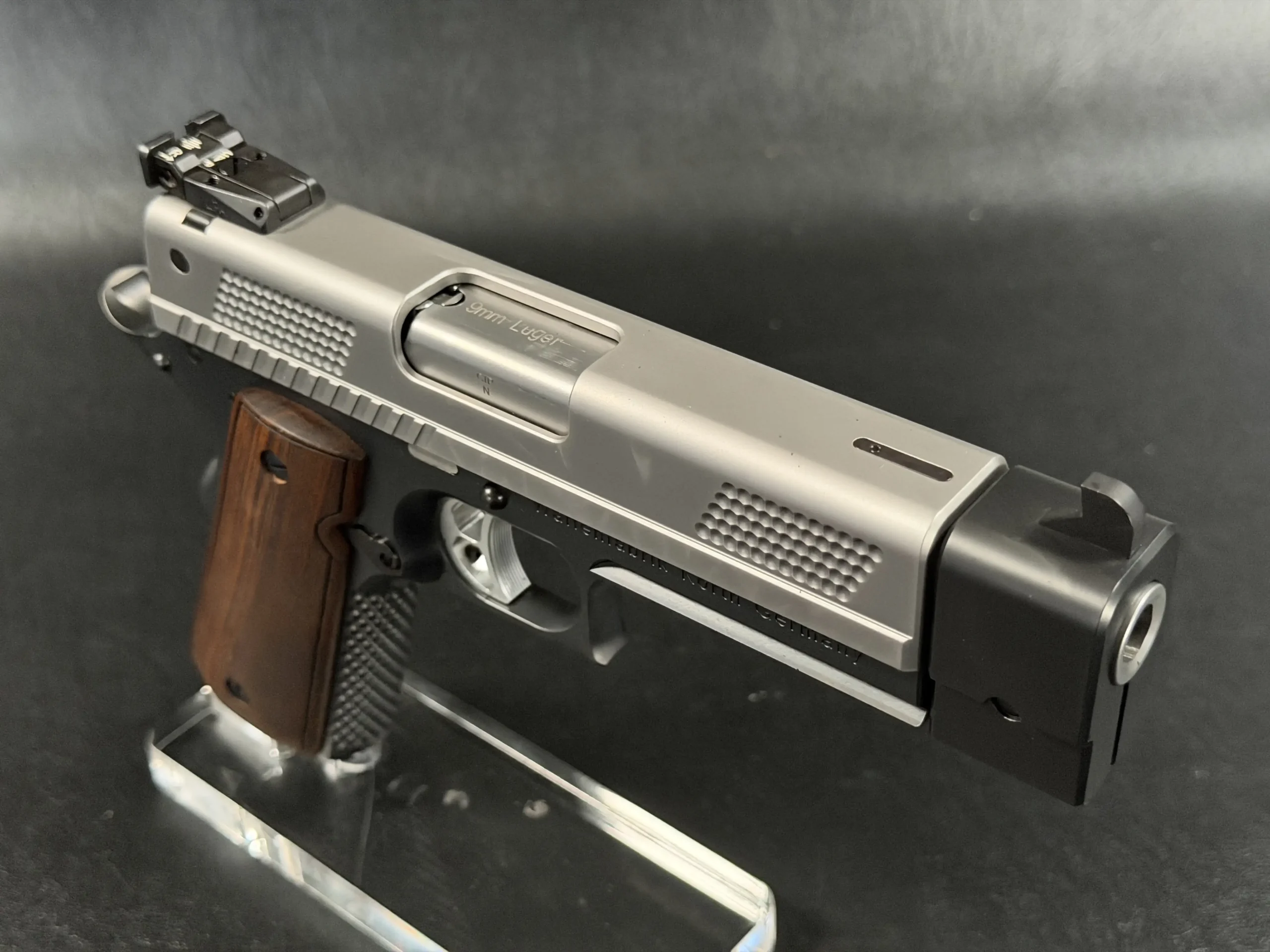 The Korth PRS in this 5-inch configuration offers a distinctive balance within the PRS lineup. Chambered in 9mm, it combines a full-size visual presence with a slightly more compact profile.