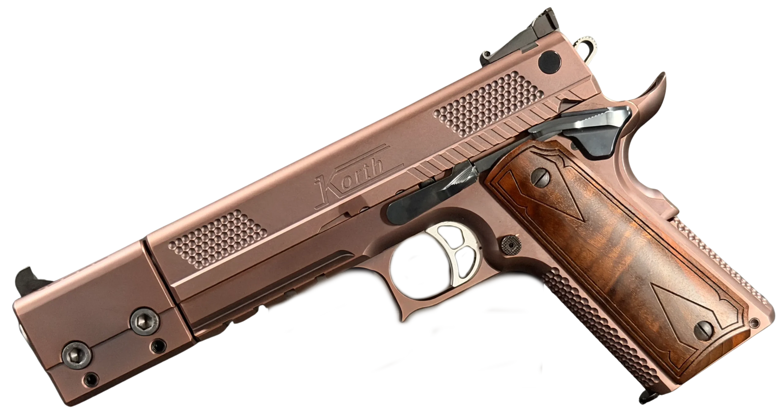 As described, the major components are factory-matched, underscoring the pistol’s cohesive fit and execution. The result is a refined modern Korth design with an emphasis on precision, restraint, and thoughtful detail.