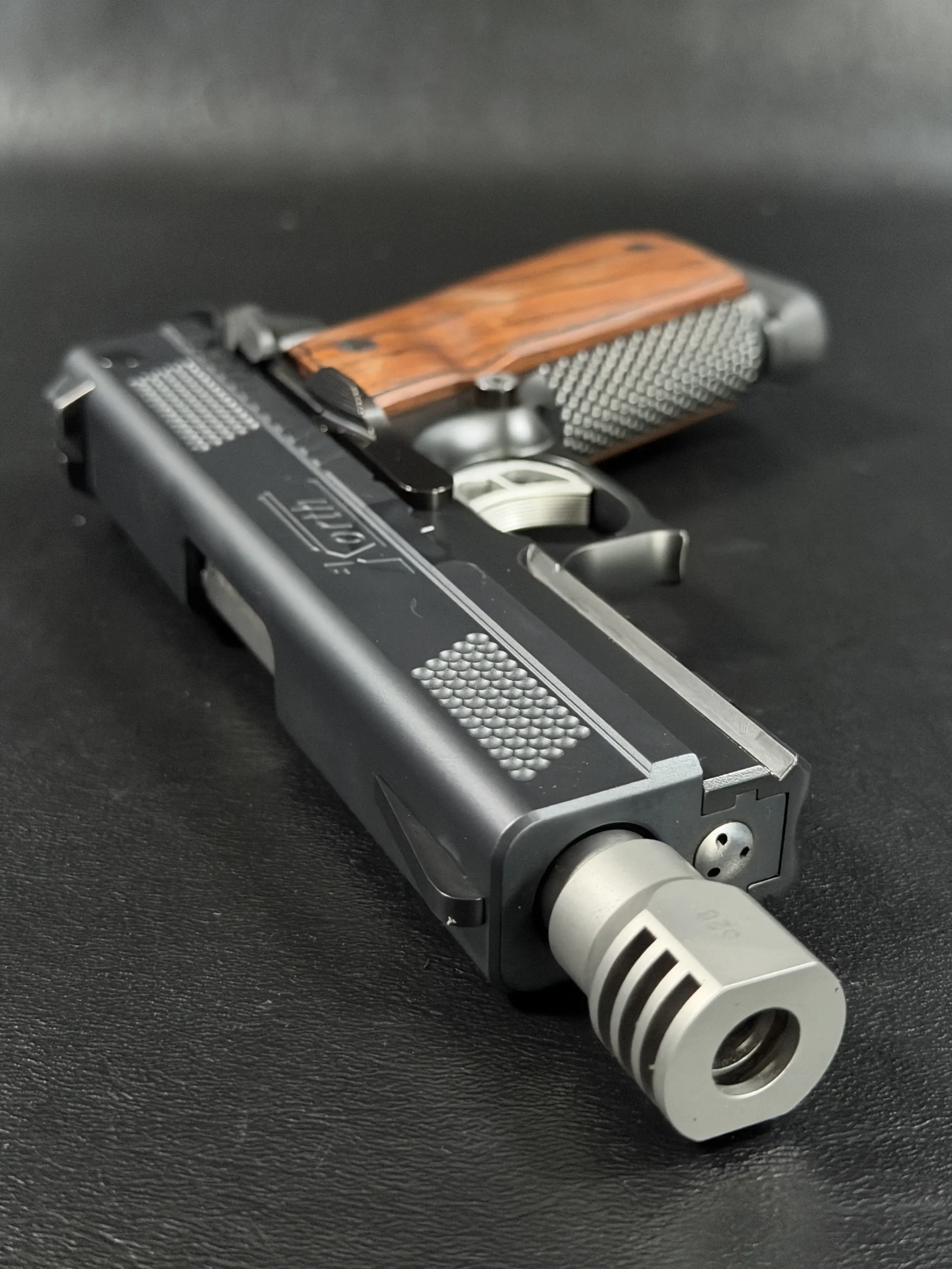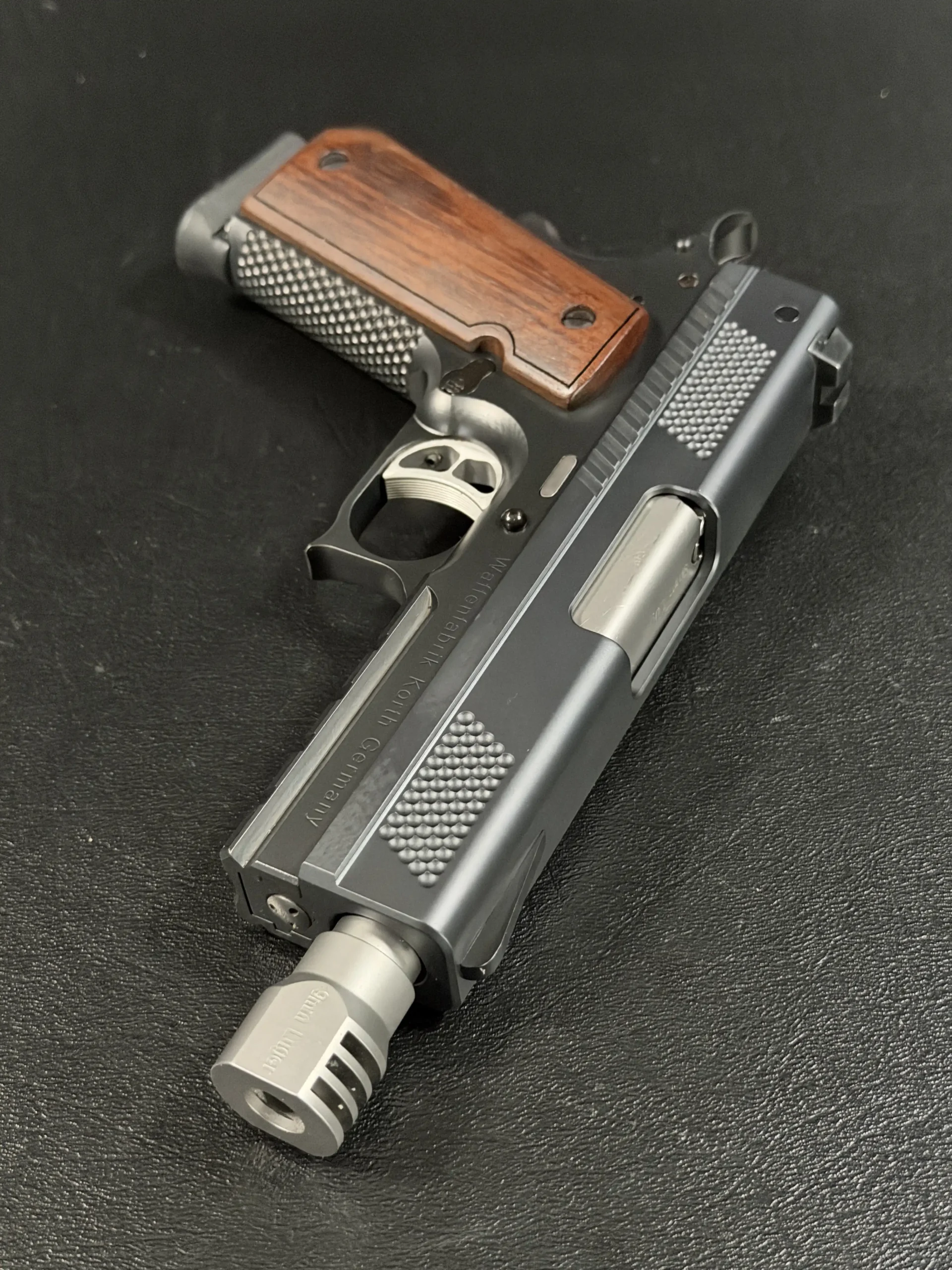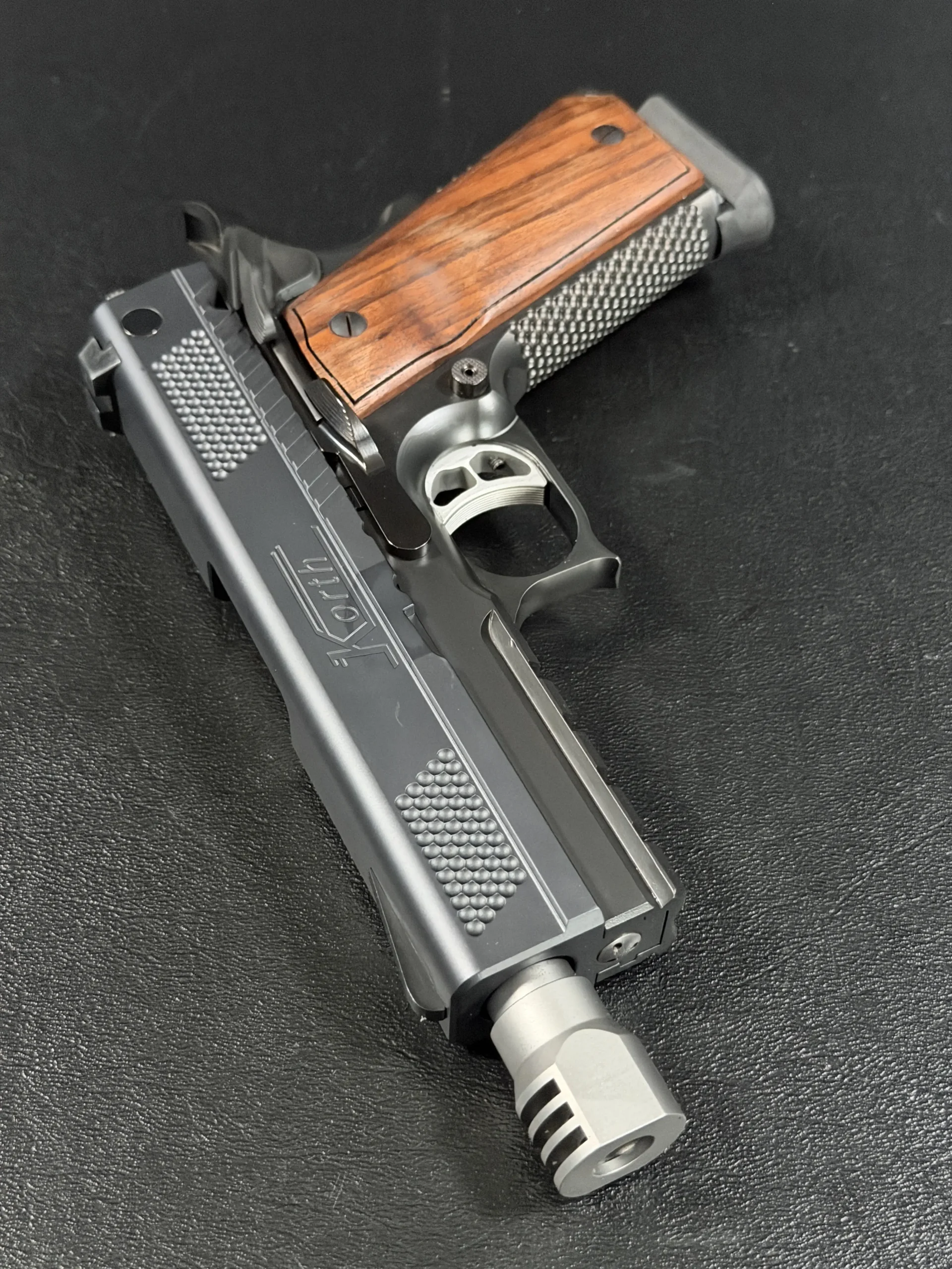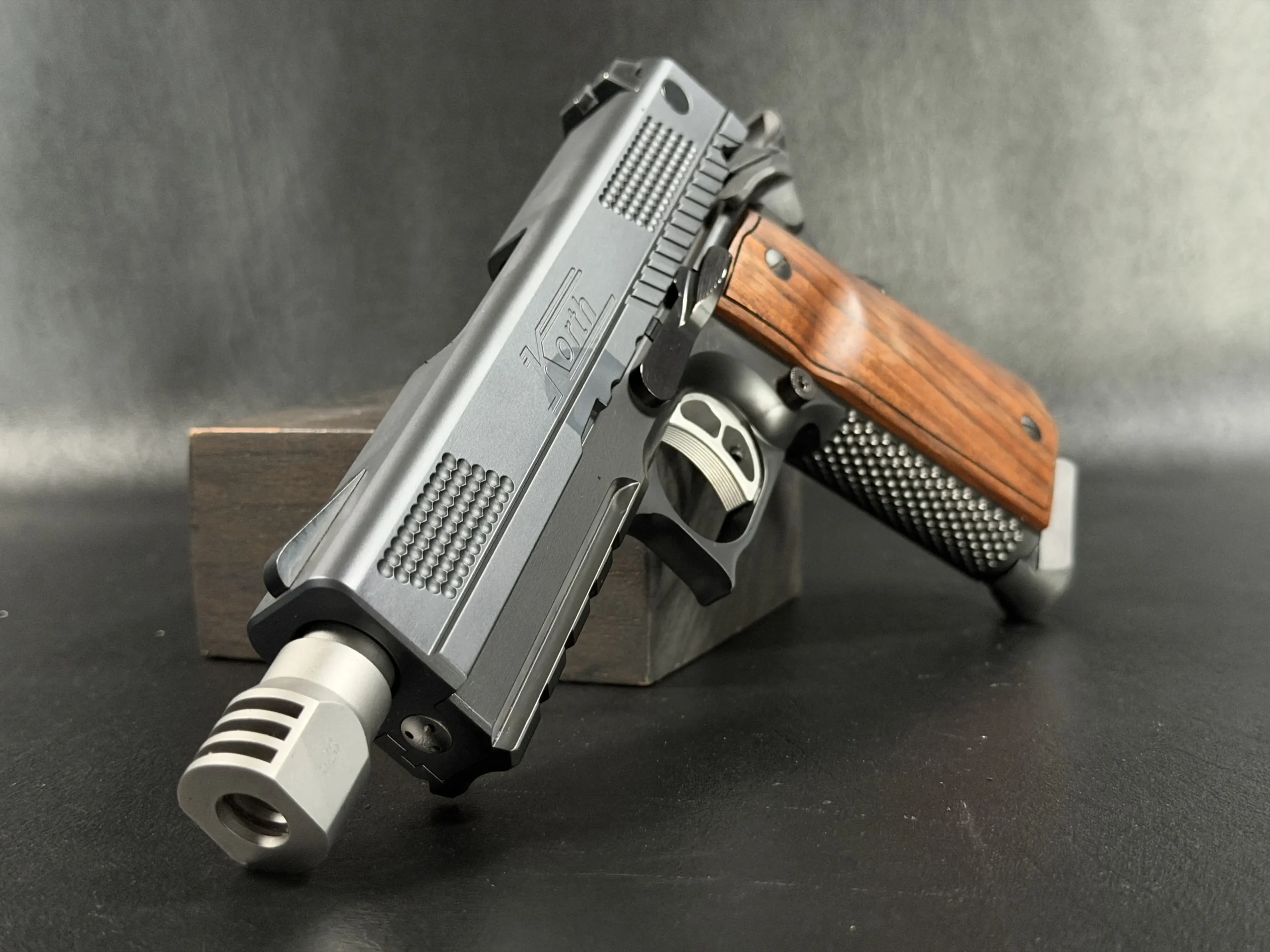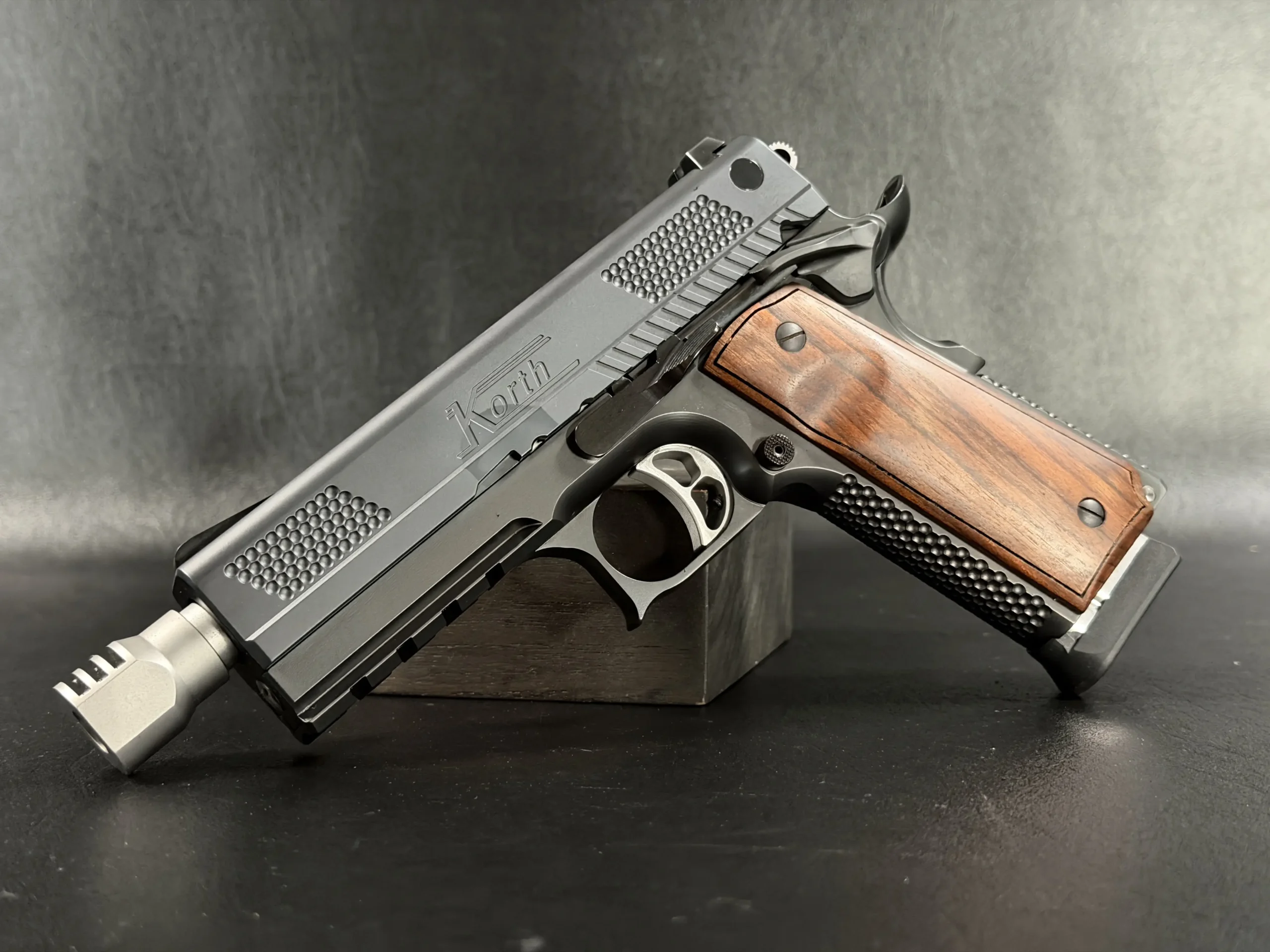 Chambered in 9mm, the PRS SD features Korth’s signature slide machining and texture work, complemented by the visual presence of the SD barrel assembly. The frame and slide are precisely fitted, with matching components throughout, reflecting the consistency and care present in the platform’s construction.