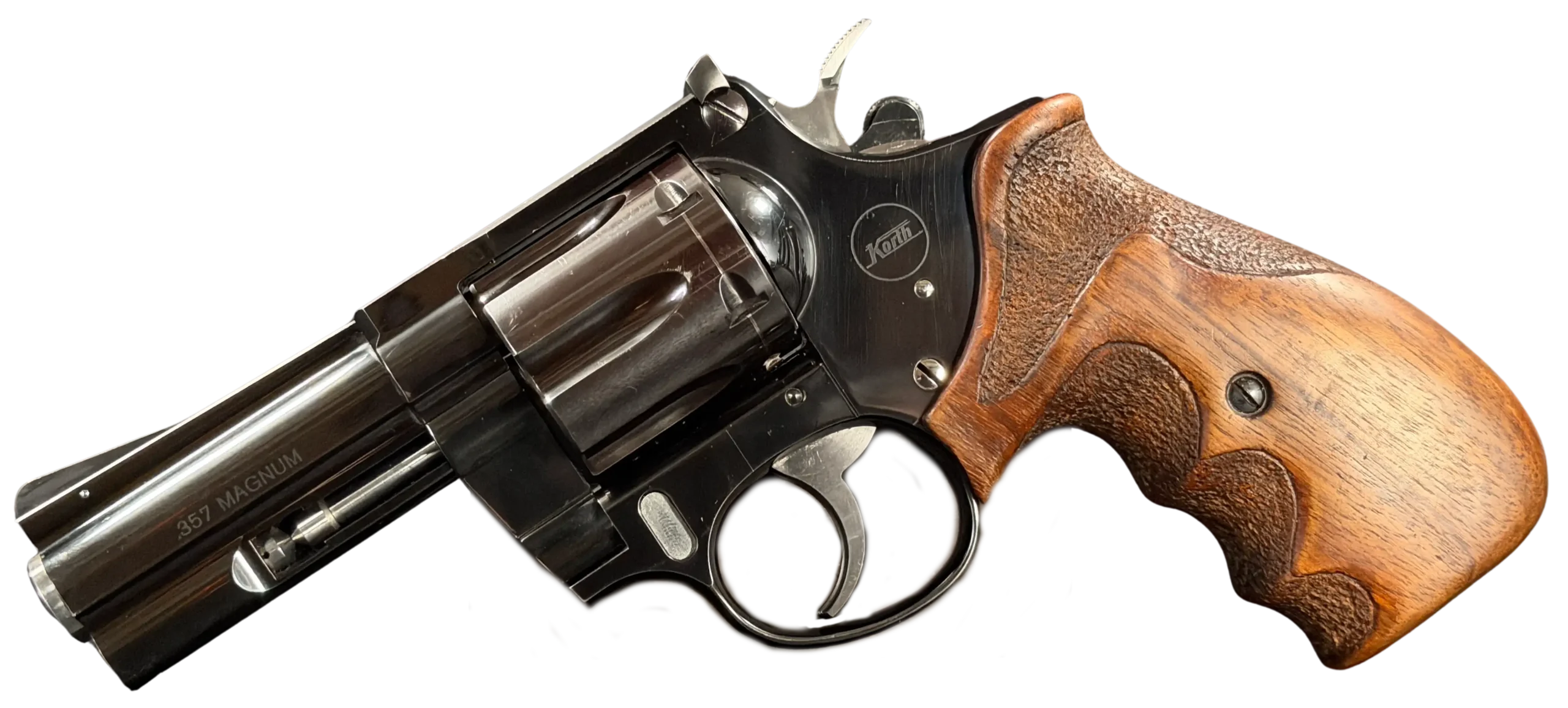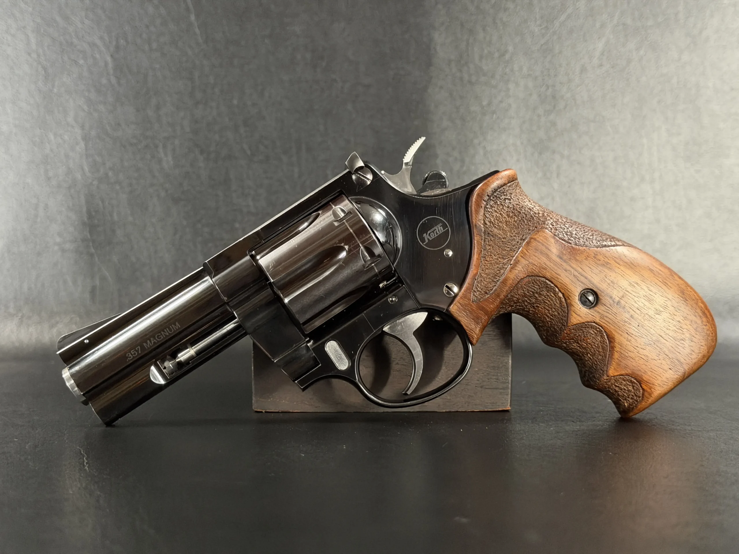 Korth Ratzeburg Combat revolver chambered in .357 Magnum with a 3 1/4-inch barrel. This compact configuration pairs refined handling with the precise mechanical character associated with Korth’s Ratzeburg production.