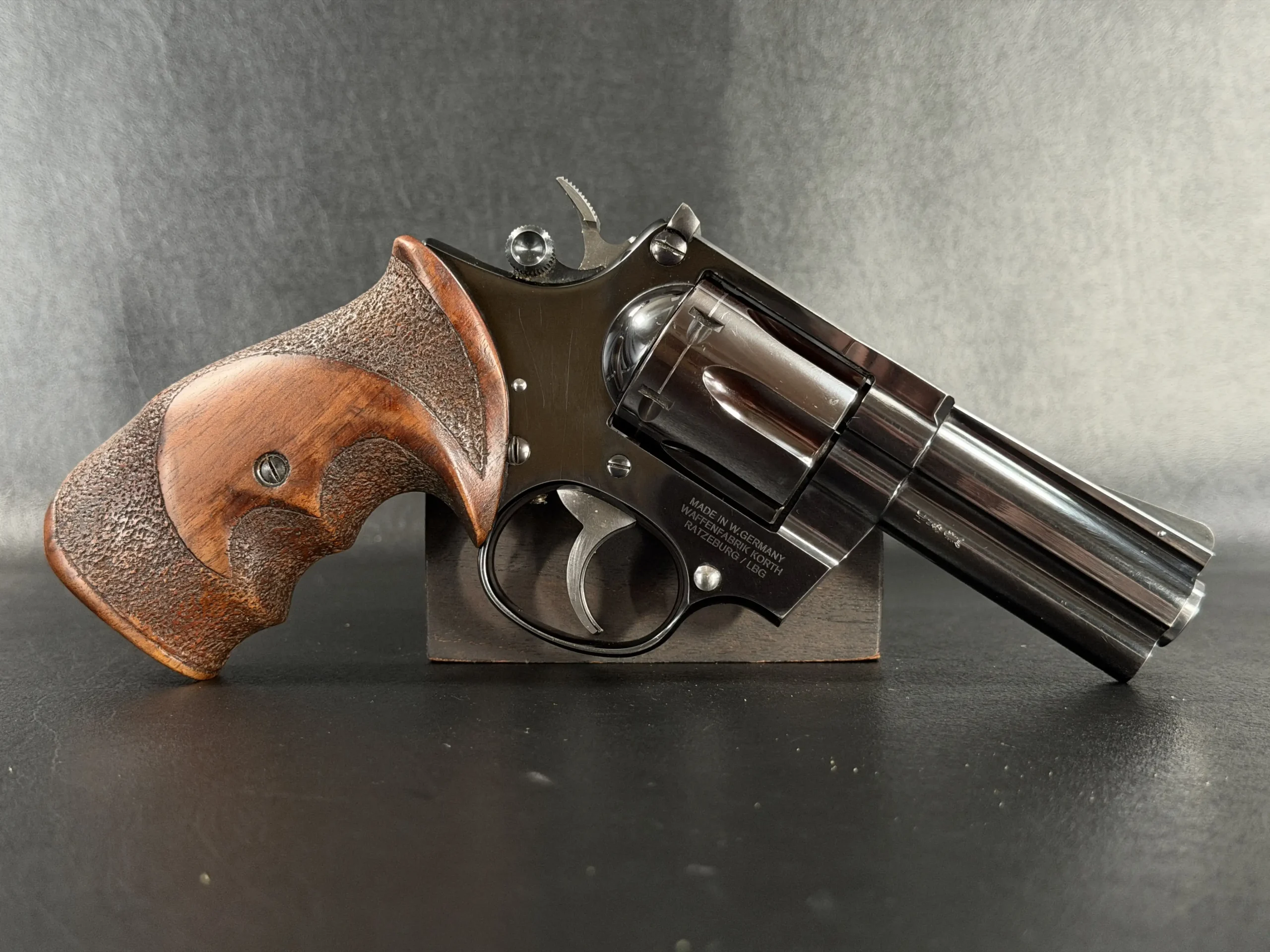 Additional Ratzeburg manufacture details and factory markings are noted in the original description. A distinctive and well-executed Korth Combat configuration for collectors and enthusiasts of fine German revolvers.