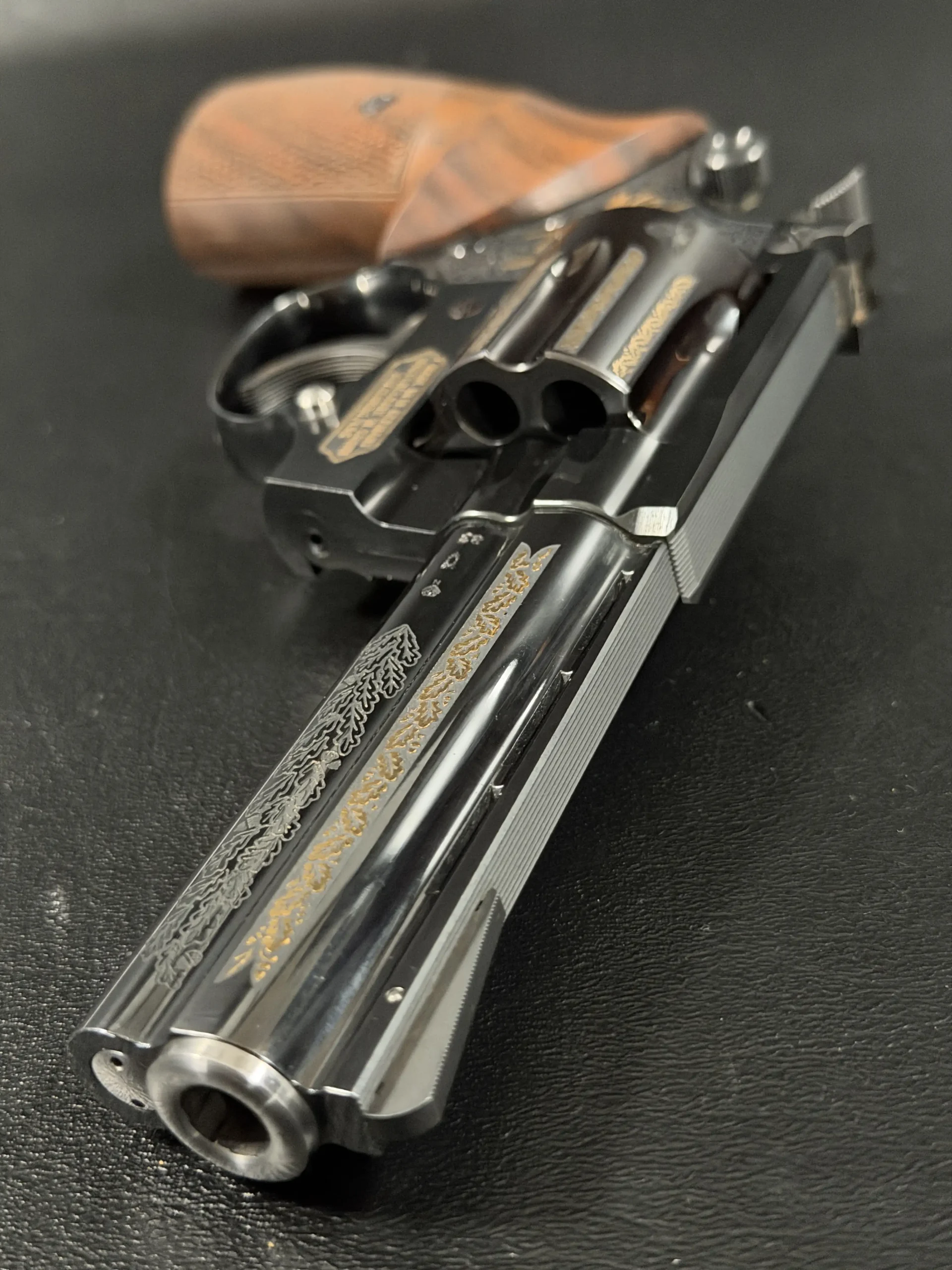 Combining Korth’s signature mechanical refinement with elaborate decorative treatment, this Ratzeburg Luxury revolver presents a striking blend of precision craftsmanship and classic European styling.