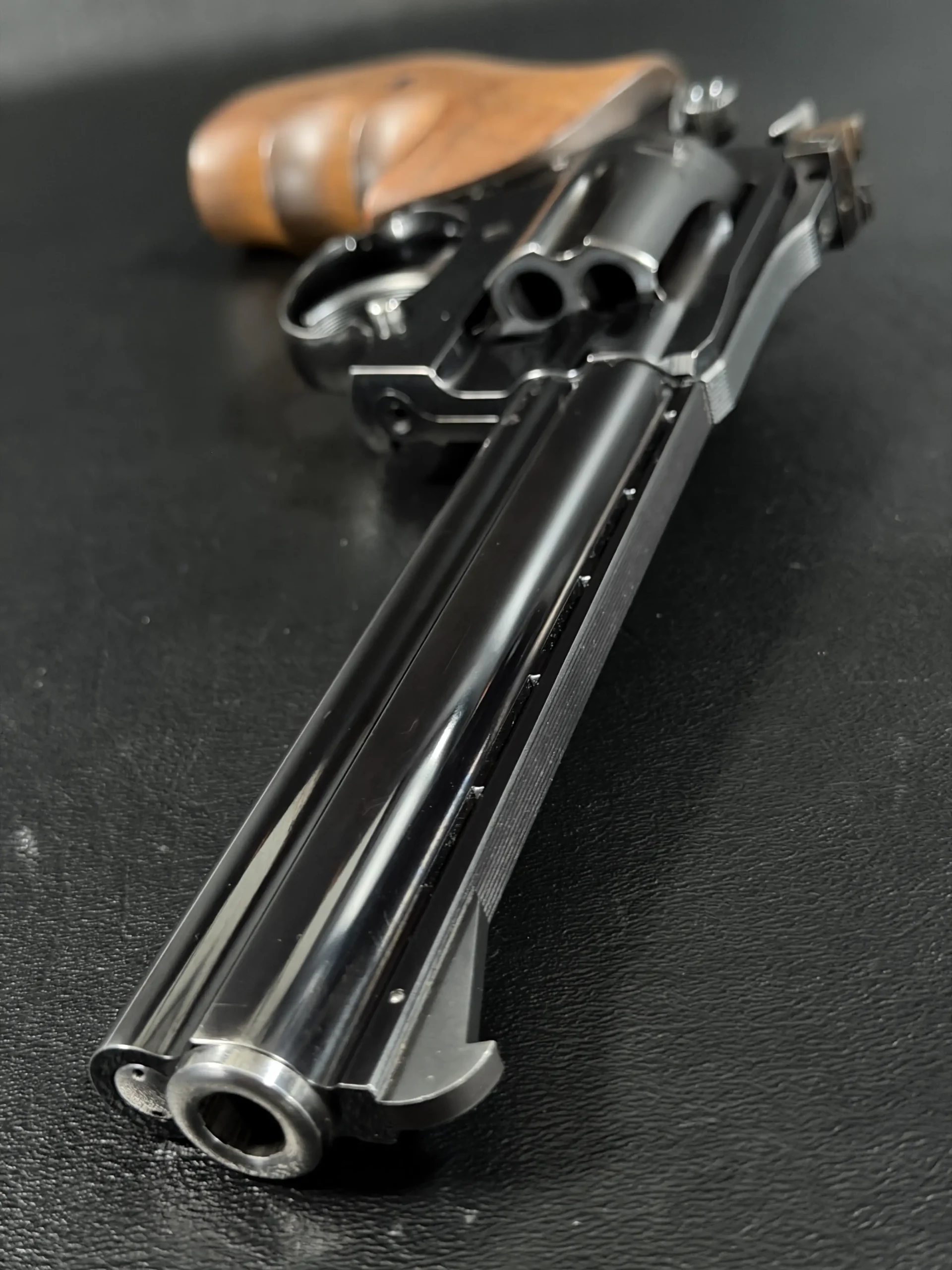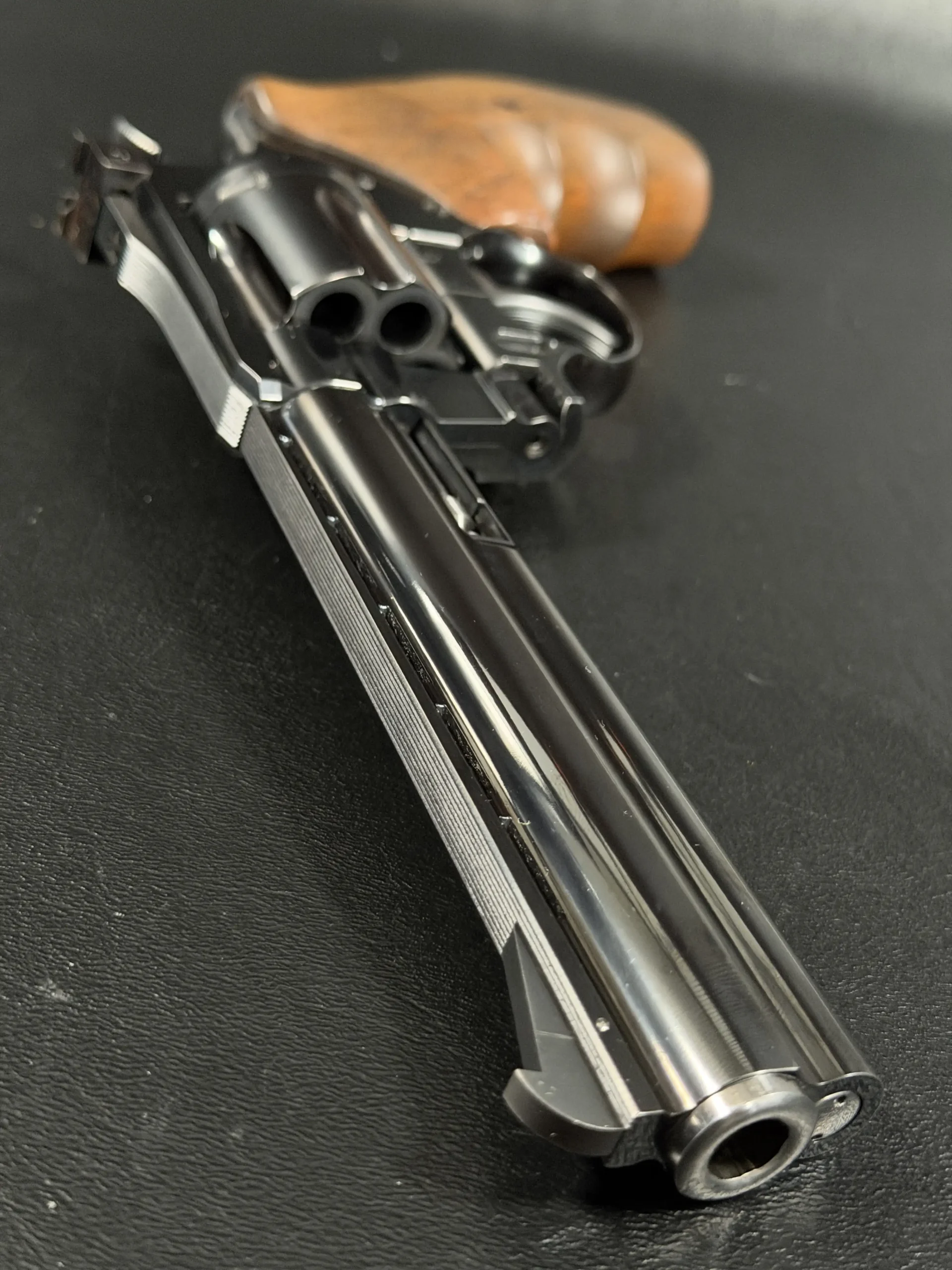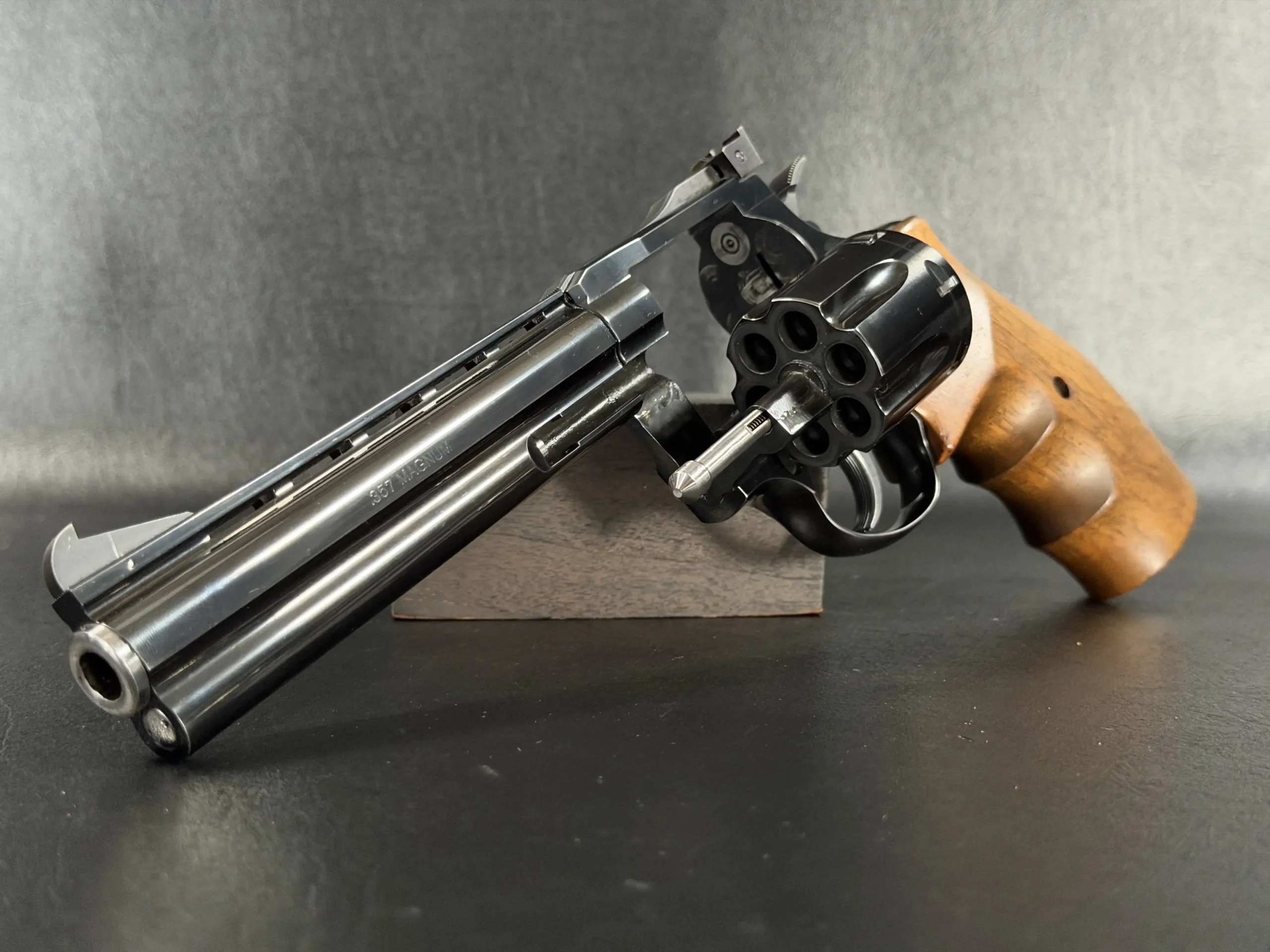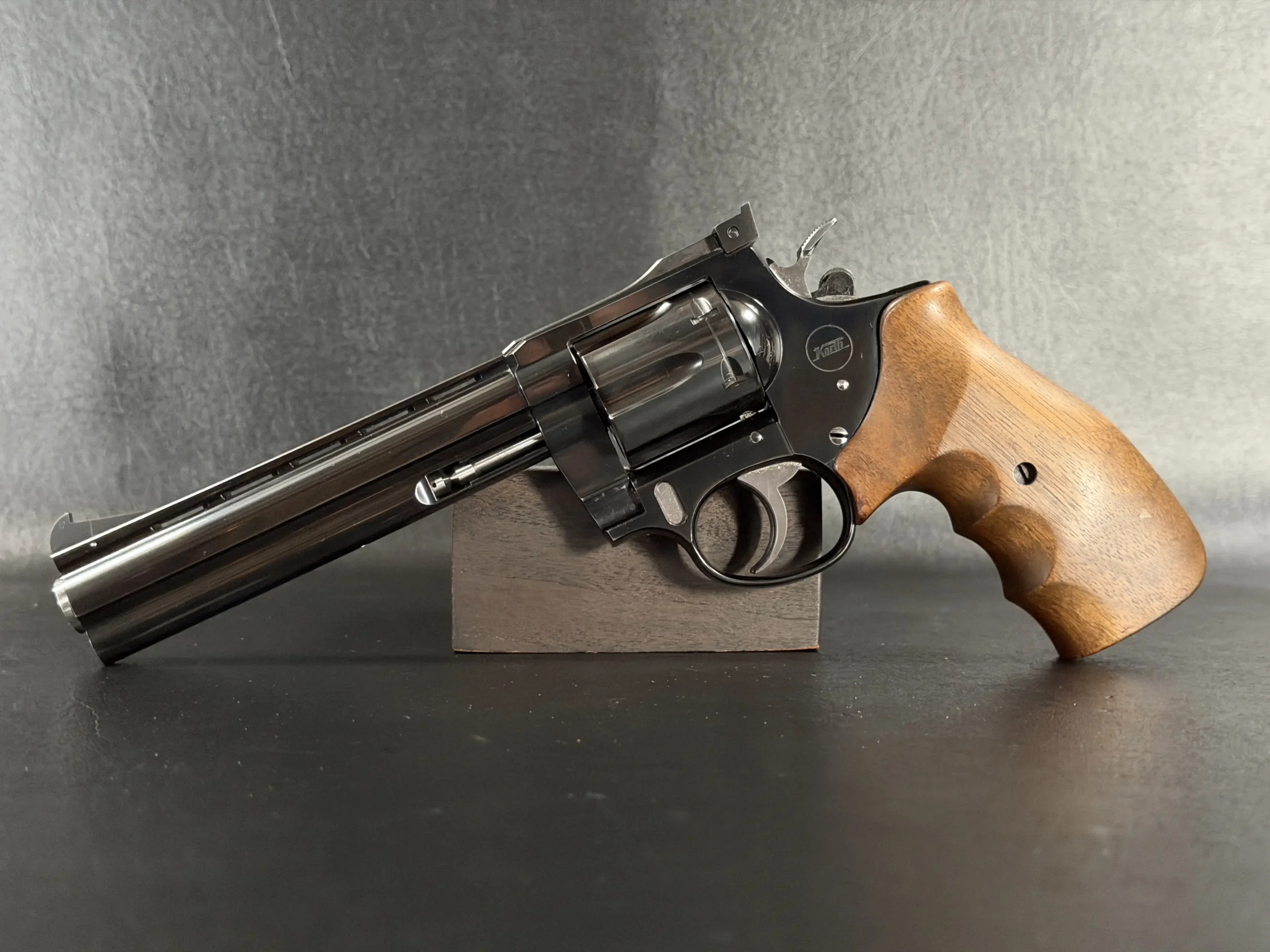 The Korth Ratzeburg Sport 6" Exchange Cylinder Set showcases the distinctive fit and finish associated with early Korth production. This revolver features a 6-inch barrel, a deep high-polish blue finish, and a factory exchange-cylinder configuration for use with both .357 Magnum and 9mm.
