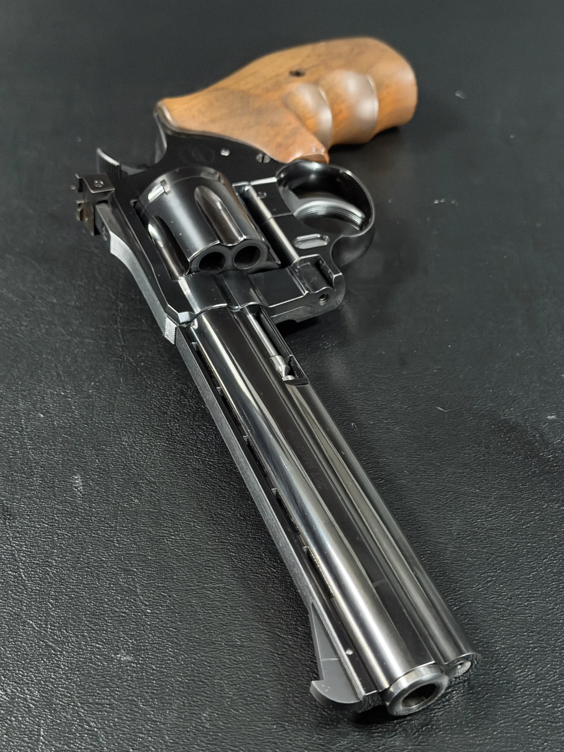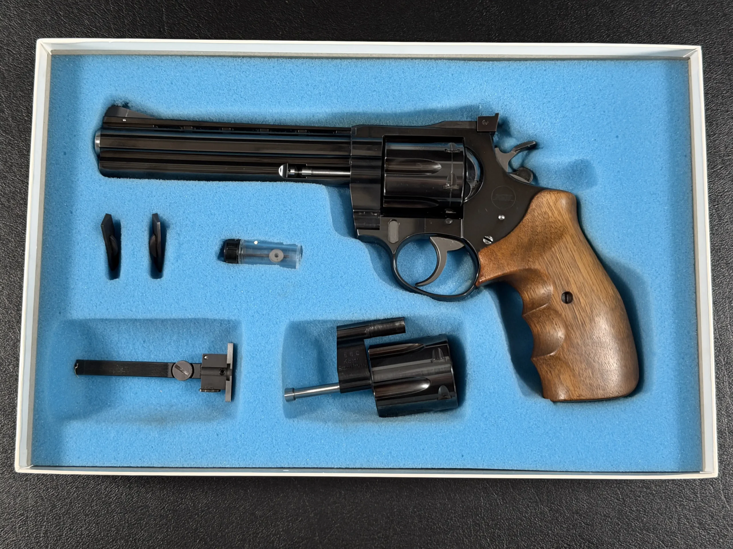 According to the provided information, all major components remain matching. This Ratzeburg Sport configuration combines the classic lines of the platform with the added versatility of its factory .357 Magnum and 9mm cylinder set.