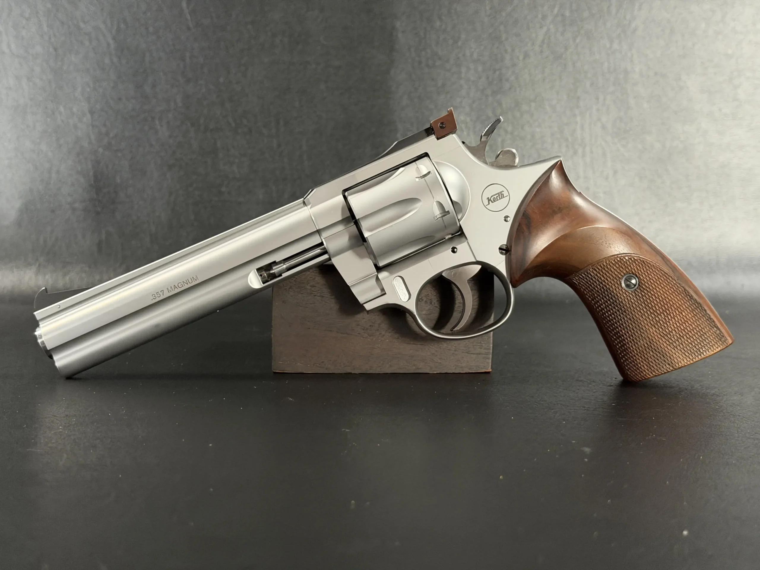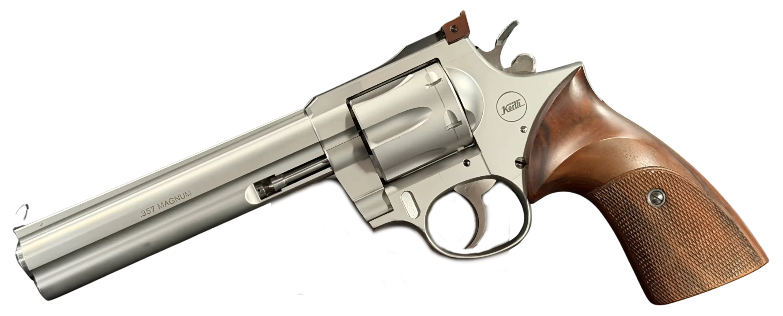 The Korth Ratzeburg Sport is a German-made revolver with the refined fit and finish that made these models so well regarded. This example features a 6-inch stainless barrel and is chambered in .357 Magnum, combining a classic sporting configuration with clean, purposeful styling.