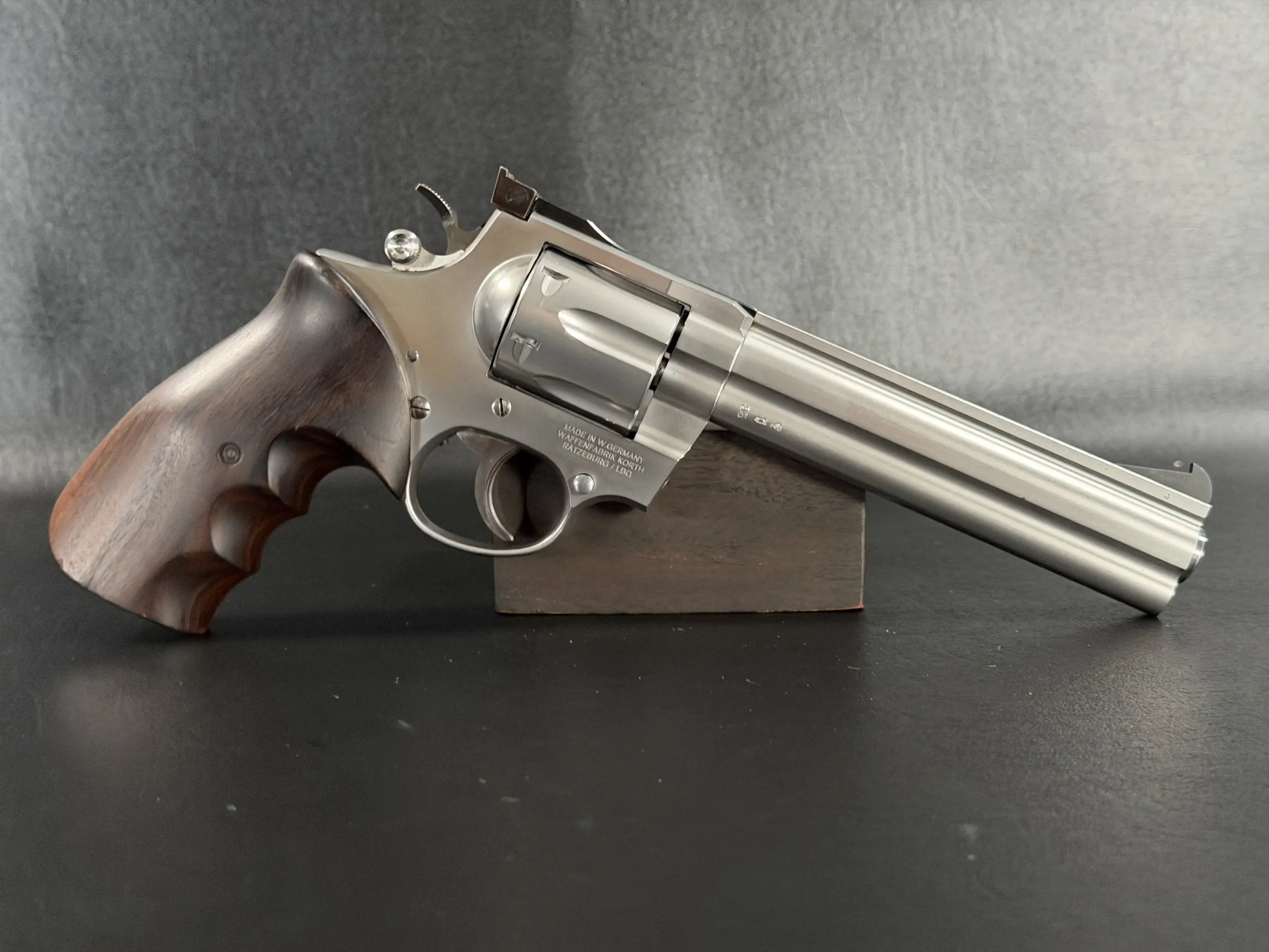 The Korth Ratzeburg Sport Stainless is a .357 Magnum revolver from Korth’s Ratzeburg production era, combining precise construction with the distinct presence associated with these sought-after models.