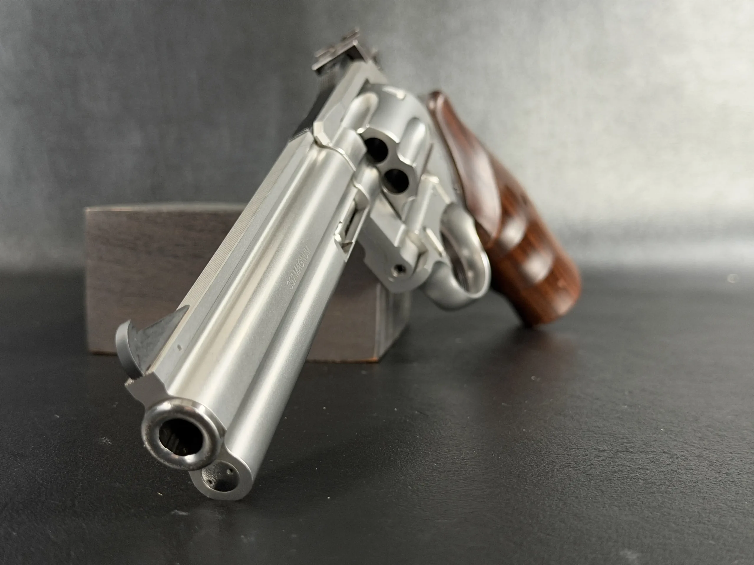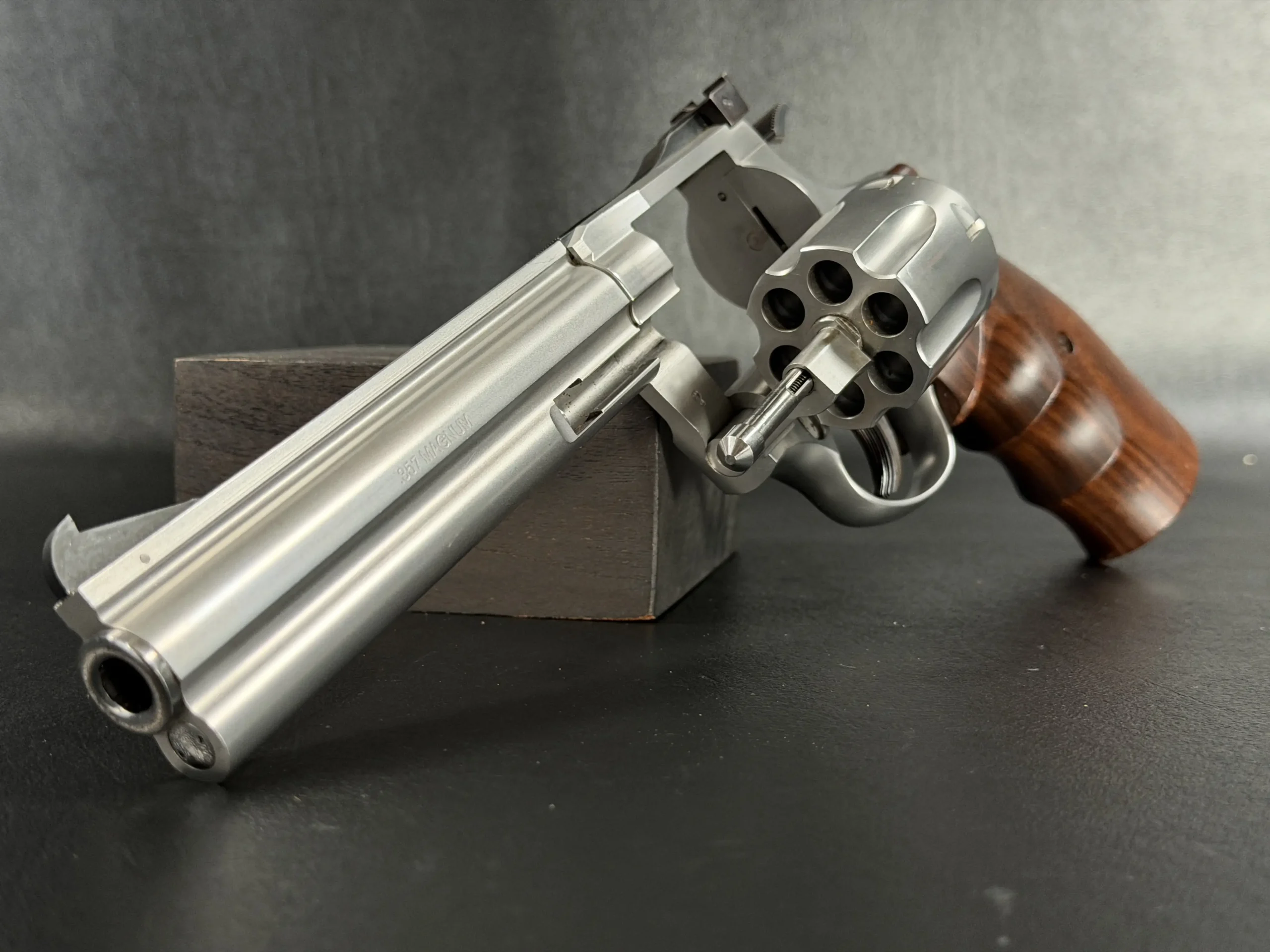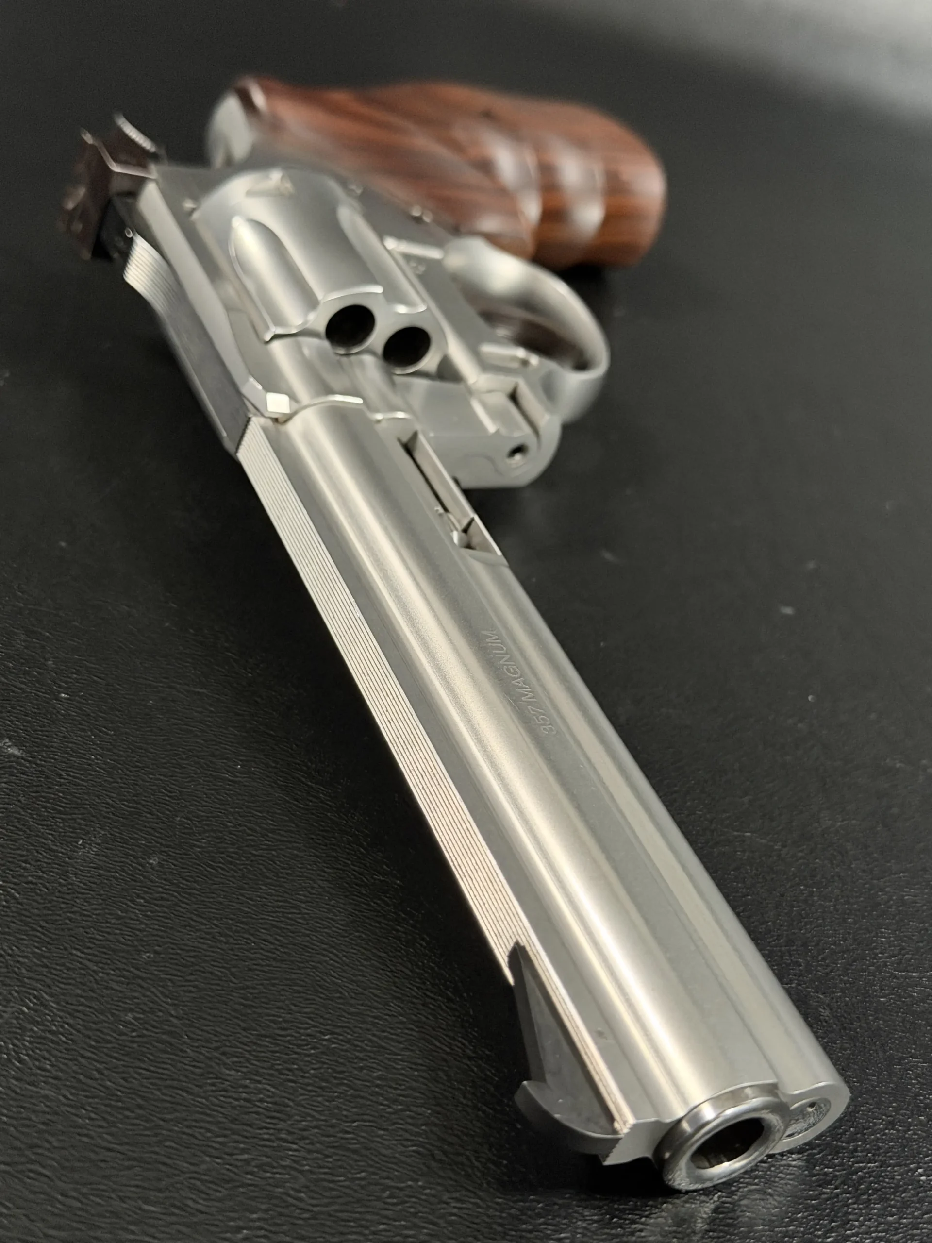 Chambered in .357 Magnum, it also accepts .38 Special cartridges for added versatility. The grip shape is designed to provide confident control in double-action shooting while remaining comfortable for deliberate single-action work.