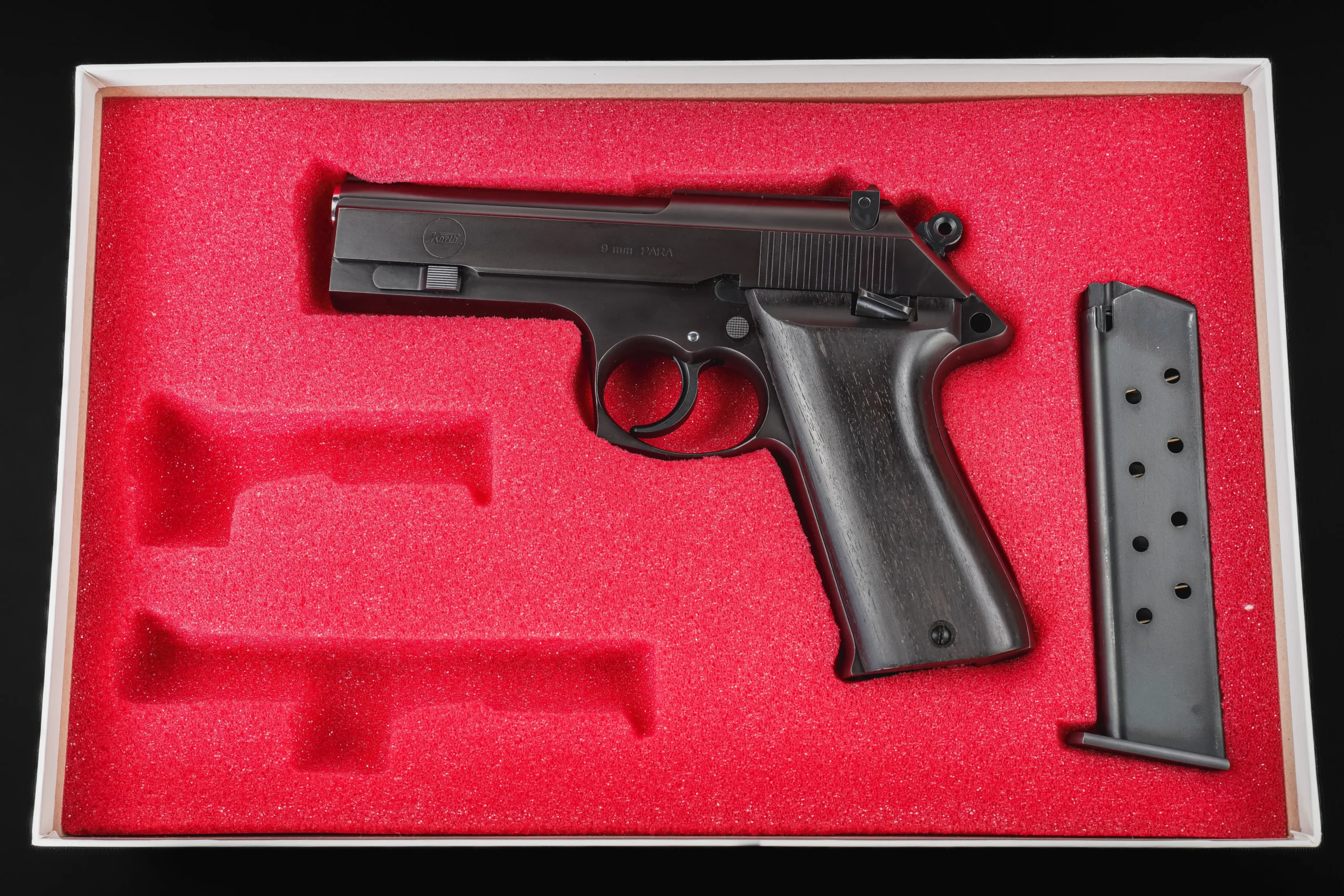 The Korth Semi-Automatic 9mm First Run Edition captures the earliest production of Korth’s semi-automatic platform in a distinctive Black Plasma finish. The treatment gives the pistol a deep charcoal appearance with subtle tonal depth under changing light, setting it apart with a refined, modern look.