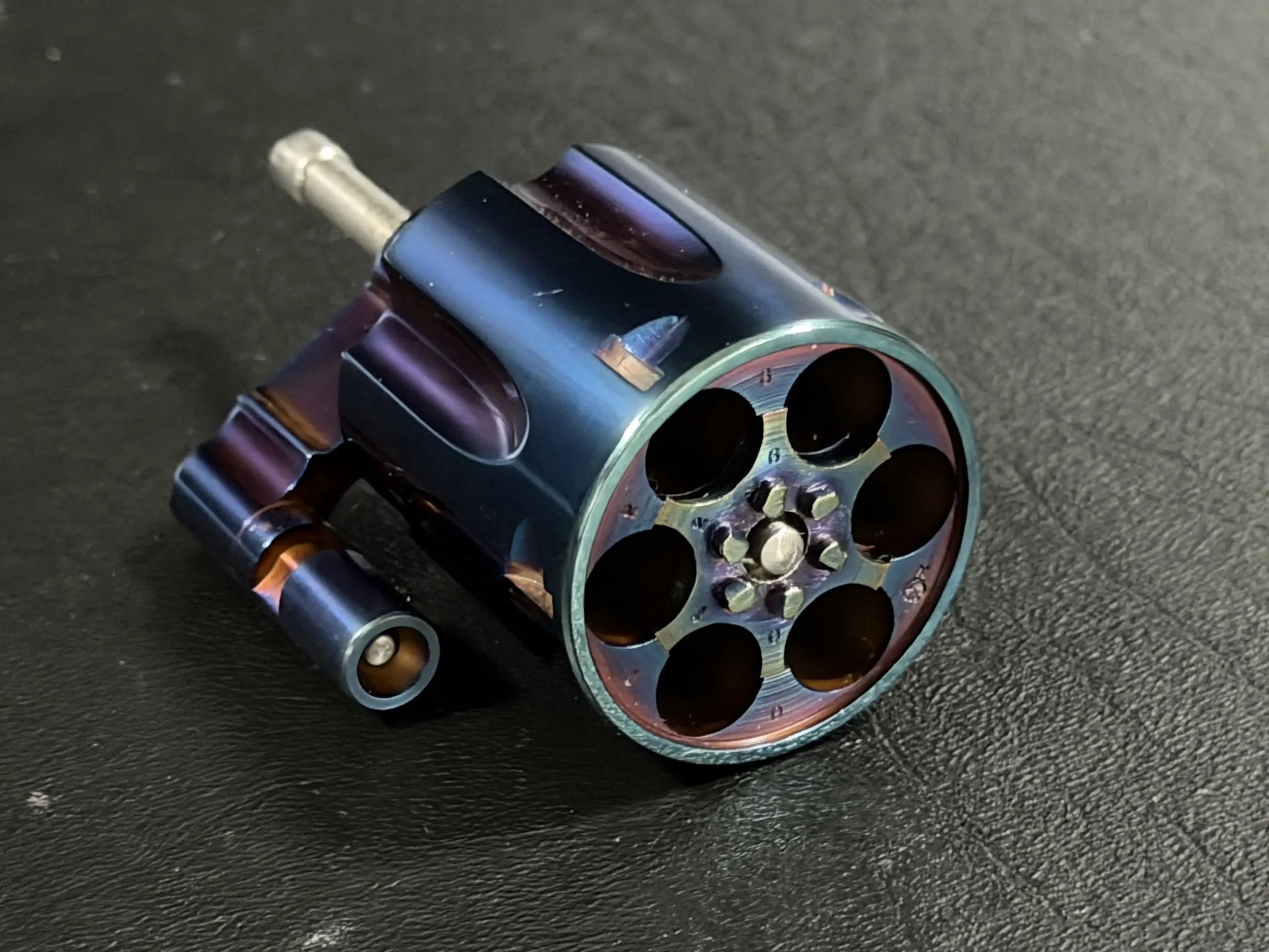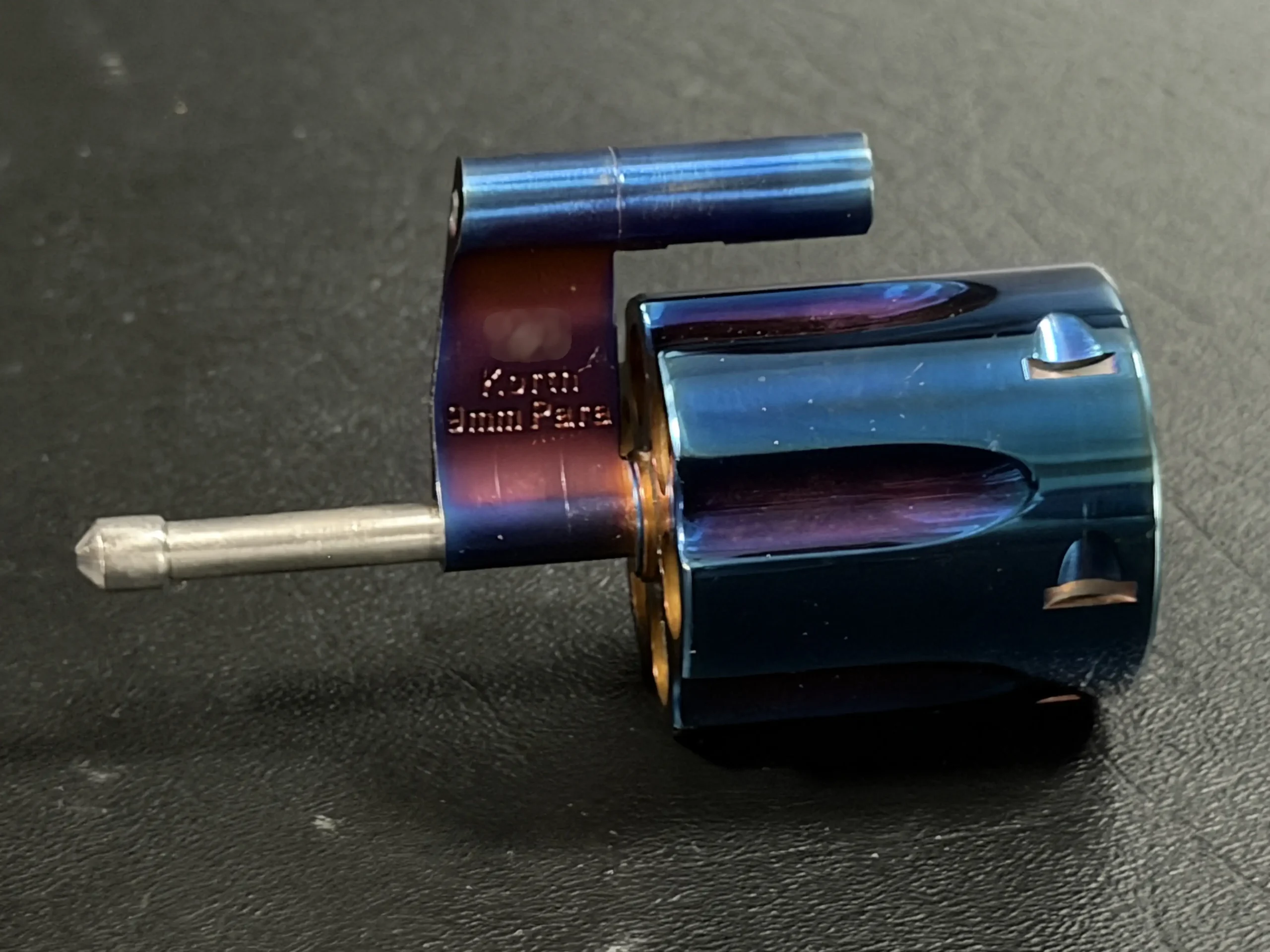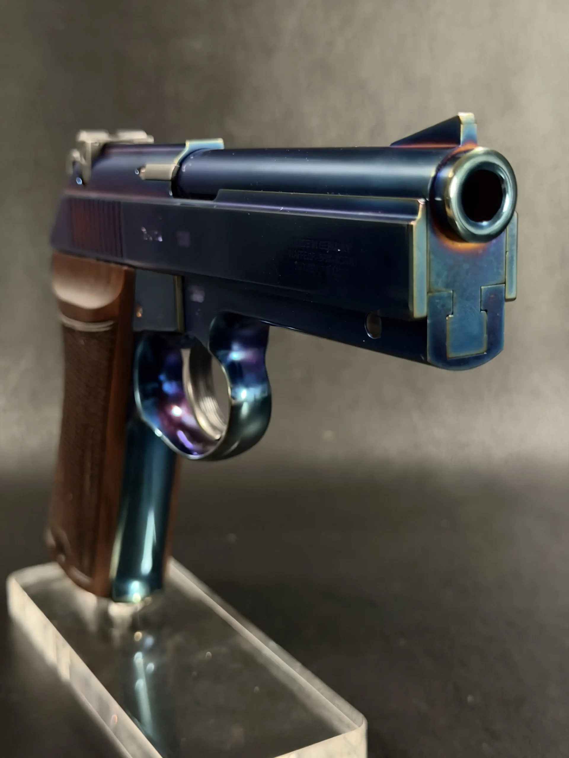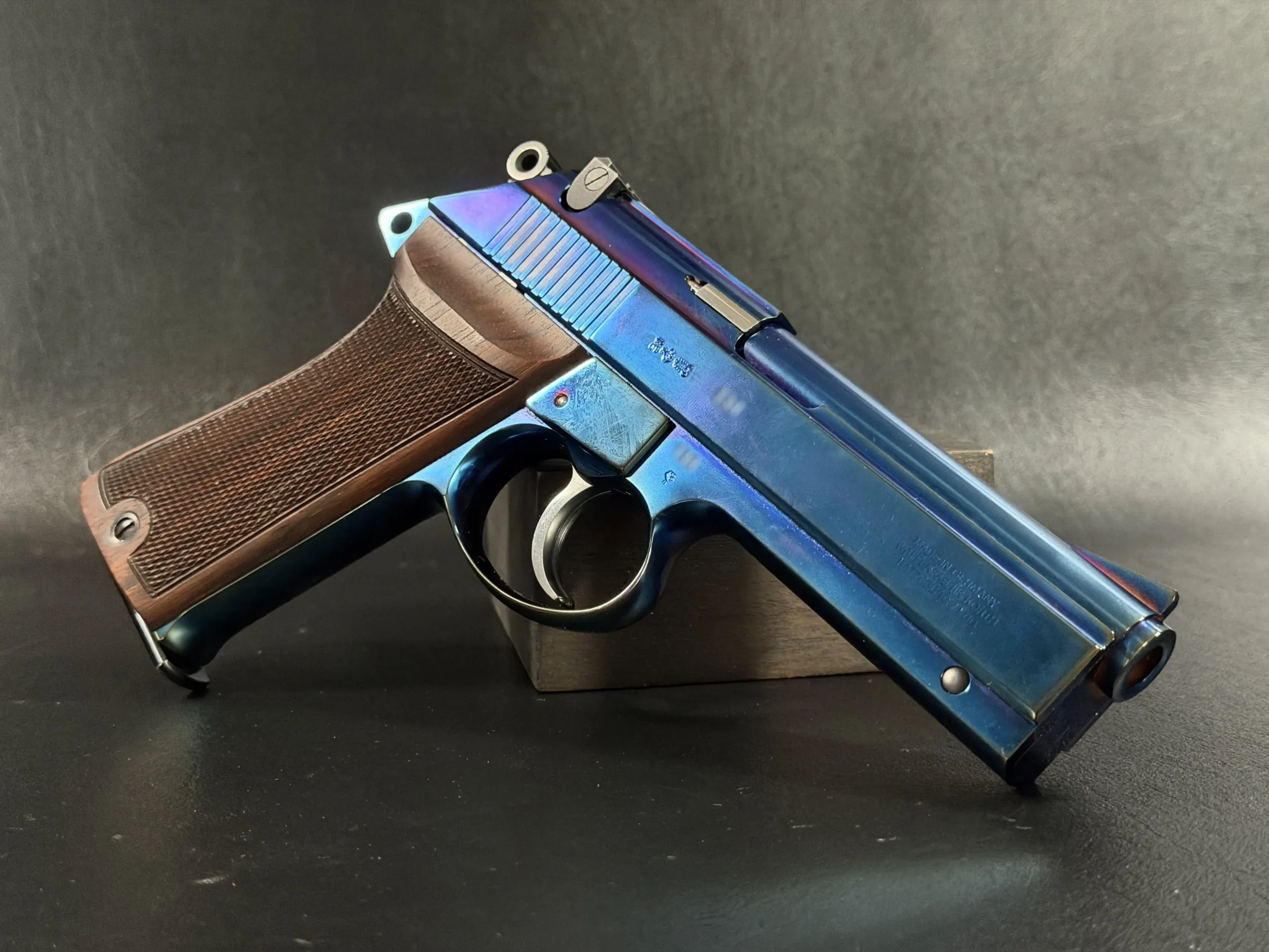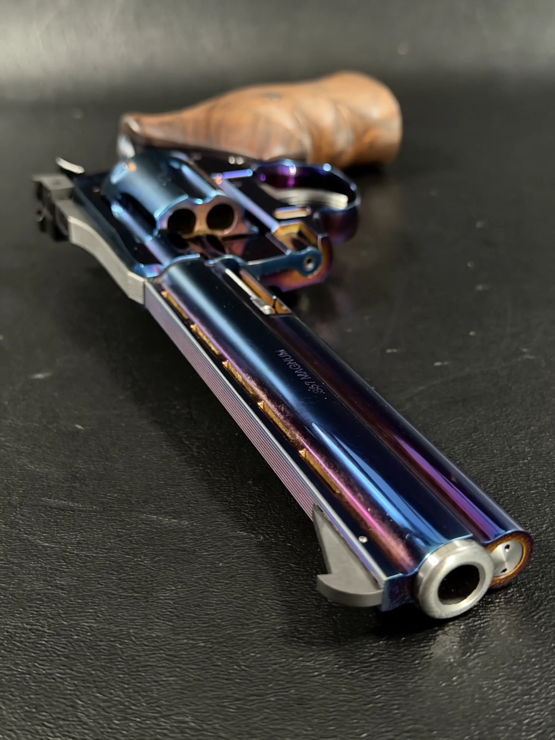 This matched Korth set pairs a 9mm semi-automatic pistol with a .357 Magnum revolver, both finished in Korth’s Blue Plasma treatment. The finish presents a deep, color-shifting appearance with tones of sapphire, violet, and steel, giving the two firearms a cohesive and highly distinctive look.