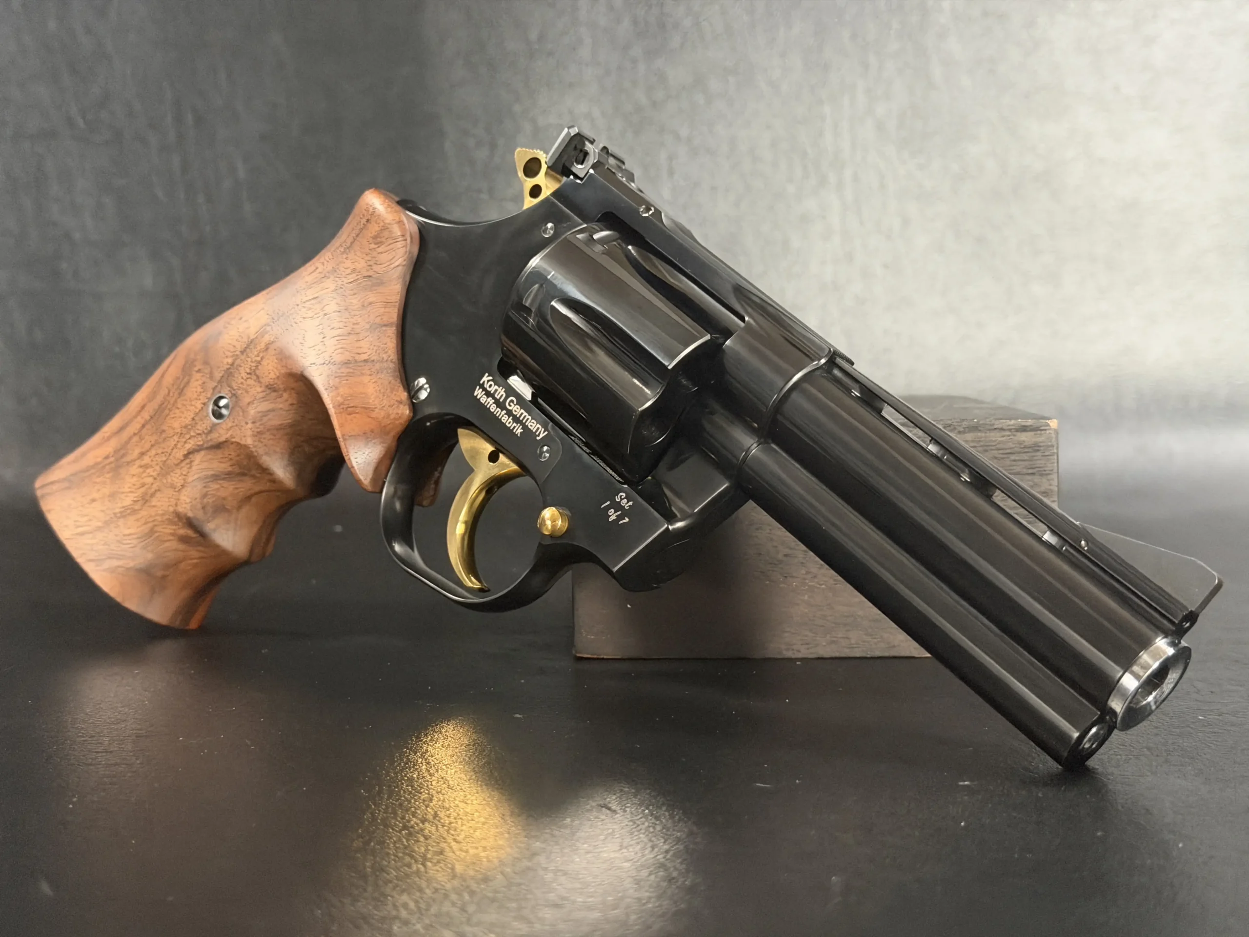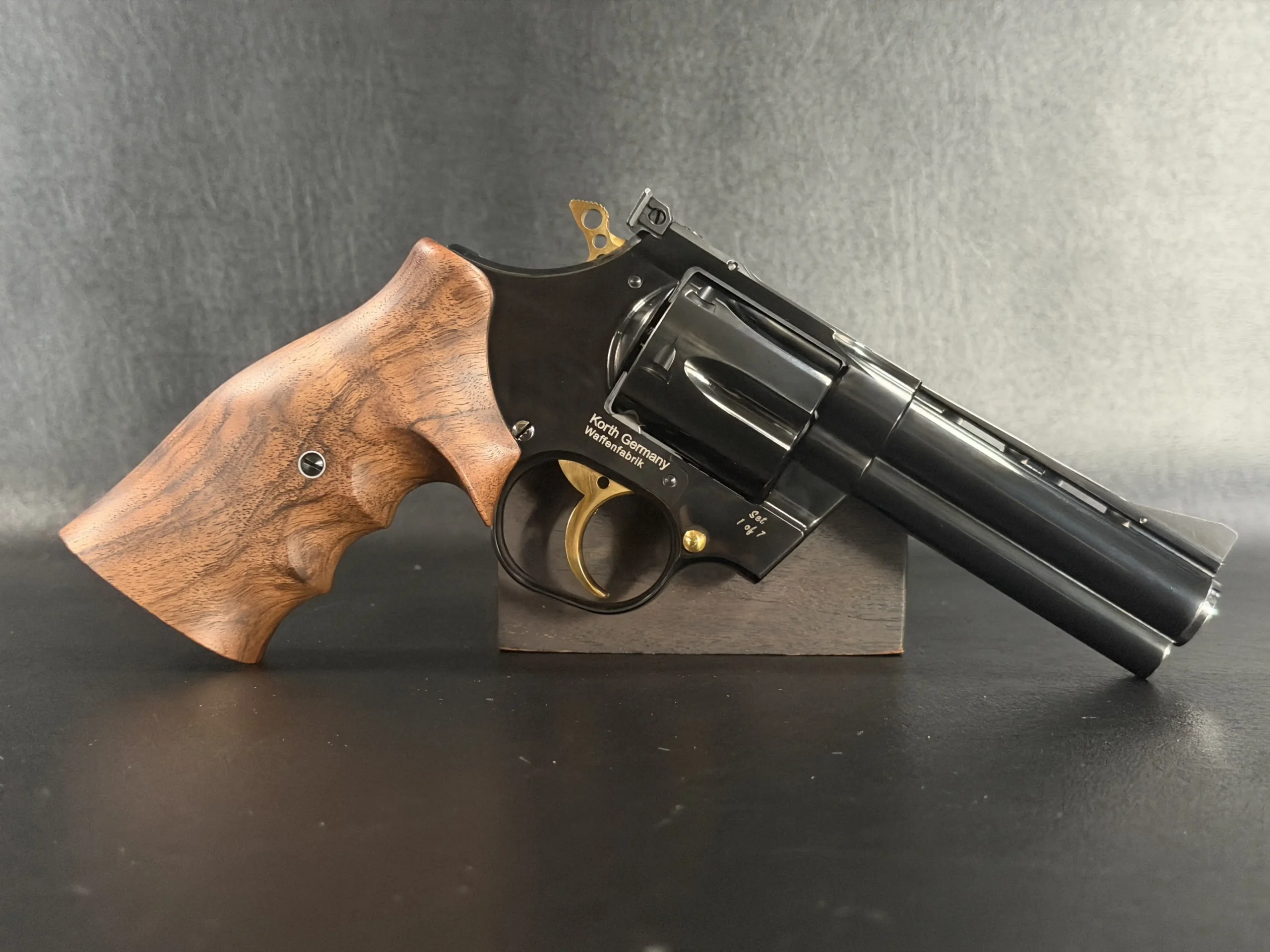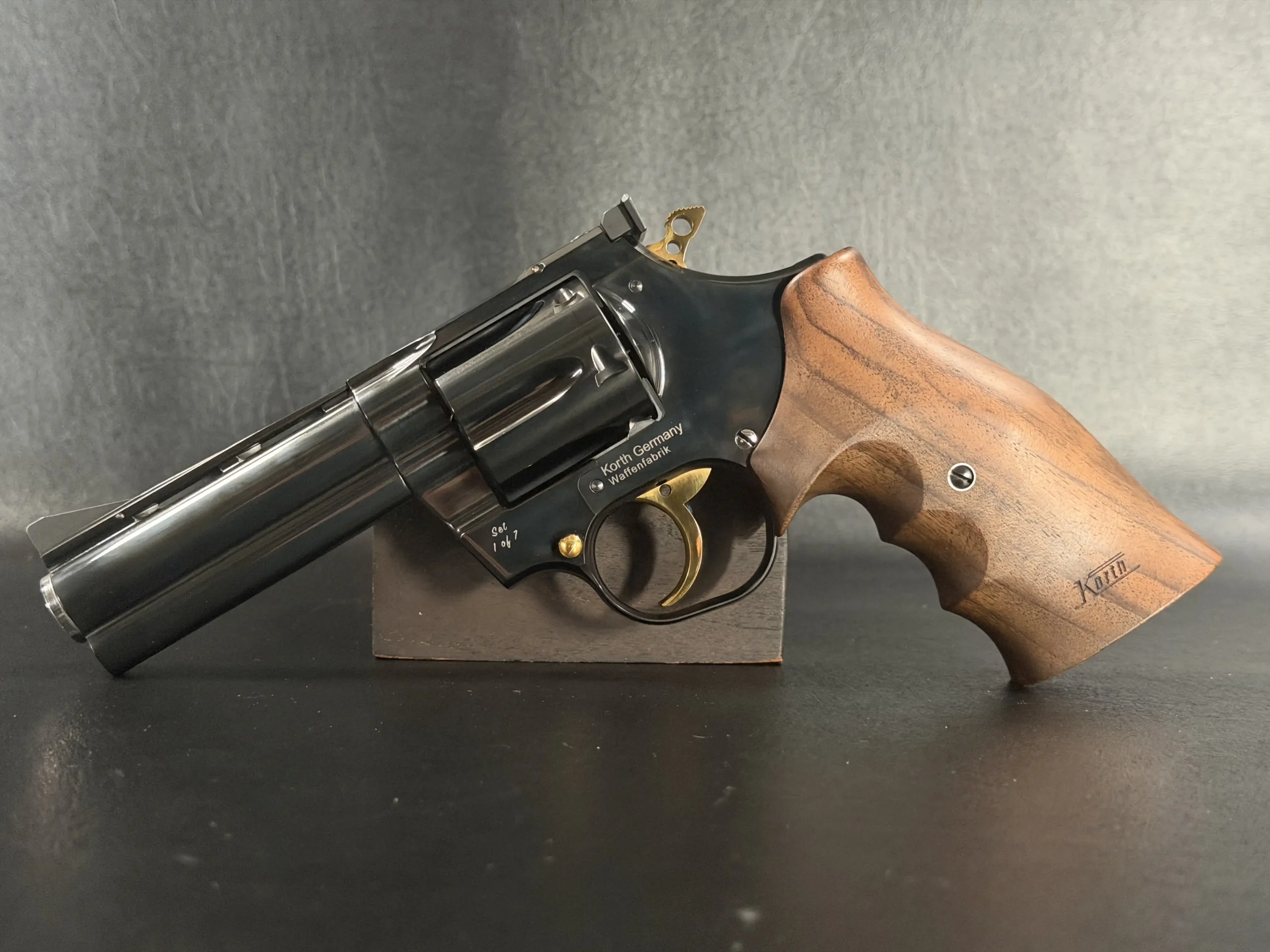 The set is housed in a fitted wood presentation case lined to display both revolvers securely. For collectors drawn to Korth craftsmanship and special exhibition pieces, the “Twins” Set offers a distinctive paired presentation with strong visual presence.