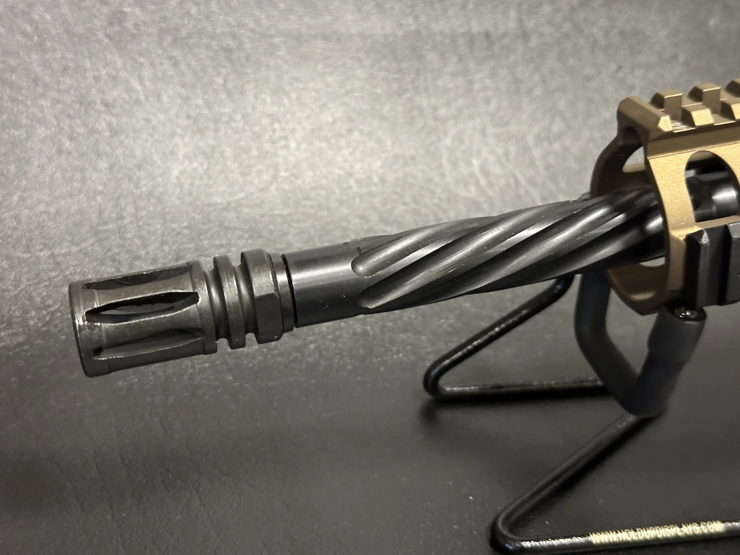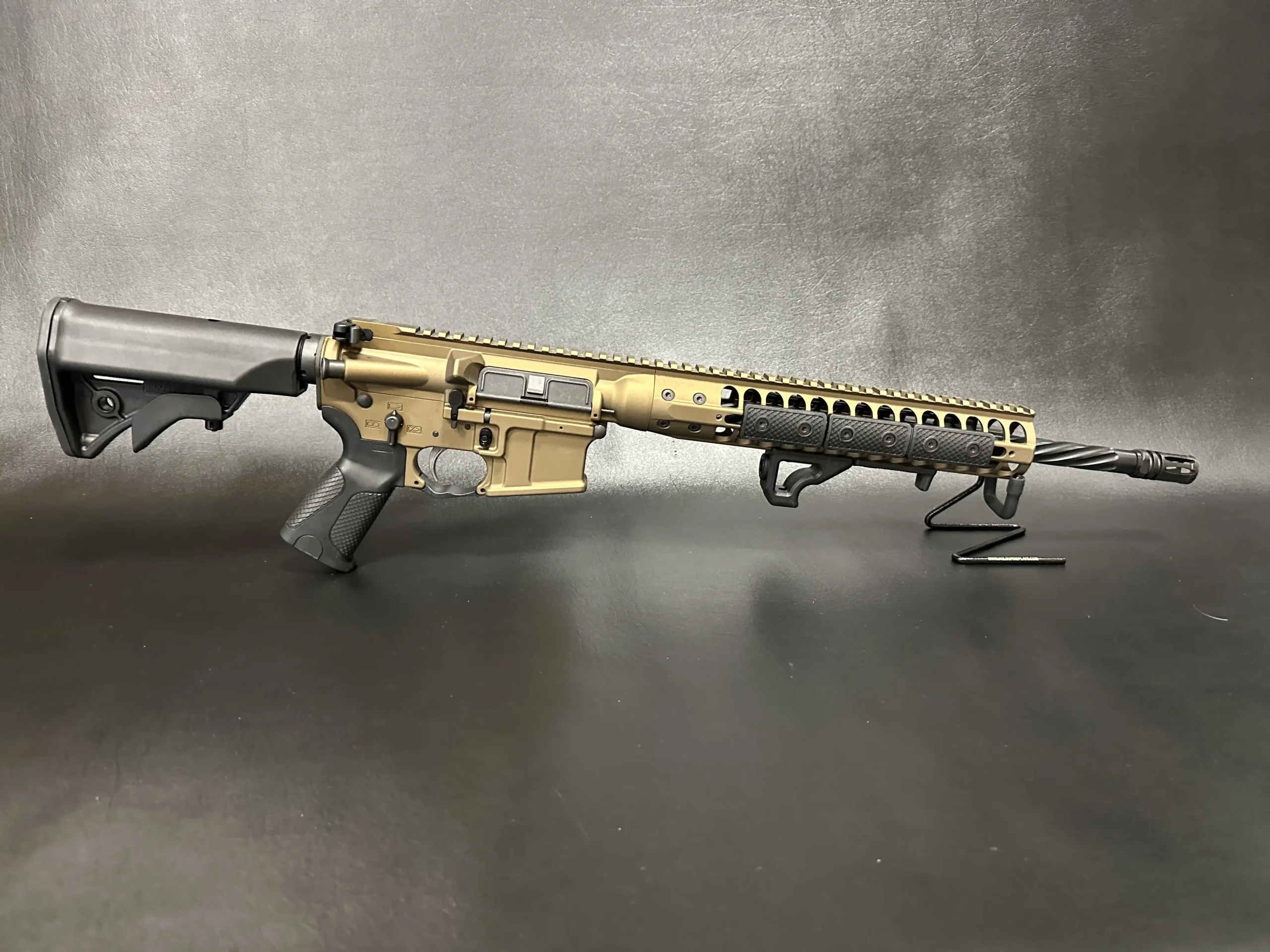 This rifle features a 16.1" spiral-fluted barrel and a free-float modular handguard with ventilated construction. Textured rail panels and an angled foregrip add control and handling, while the overall layout keeps the profile streamlined and functional.