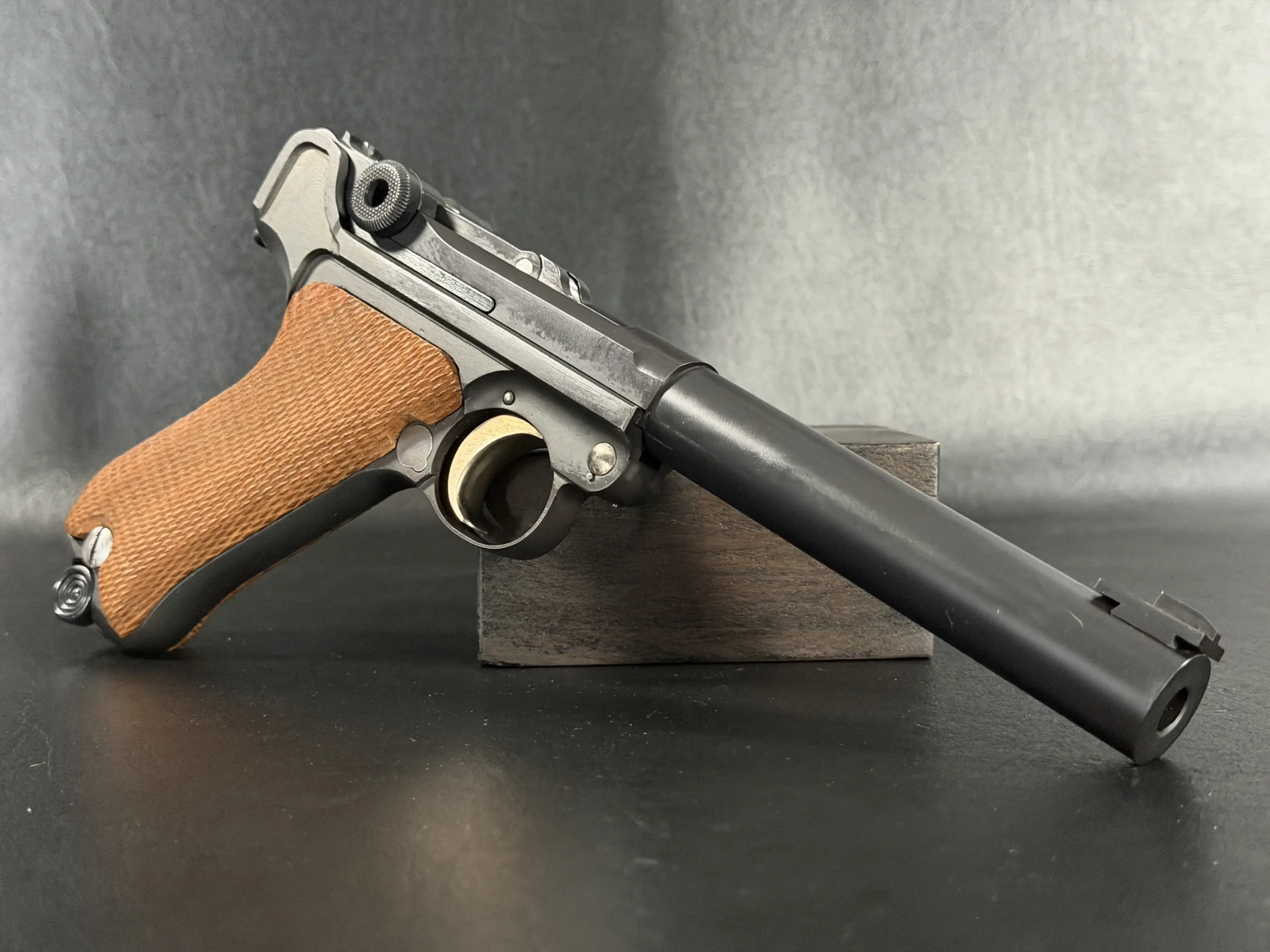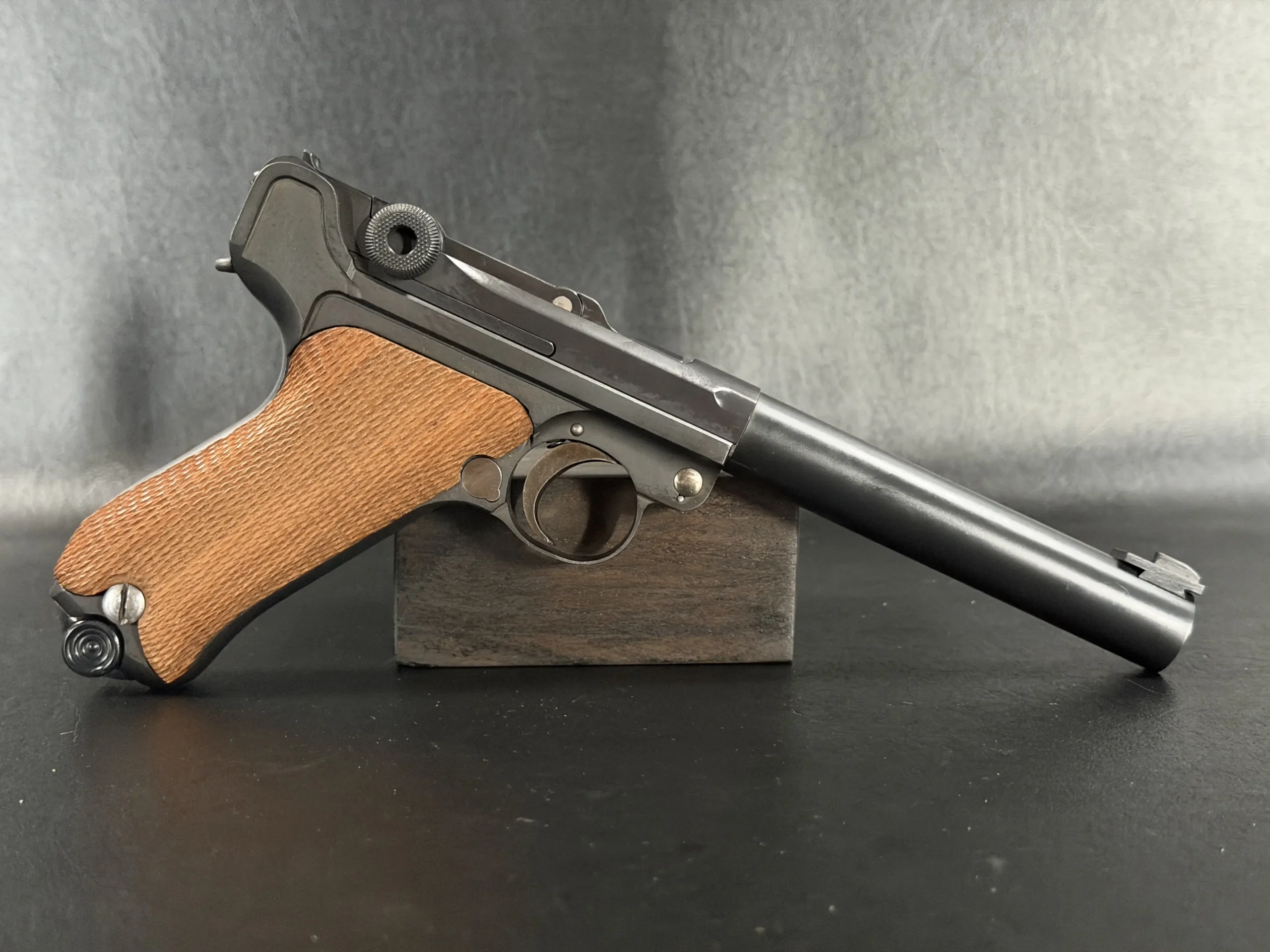 The Mauser Parabellum Sport is a target-oriented variation of the classic Luger pattern, chambered in 9mm and built around the distinctive design language that defines the Parabellum line. Its presentation combines historic mechanical character with a sport-focused configuration that sets it apart from military-style examples.
