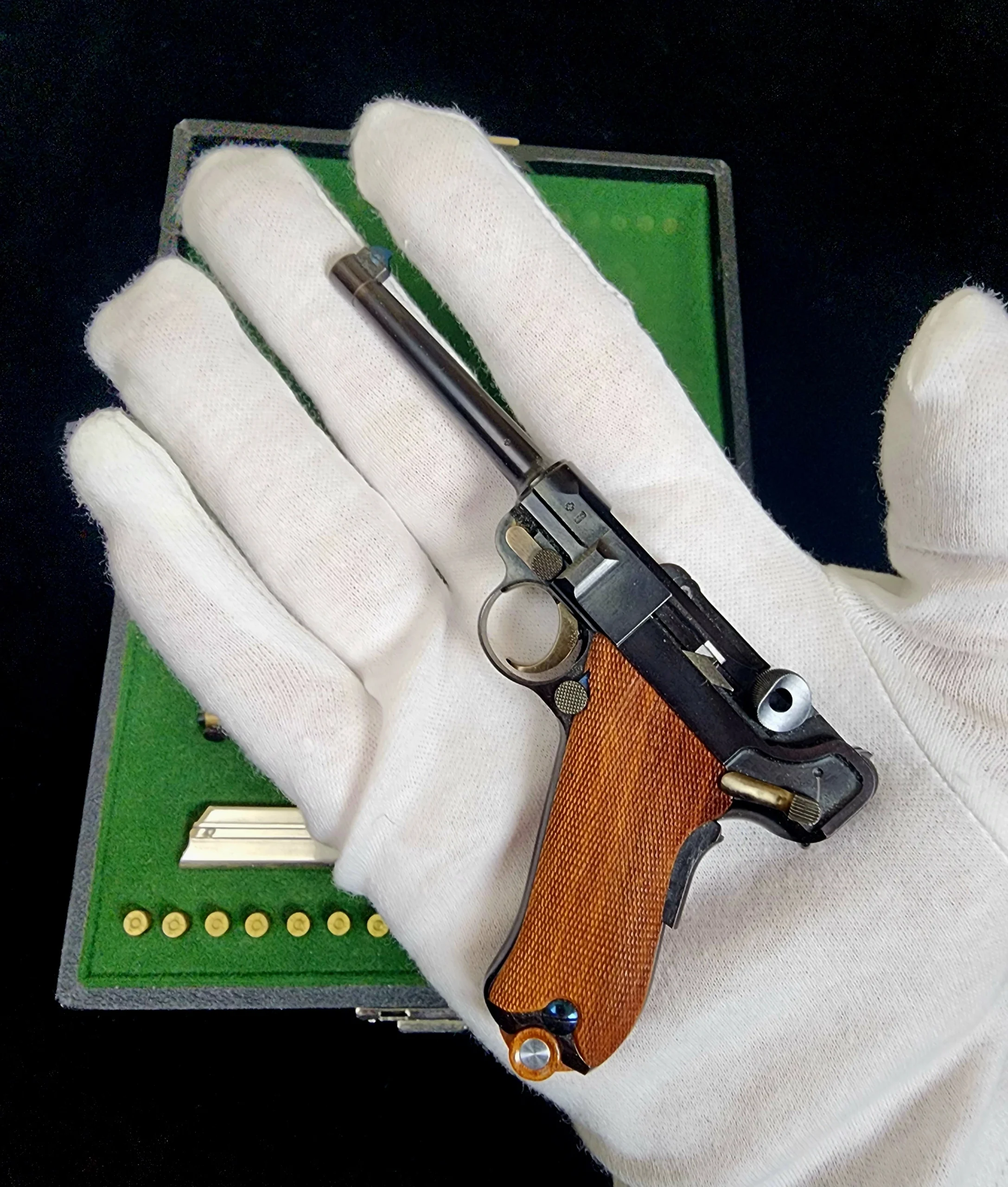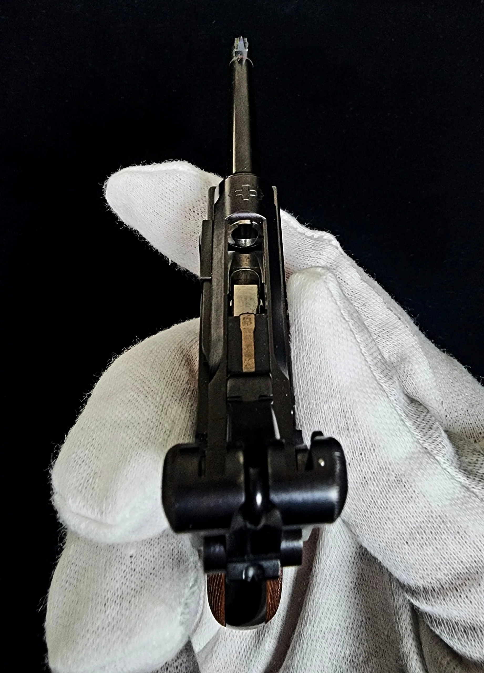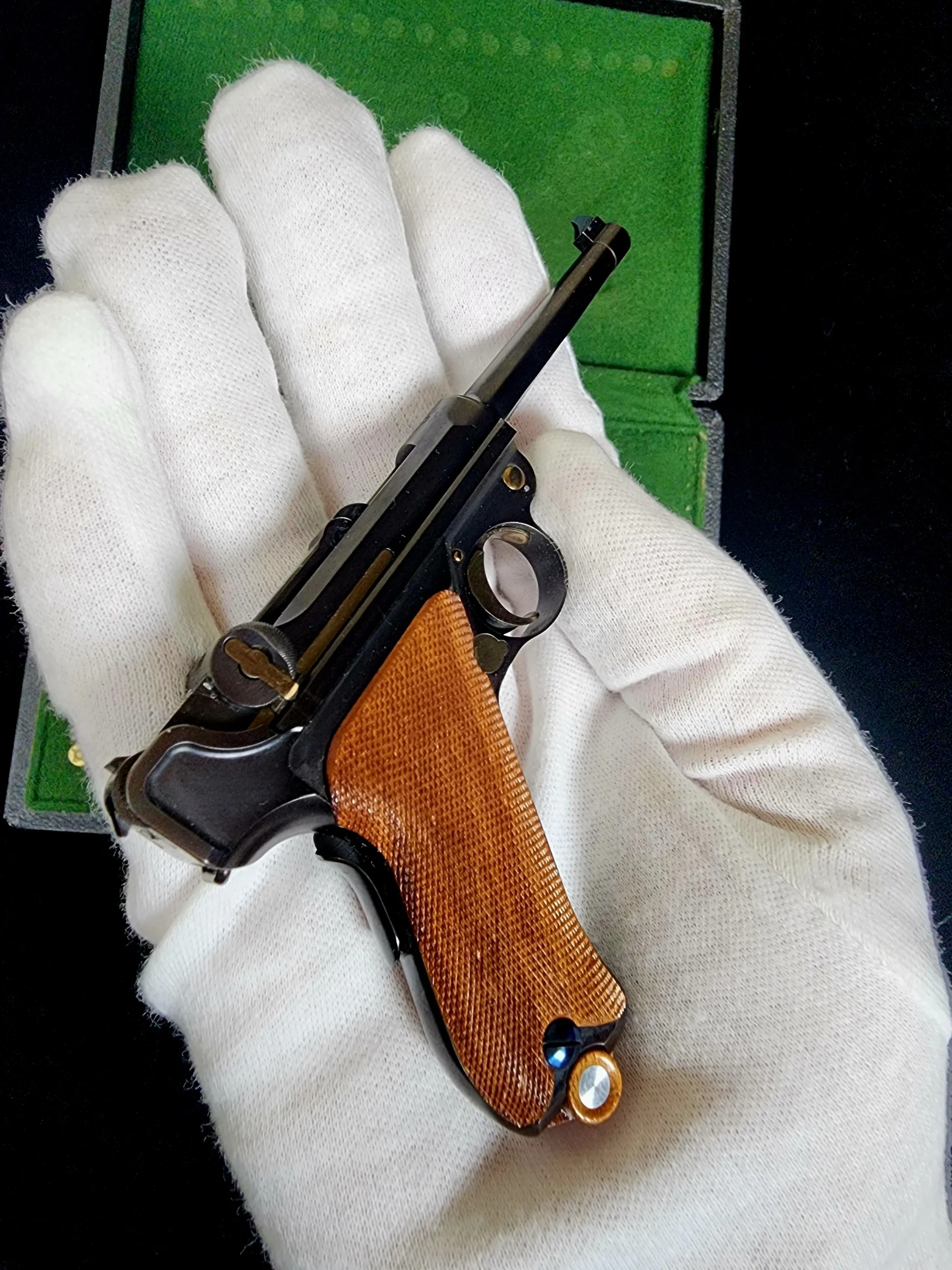 Leon Crottet is also noted for his contributions to firearm design, including influence on the SIG P210-8 and its American-style magazine release. That broader engineering background adds further context to this miniature Swiss Luger, which brings together fine handwork, mechanical complexity, and the enduring appeal of the Luger pattern.