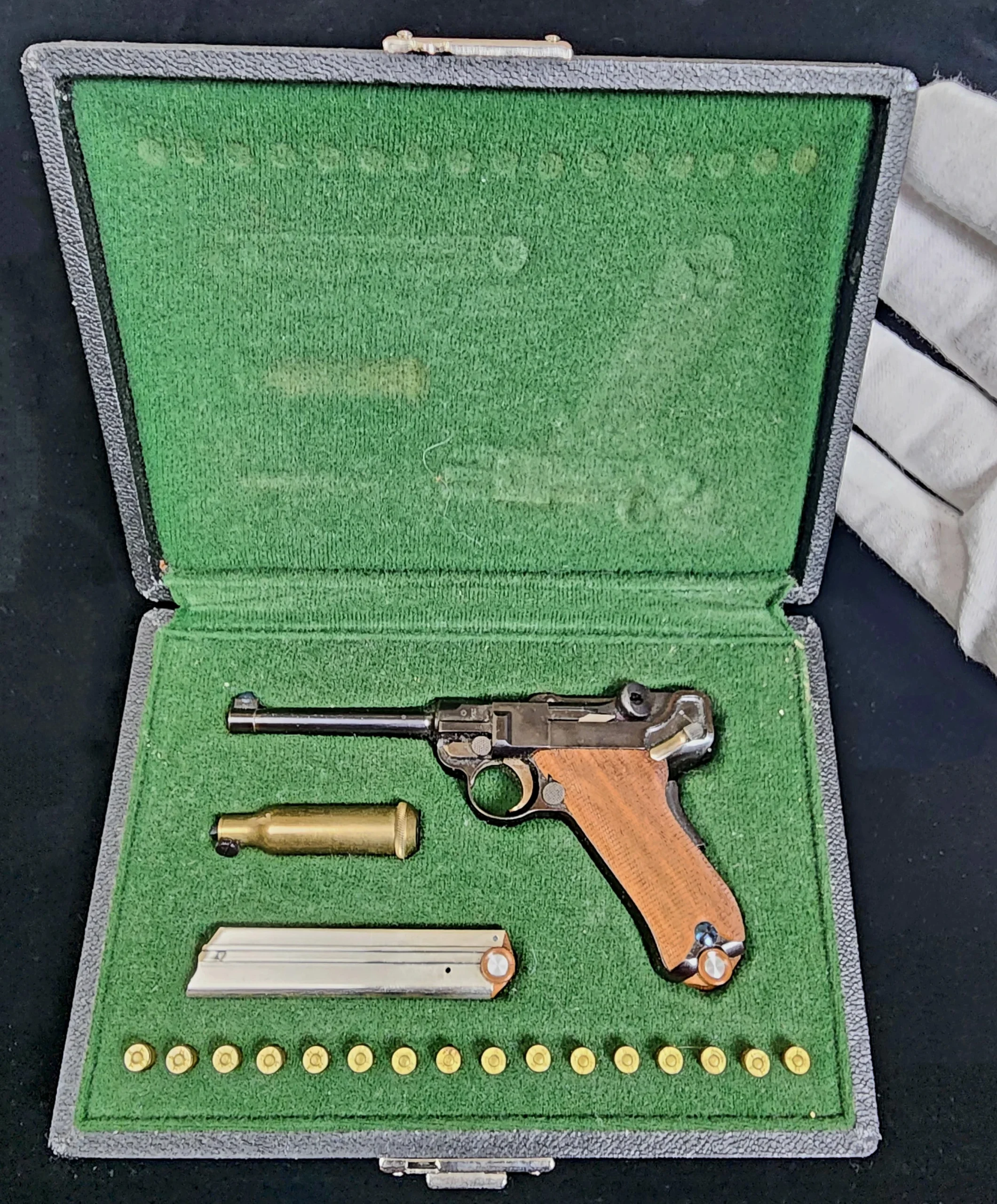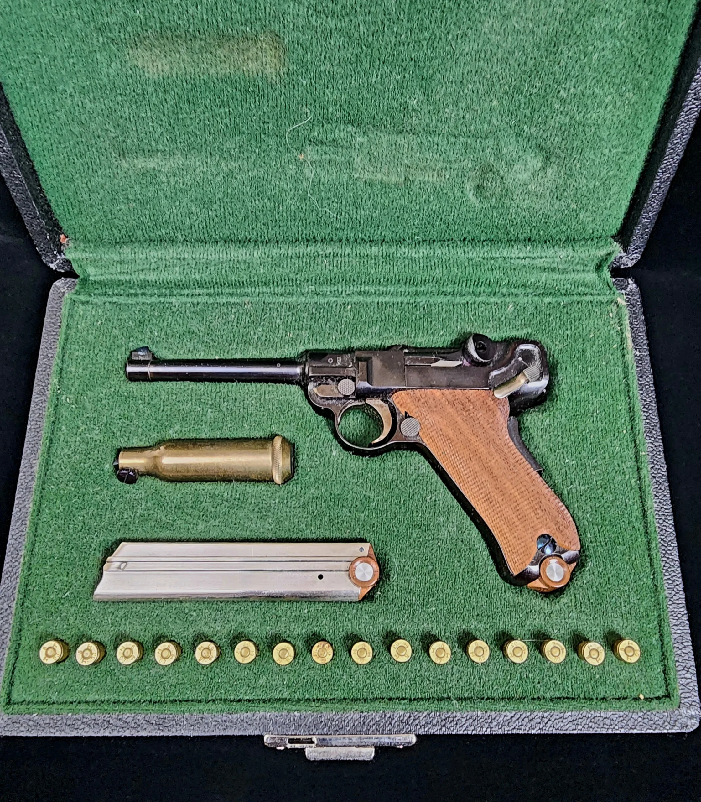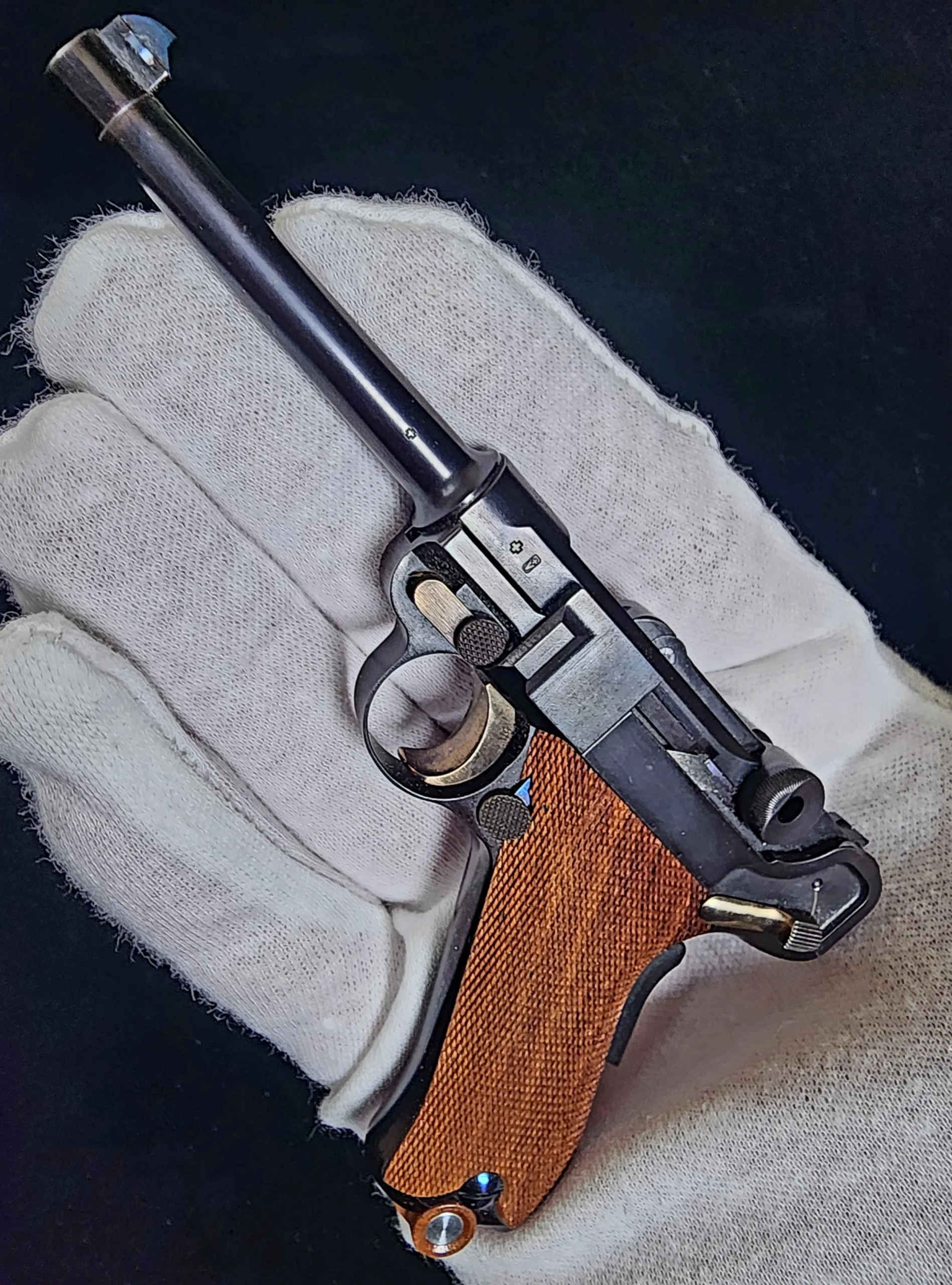 Leon Crottet is also noted for his contributions to firearm design, including influence on the SIG P210-8 and its American-style magazine release. That broader engineering background adds further context to this miniature Swiss Luger, which brings together fine handwork, mechanical complexity, and the enduring appeal of the Luger pattern.
