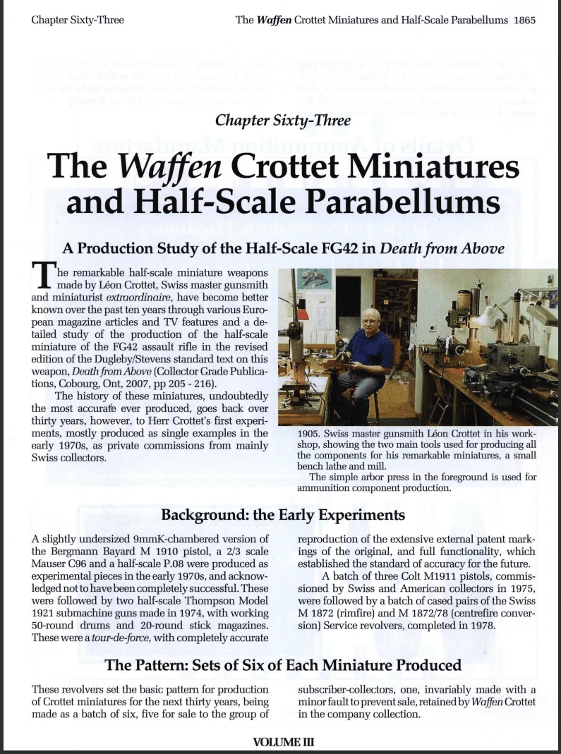 This piece is described as fully functional and was built with the same precision-focused approach that defines Crottet’s work. Even at reduced scale, the form and operating features have been carefully recreated, making it a compelling example of miniature firearms craftsmanship.