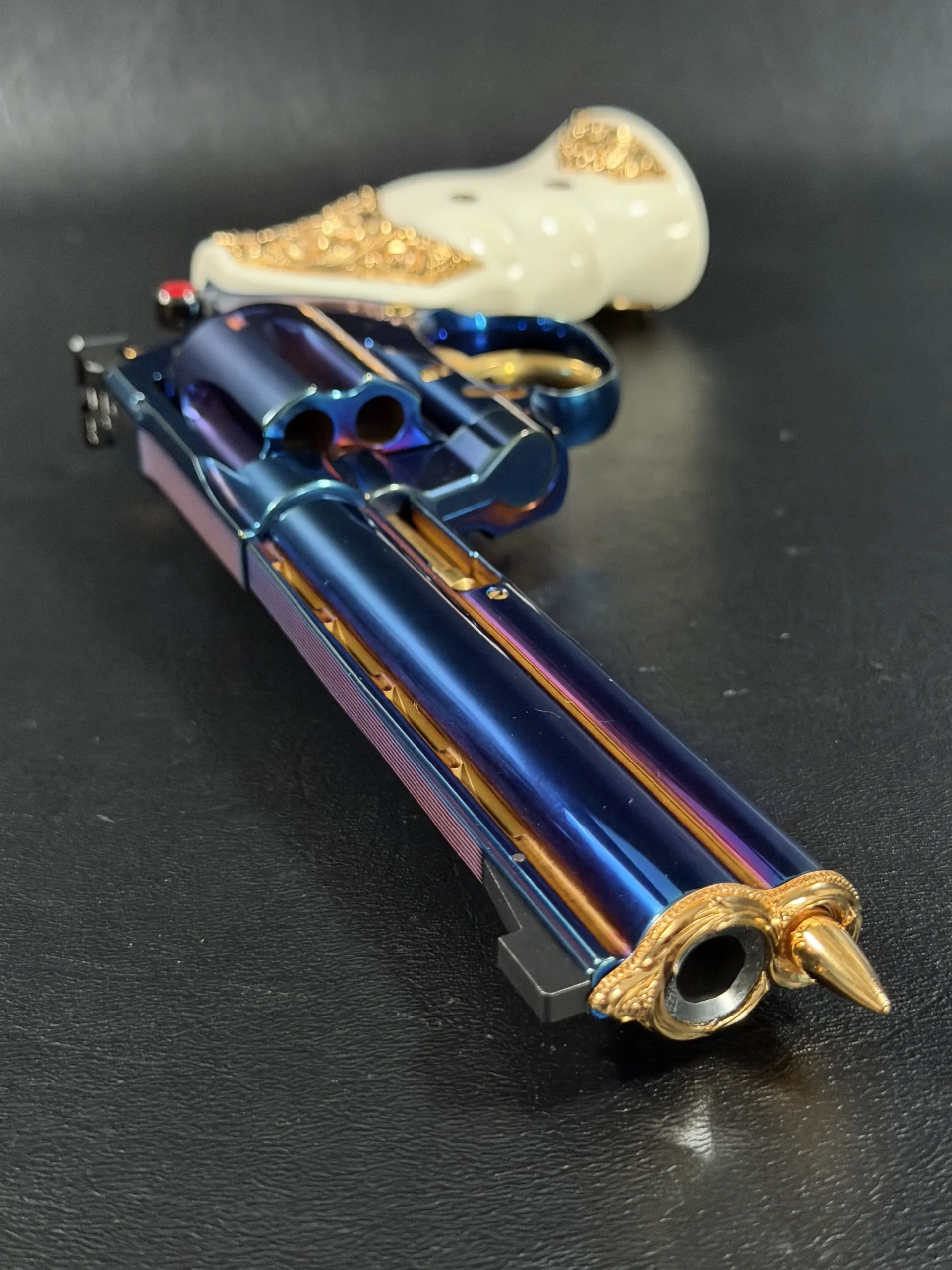 This is a distinctive presentation set for collectors drawn to fine engraving, decorative finishing, and the mechanical character associated with Korth revolvers.
