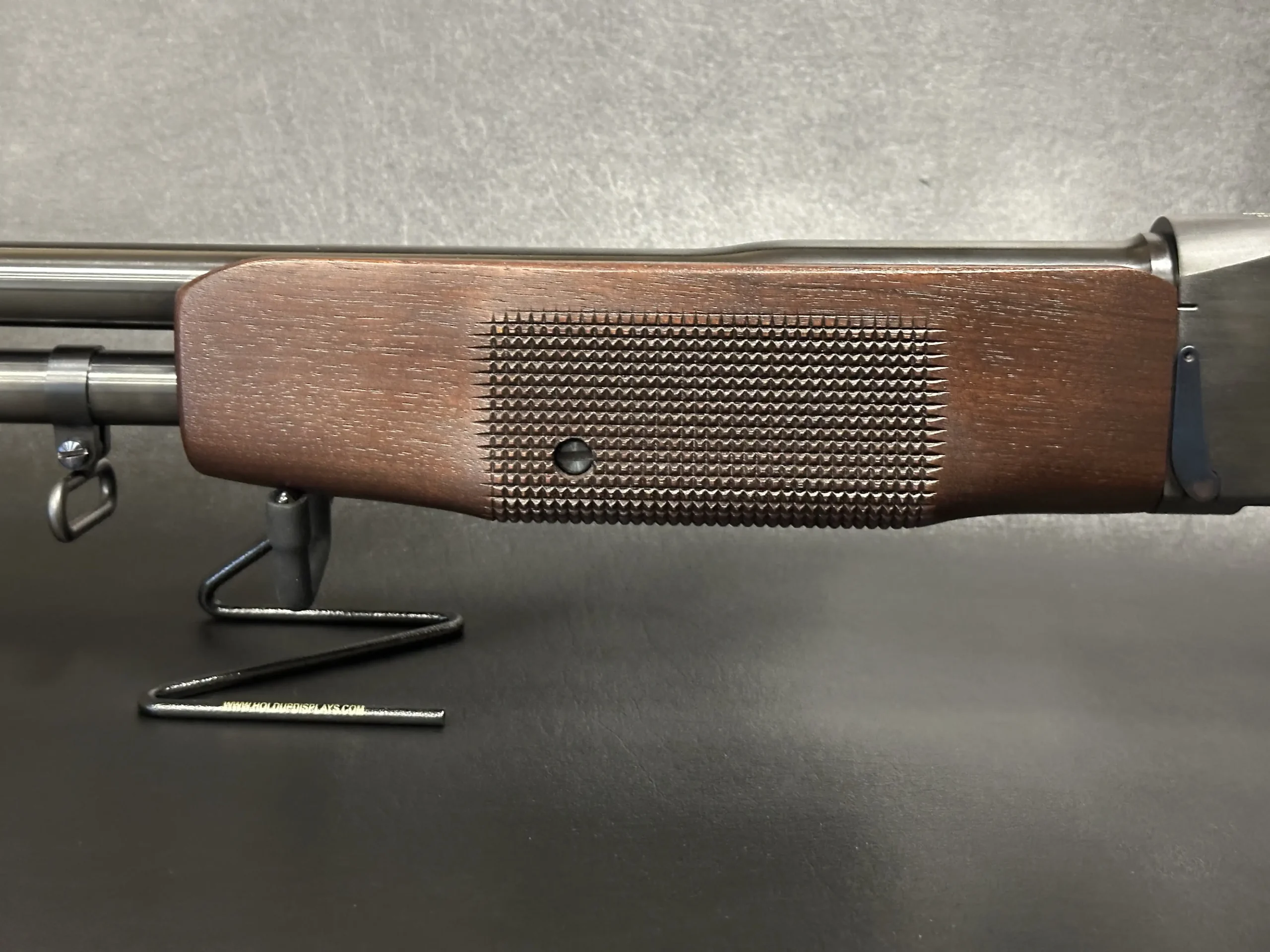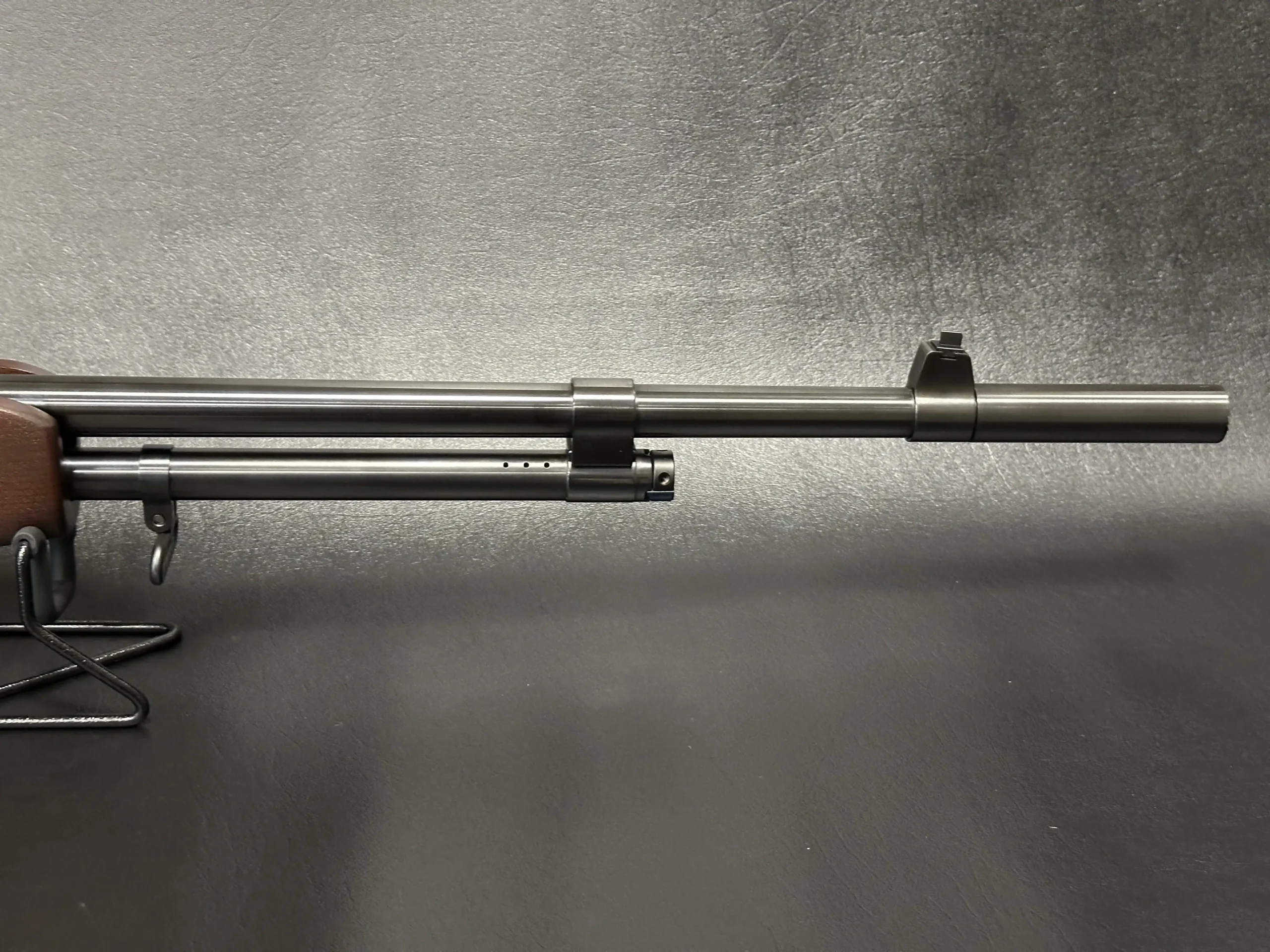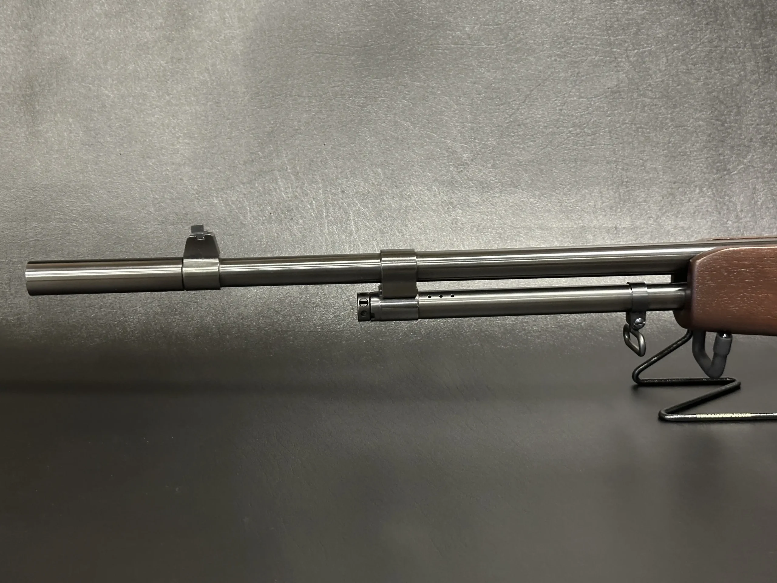Built with period-style attention to detail, it features a steel receiver, walnut stock and forearm, and matte-finished metalwork that gives the rifle its classic military appearance. The checkered forearm adds visual texture and handling character, while the barrel assembly, front sight block, and gas system follow the familiar profile of the original service pattern.