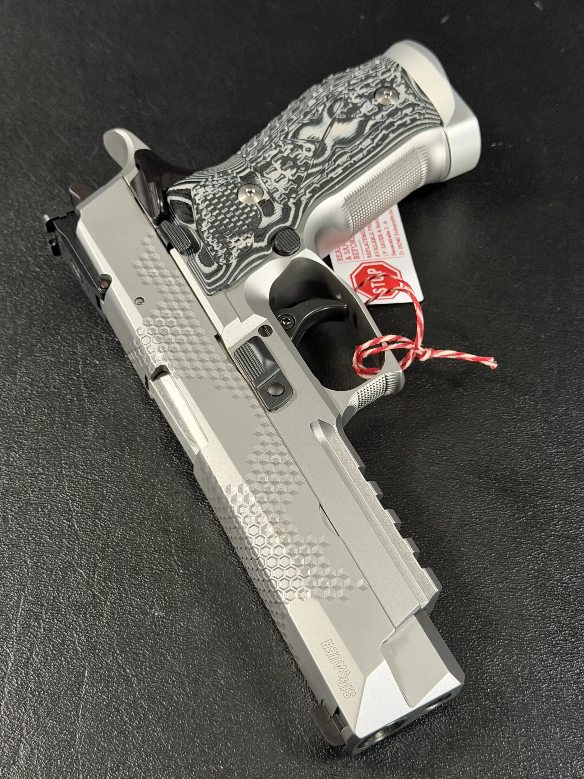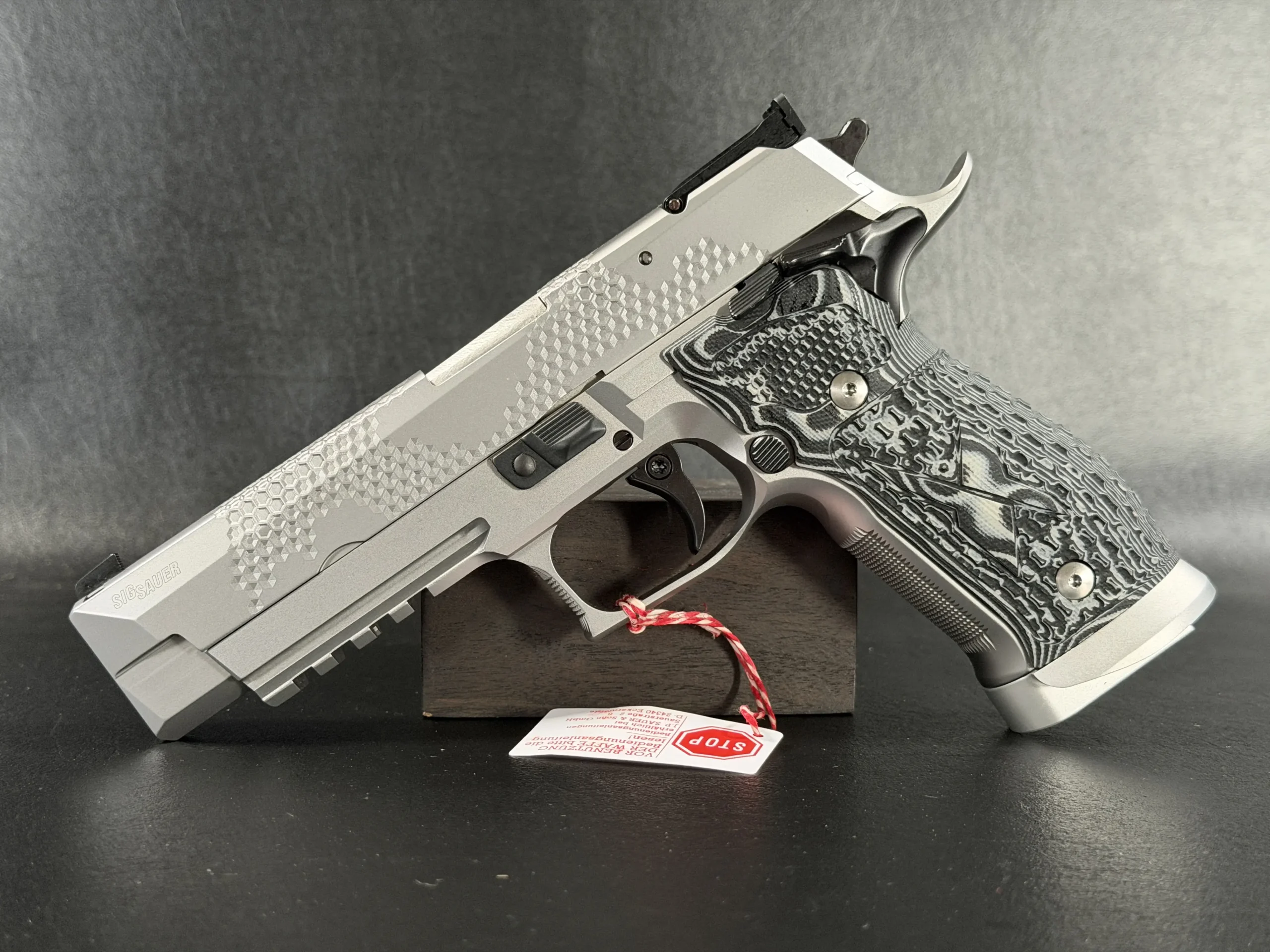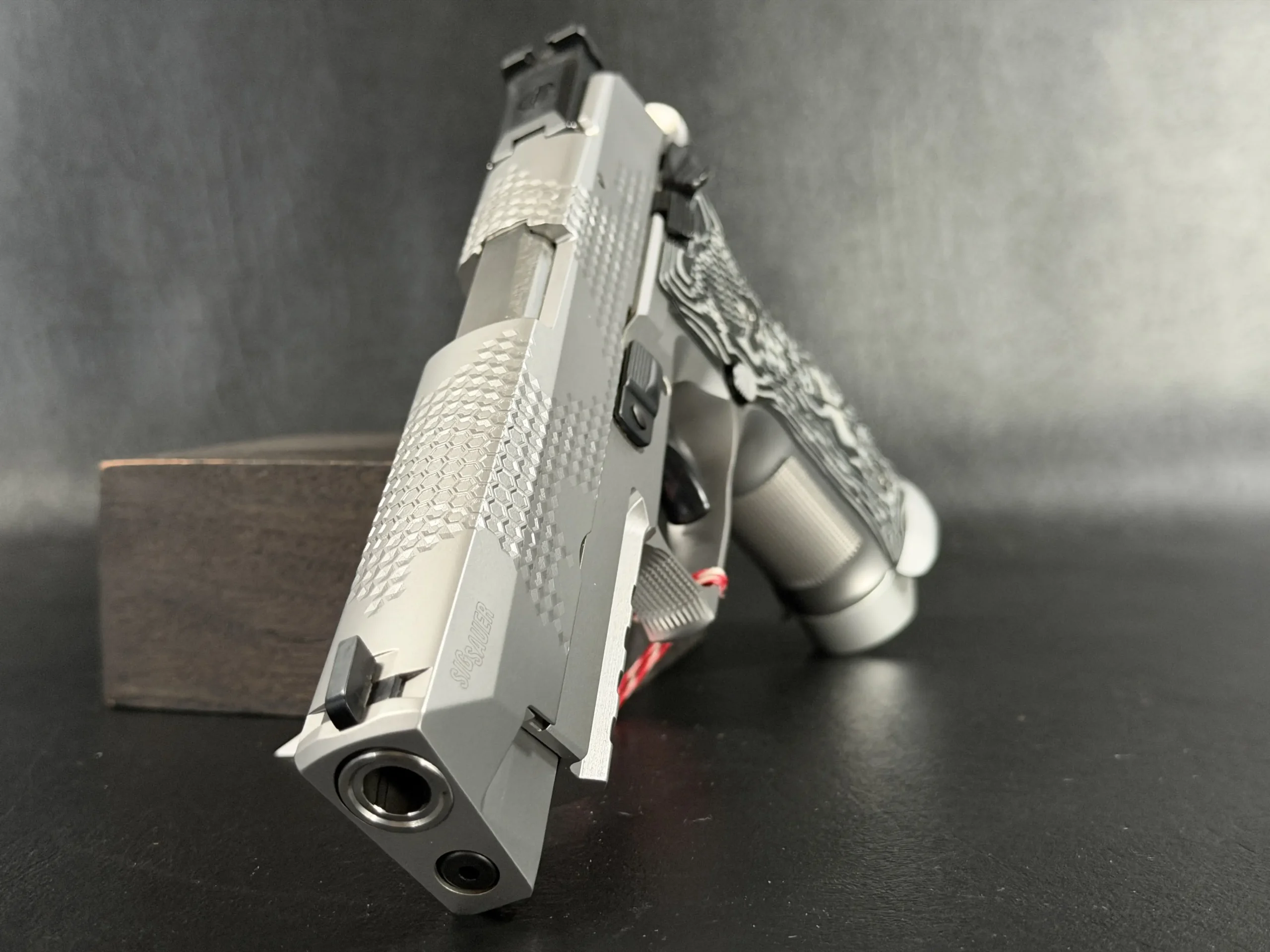 Chambered in 9mm, this pistol pairs the familiar X-Five format with a distinctly experimental Mastershop treatment. It is accompanied by its original SIG Sauer Mastershop documentation confirming its role as a design study, and all numbered components are factory-matched.