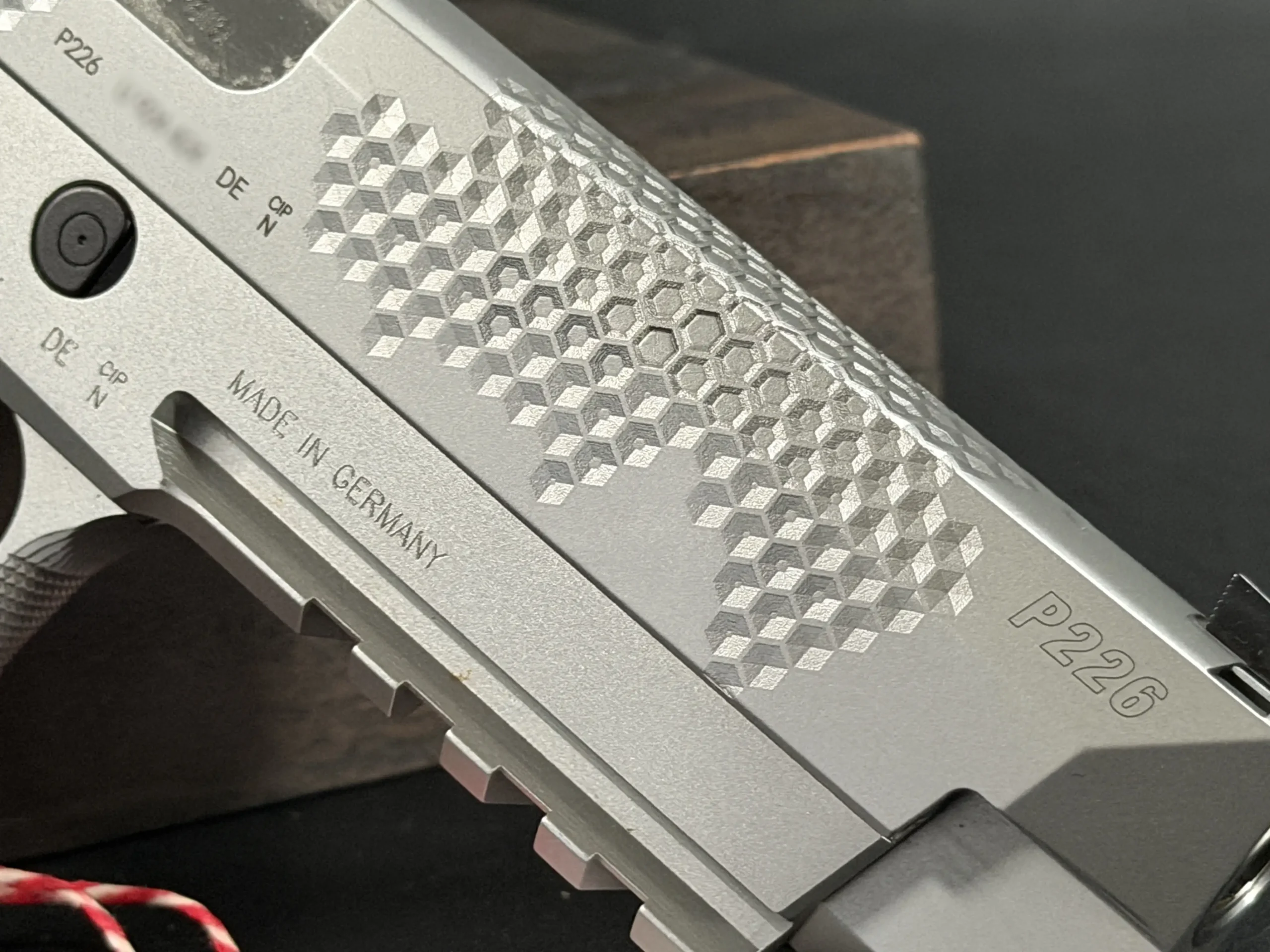 The Prototype SIG P226 X-Five “Hexagon” was created by the SIG Sauer Mastershop as a design study for the IWA Show 2018, exploring new surface geometry, texturing, and a modern interpretation of the X-Five platform.