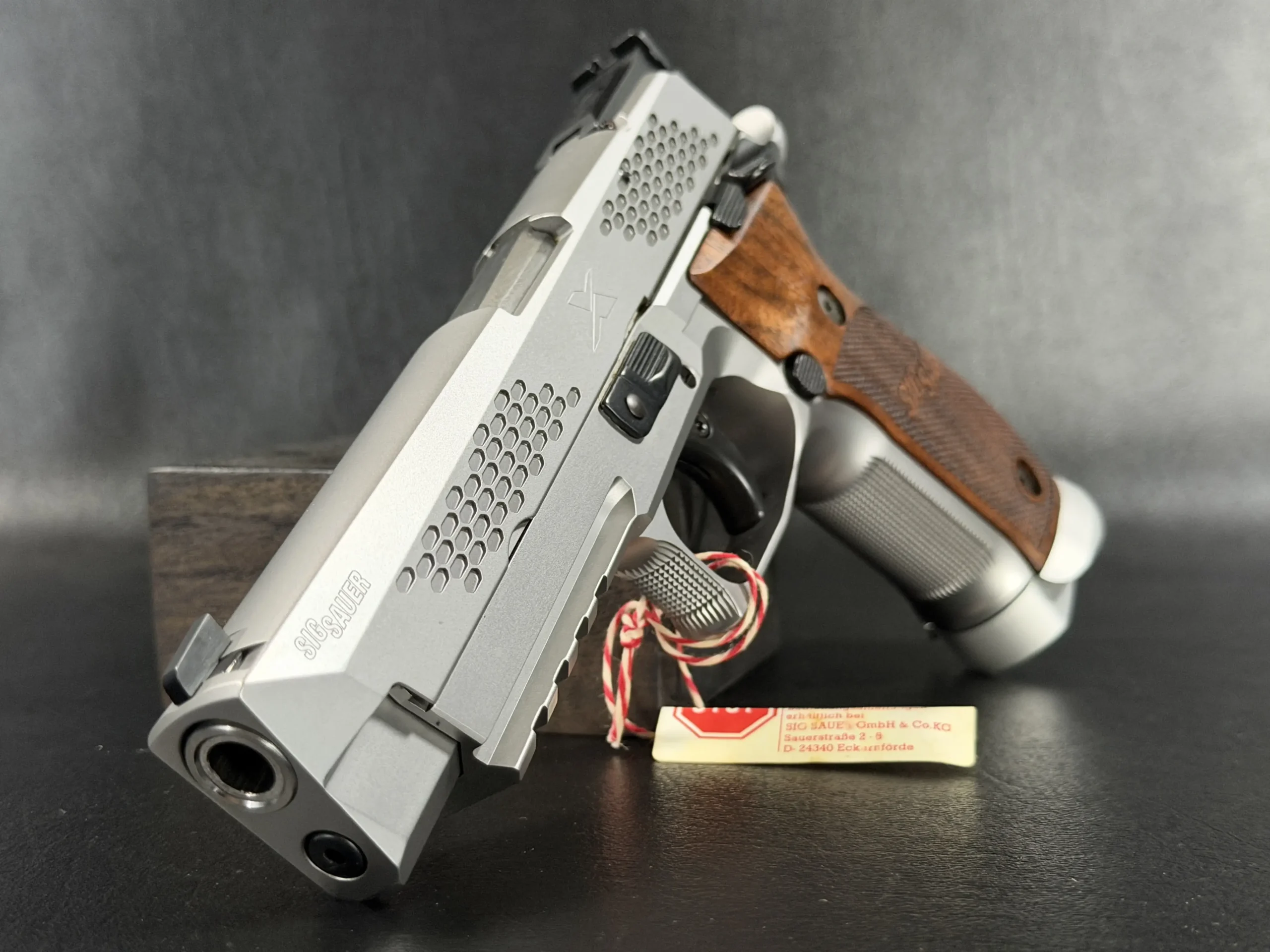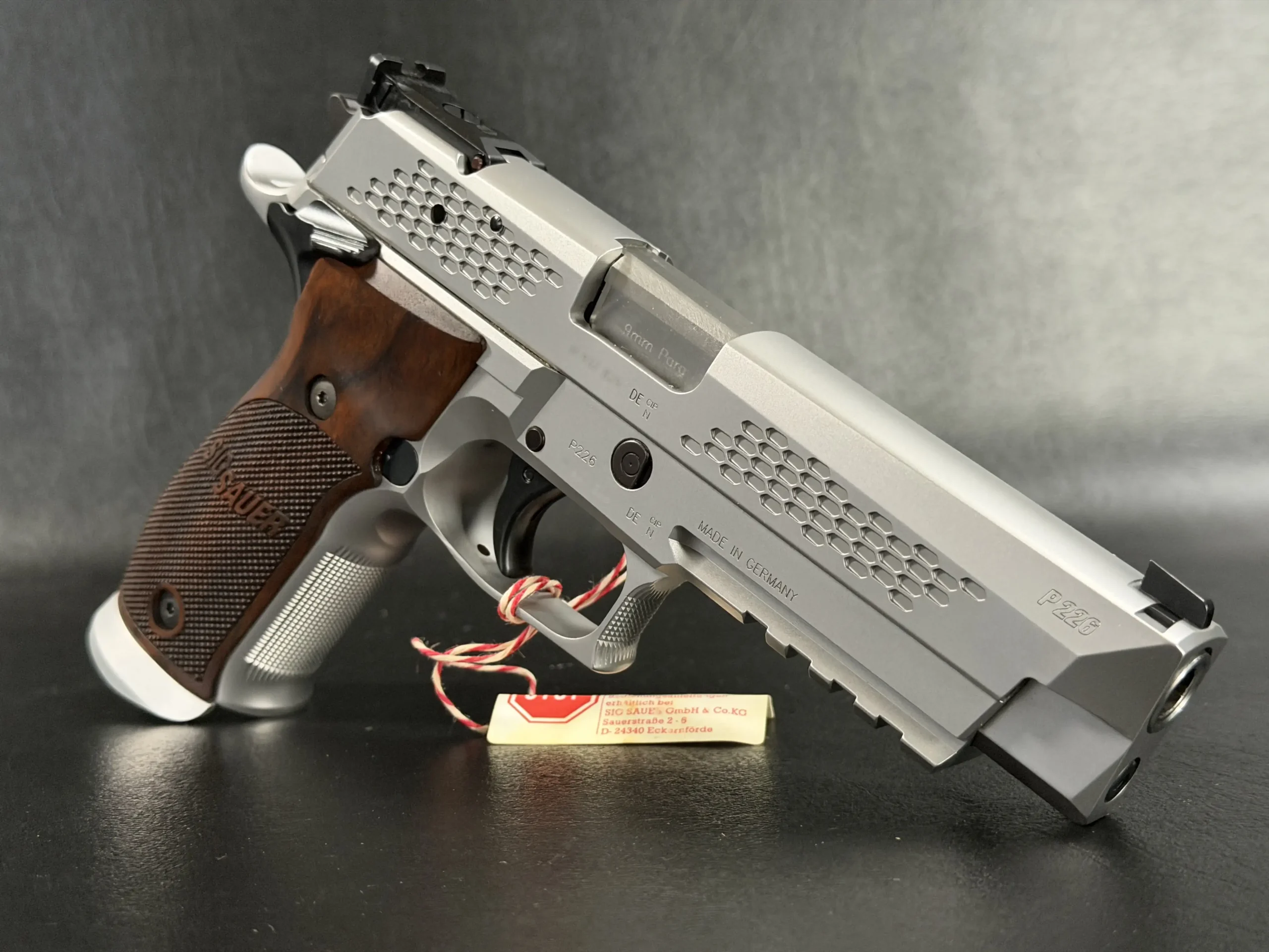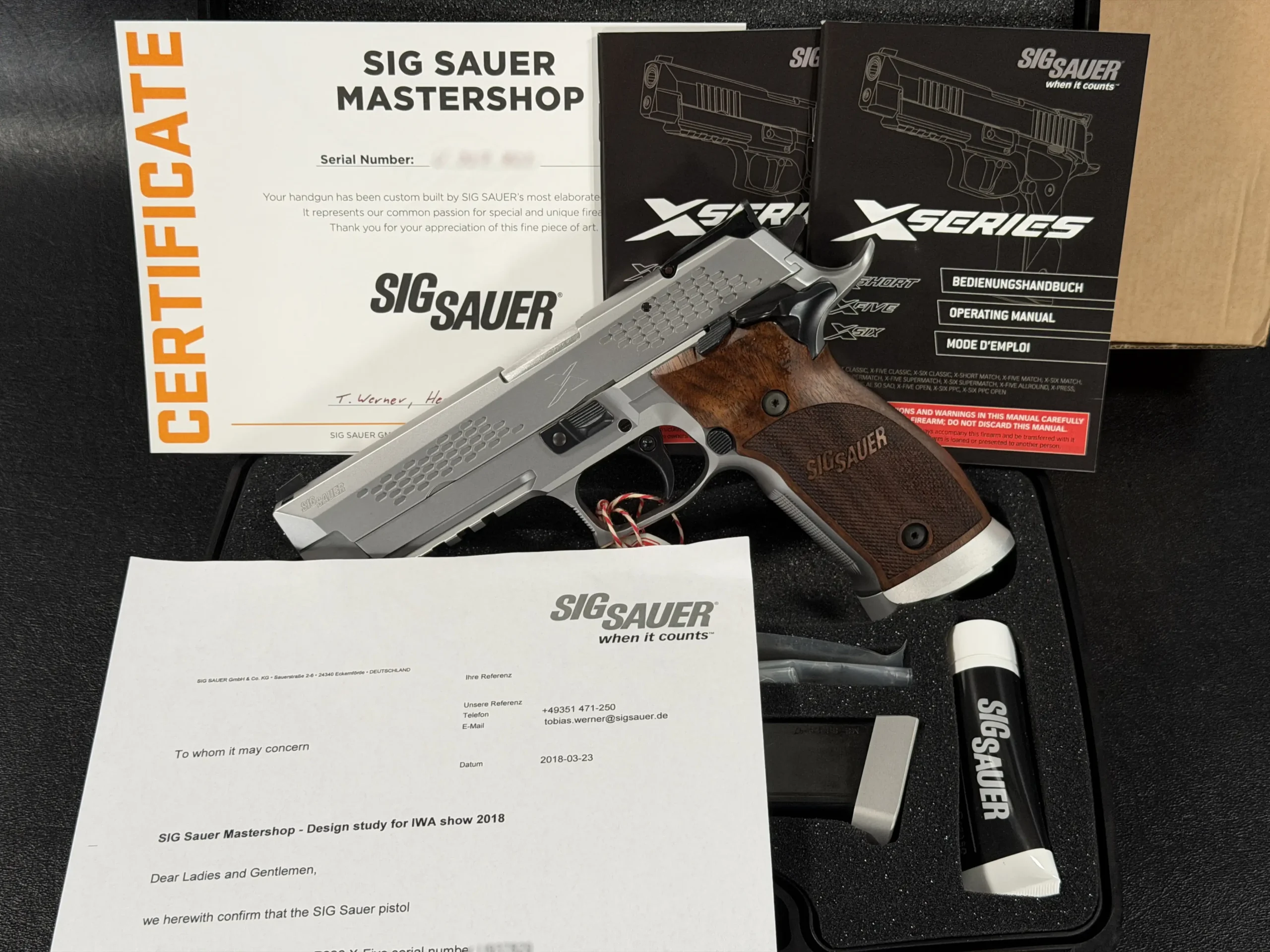 Built on the P226 X-Five platform and chambered in 9mm, this prototype reflects the design-forward approach of the SIG Sauer Mastershop while retaining the familiar format of the X-Five series. Included documentation identifies it as a design study created to explore slide structure and manufacturing ideas.