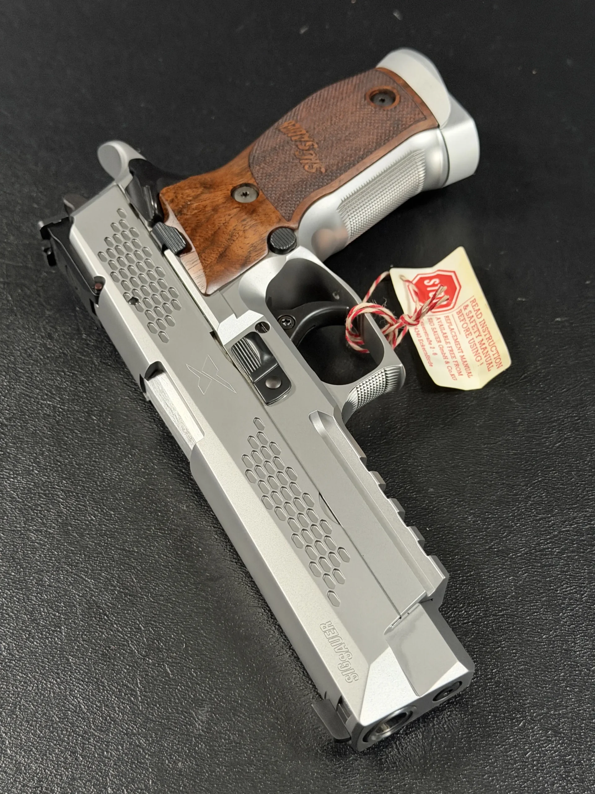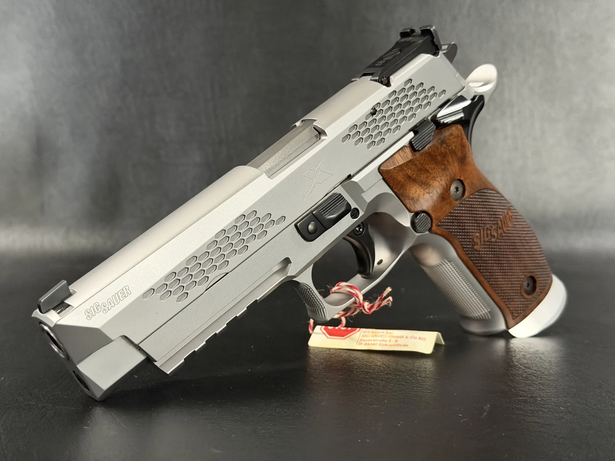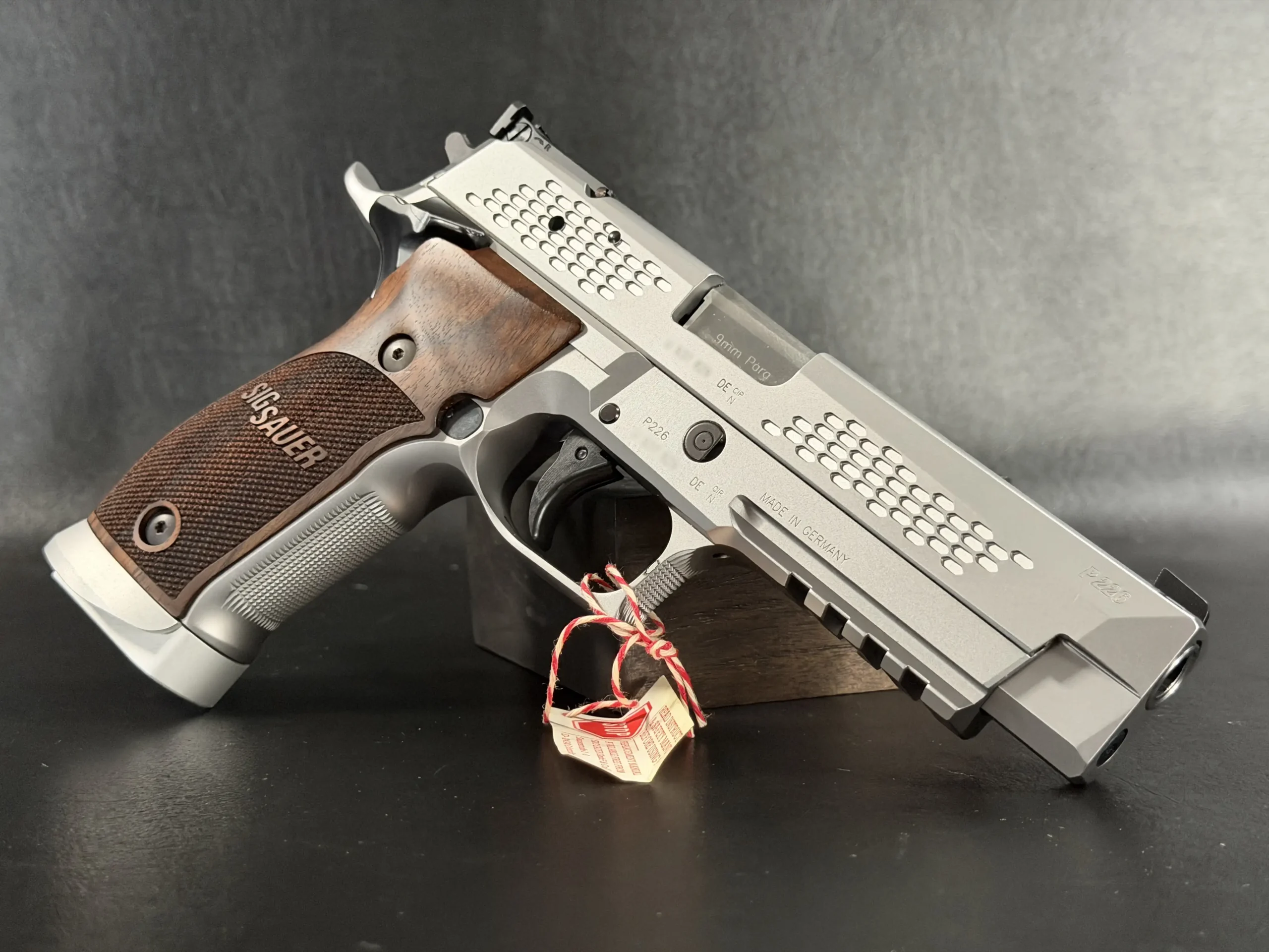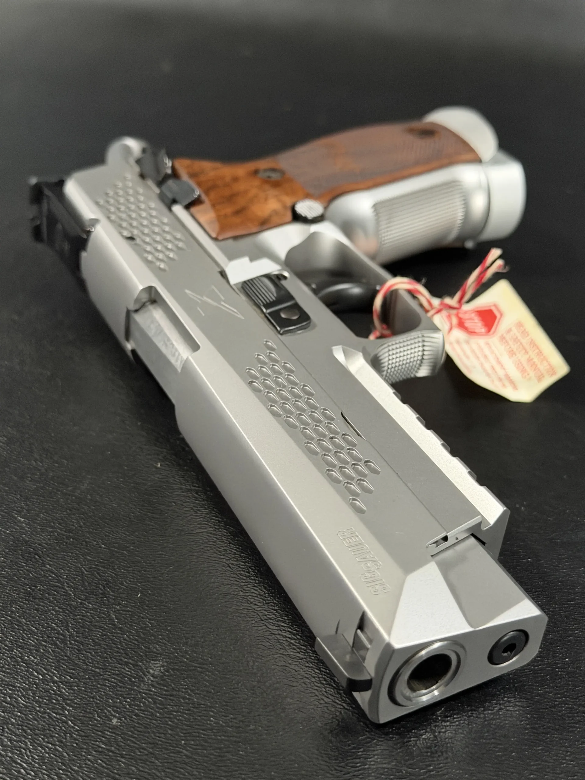 Built on the P226 X-Five platform and chambered in 9mm, this prototype reflects the design-forward approach of the SIG Sauer Mastershop while retaining the familiar format of the X-Five series. Included documentation identifies it as a design study created to explore slide structure and manufacturing ideas.