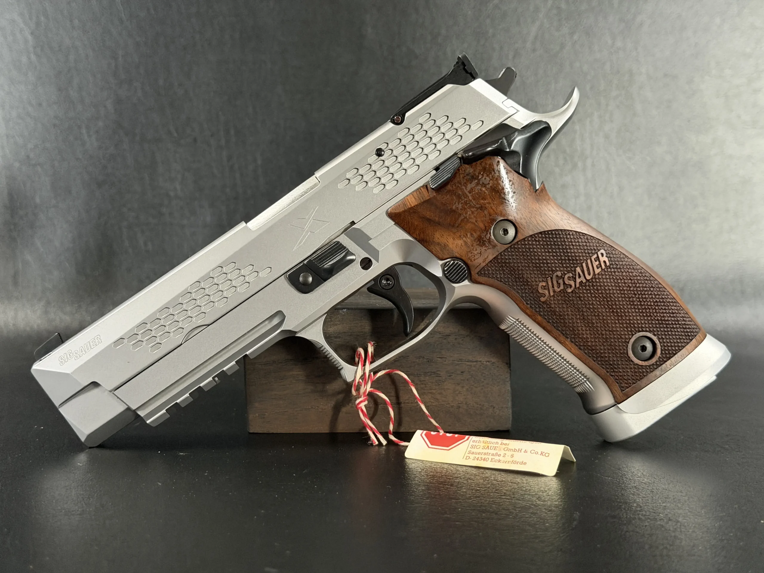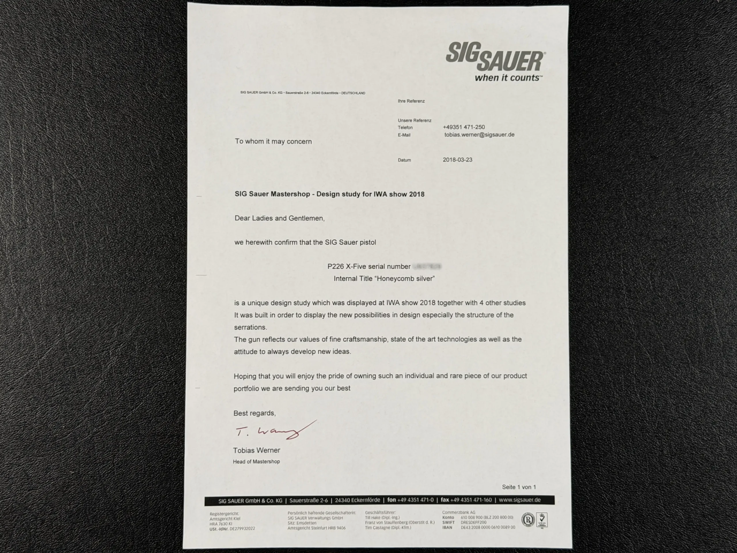 The Prototype SIG Sauer P226 X-Five Honeycomb is a SIG Sauer Mastershop design study created for the IWA Show 2018, as confirmed by the accompanying factory letter. Rather than a production model, it was developed as an exploration of form, structure, and machining within the P226 X-Five platform.